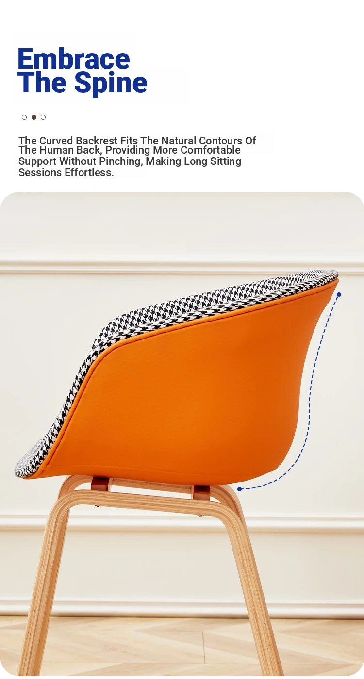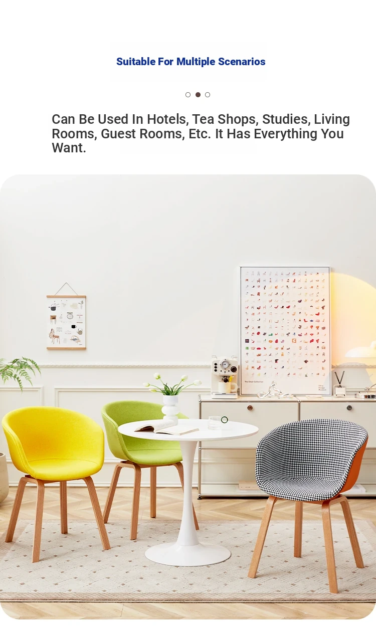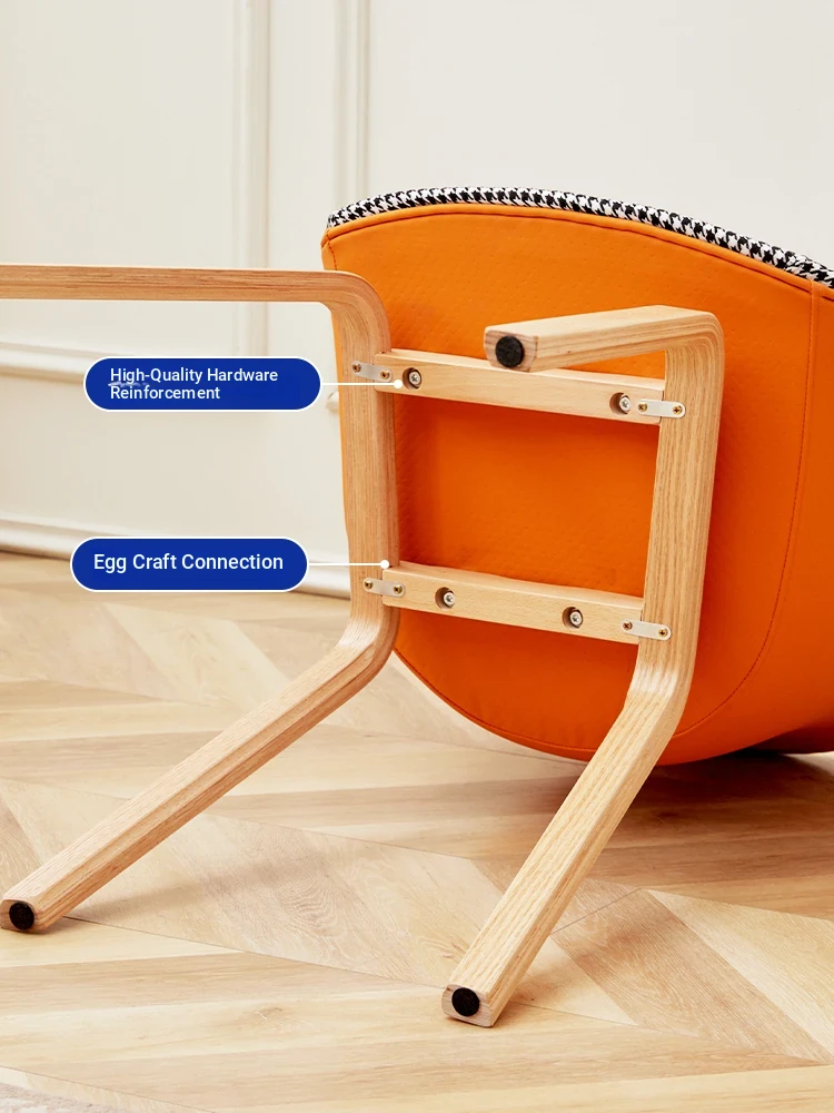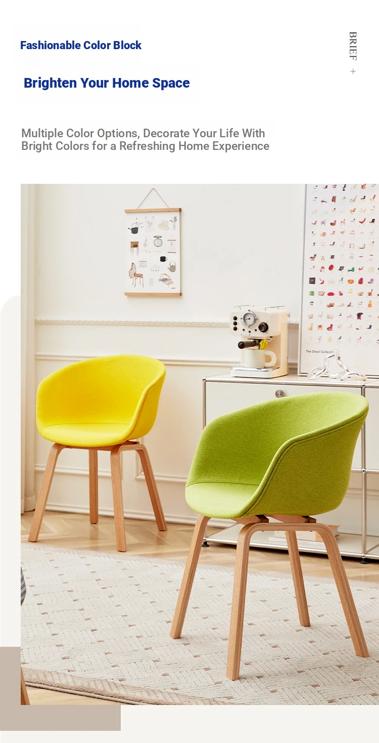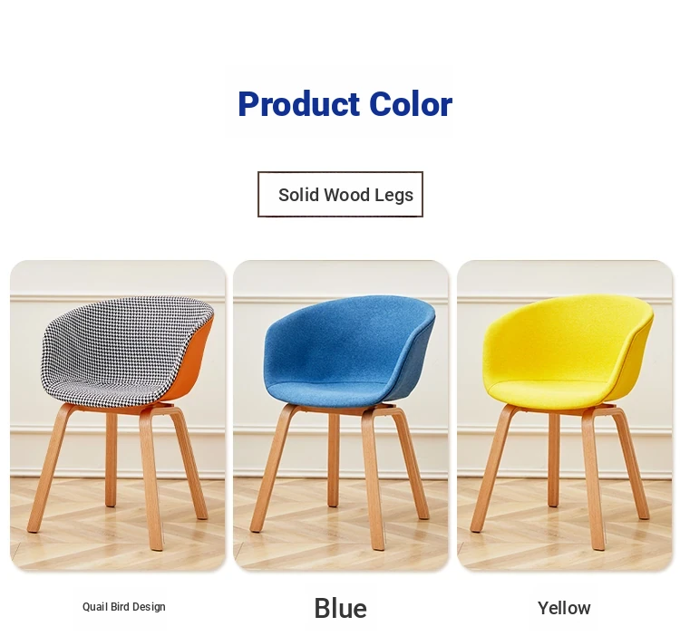 Nordic Houndstooth Solid Wood Dining Chair with Soft Cushion - Modern Minimalist Design for Comfortable Long Sitting in Office Meetings and Reception