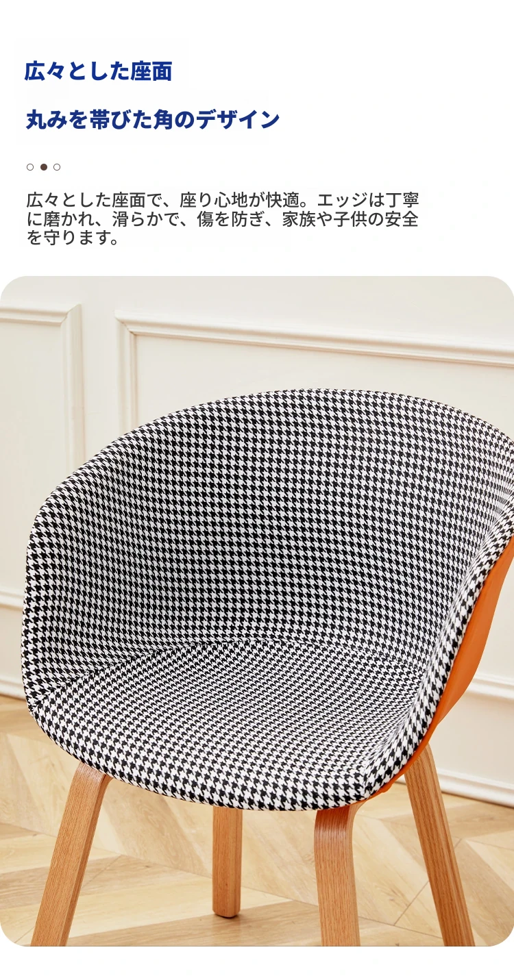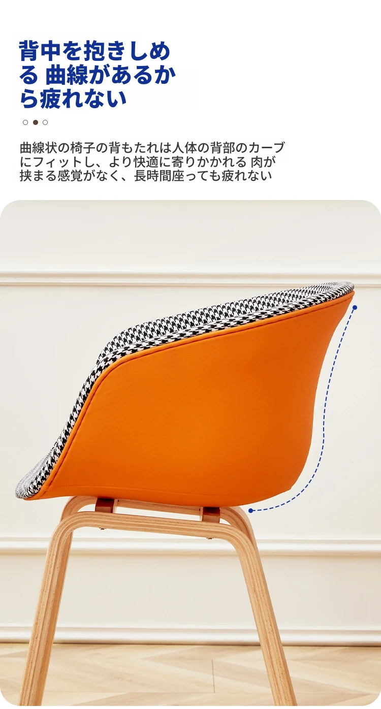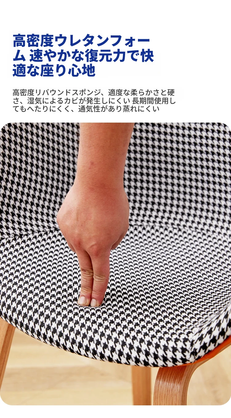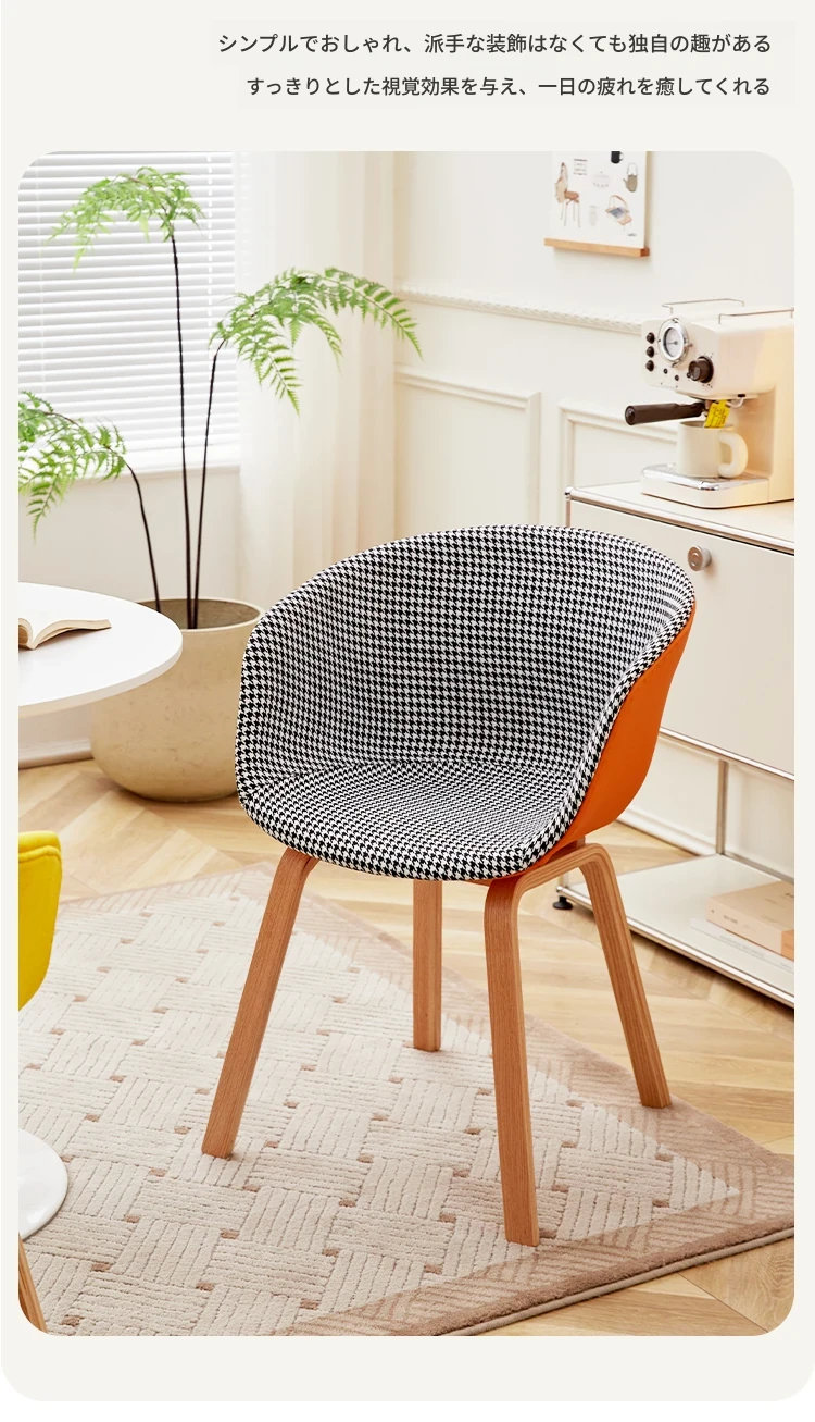 北欧スタイルの千鳥格子デザイン!快適な座り心地の木製バックレスト付きダイニングチェア。シンプルで洗練されたオフィスや会議に最適。長時間の商談や接待にもぴったりです!