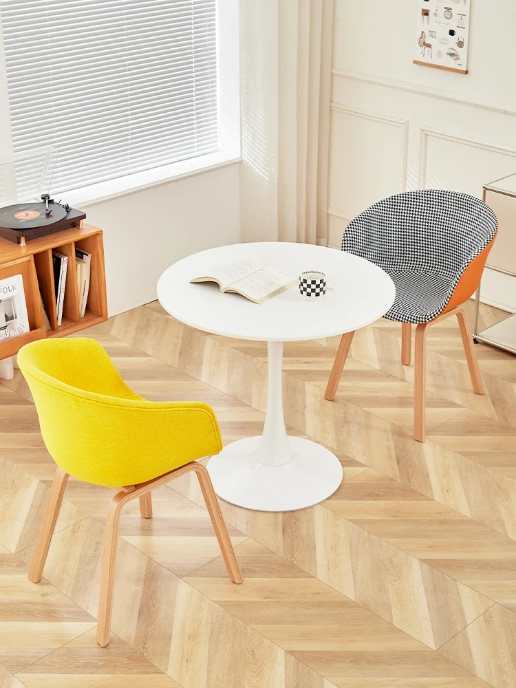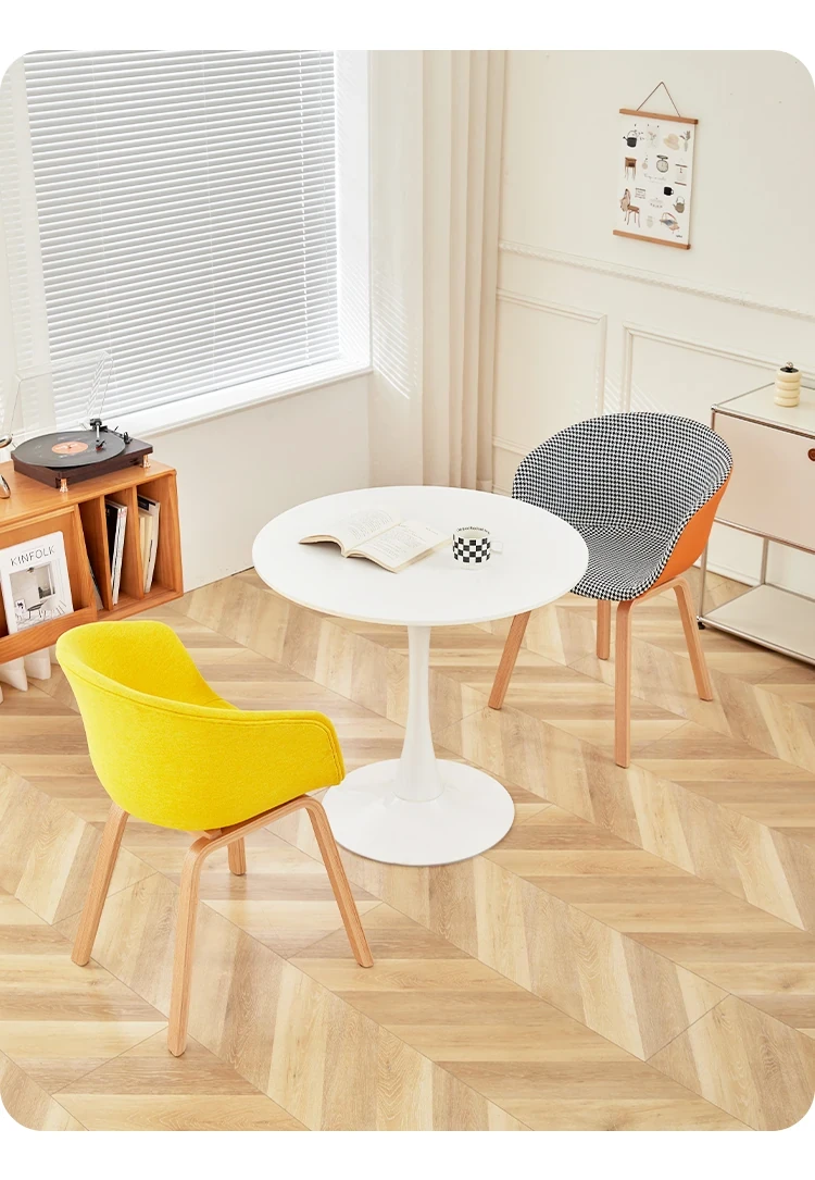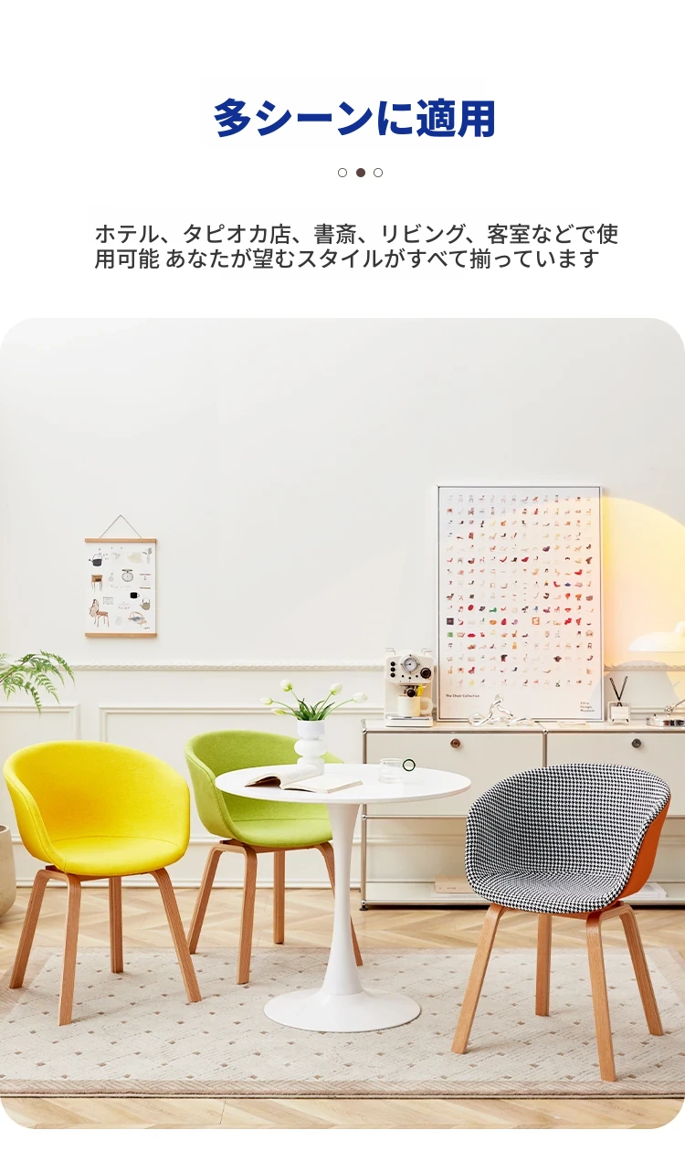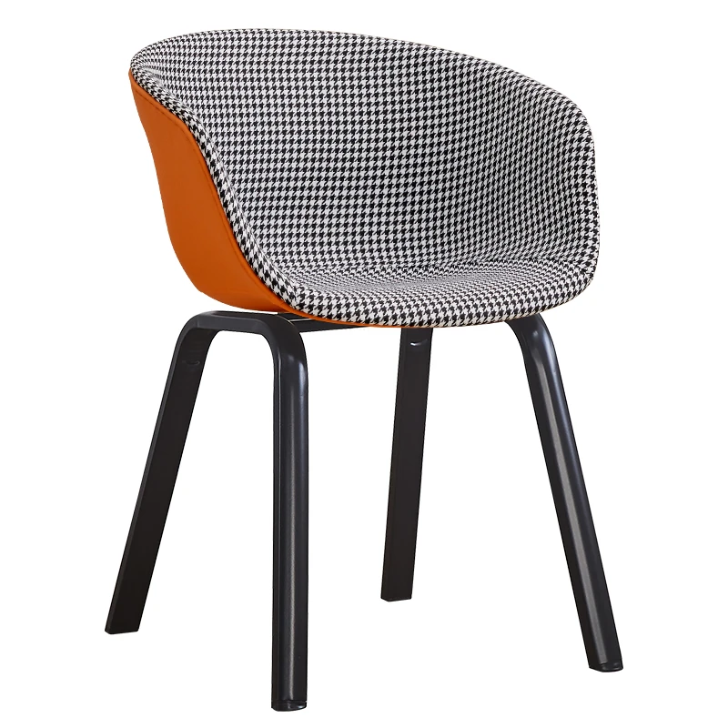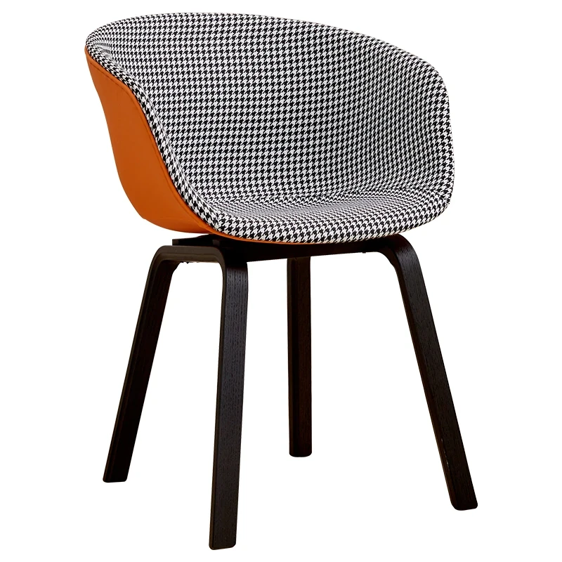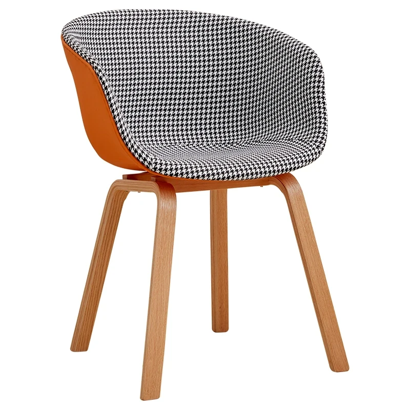北欧スタイルの千鳥格子デザイン!快適な座り心地の木製バックレスト付きダイニングチェア。シンプルで洗練されたオフィスや会議に最適。長時間の商談や接待にもぴったりです!