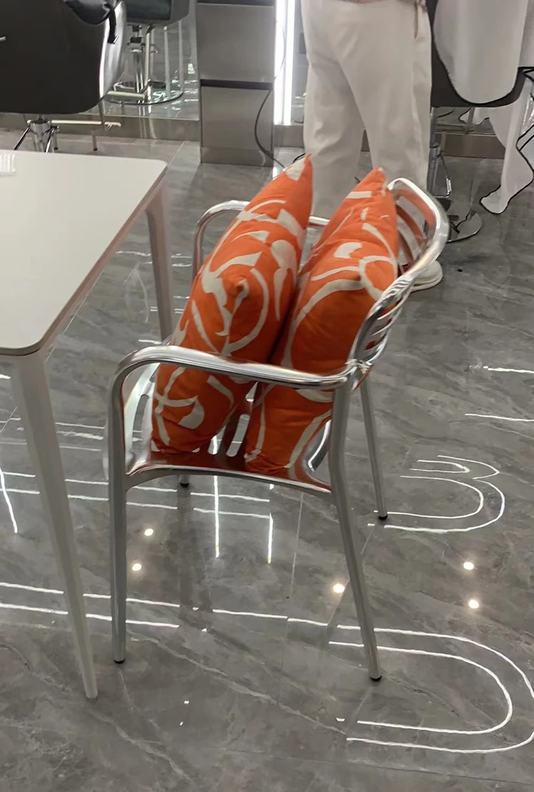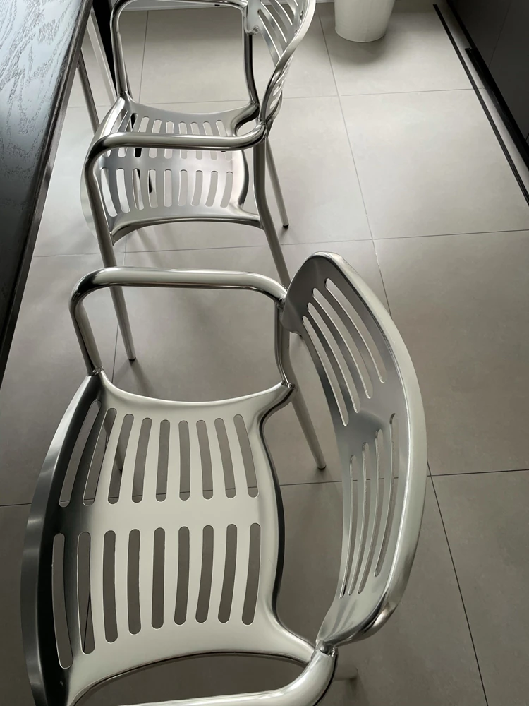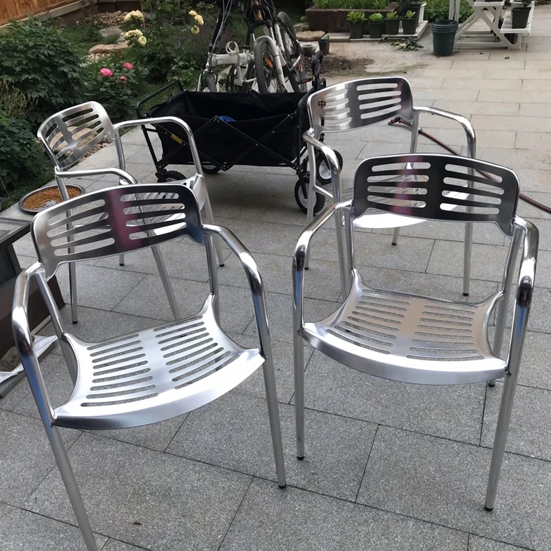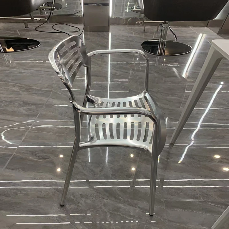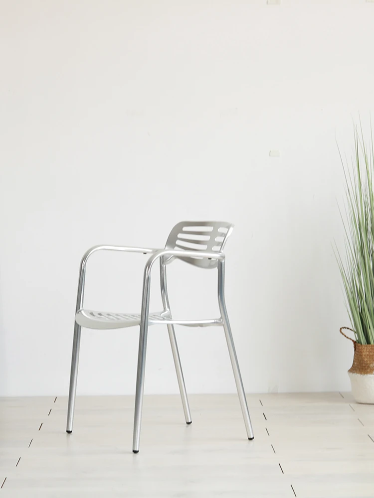 北欧スタイルのシンプルな背もたれ付き椅子 - LOFT工業風デザインのアルミ製チェア!アウトドアやレストラン、火鍋にもぴったりな排骨椅子。おしゃれで機能的、あなたの空間を引き立てます!