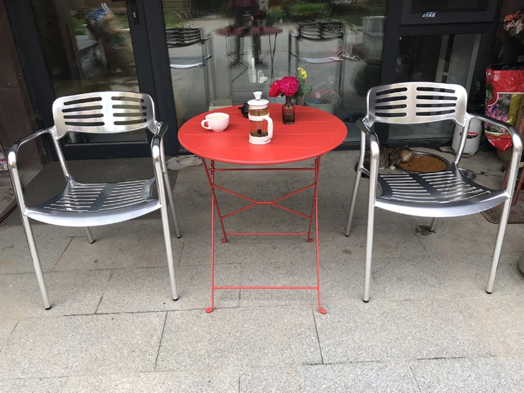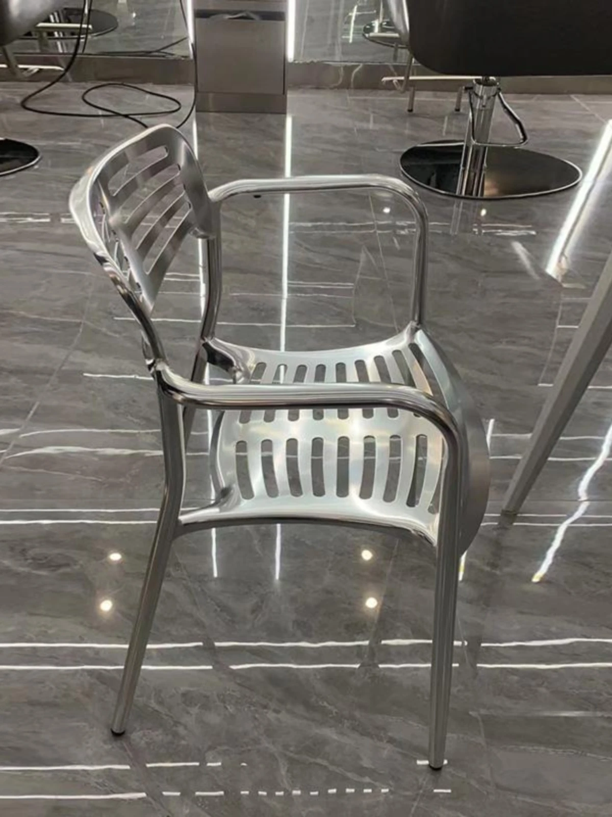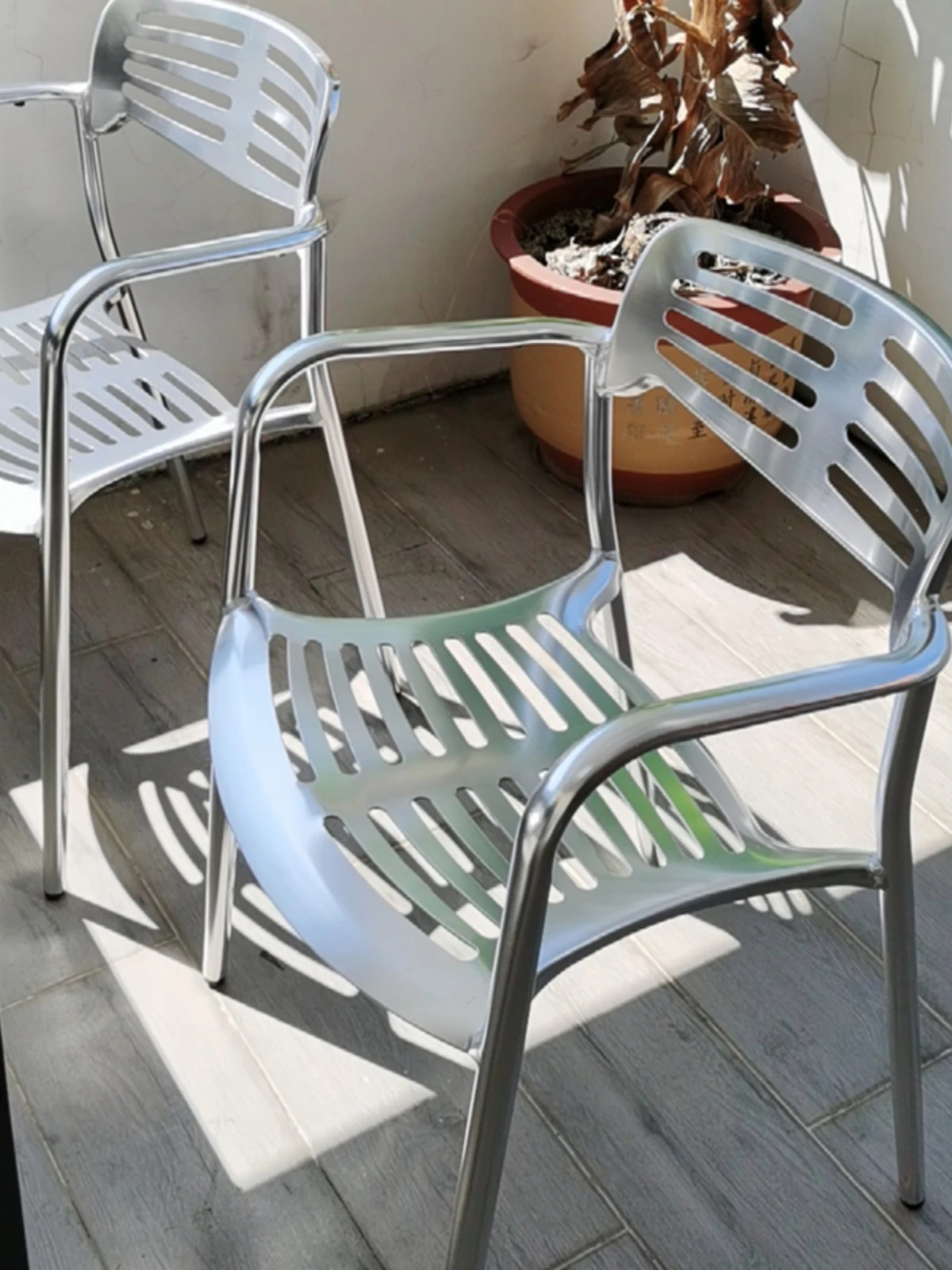 北欧スタイルのシンプルな背もたれ付き椅子 - LOFT工業風デザインのアルミ製チェア!アウトドアやレストラン、火鍋にもぴったりな排骨椅子。おしゃれで機能的、あなたの空間を引き立てます!