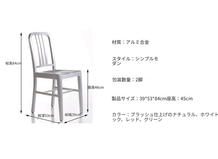 北欧風シンプルな家用背もたれチェア LOFT工業スタイルのアルミニウム製ネイビーチェア アウトドアレストラン用火鍋チェア【スタイリッシュで耐久性抜群!】