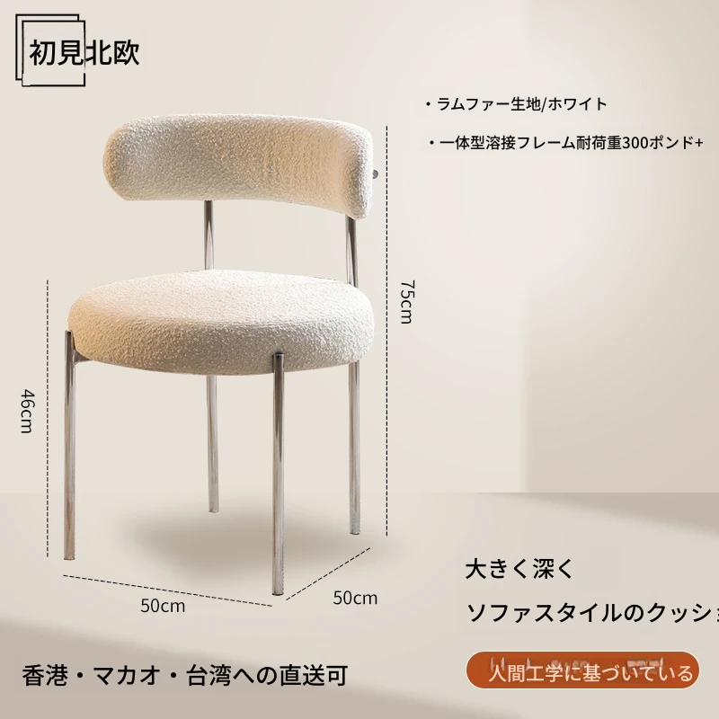 アイボリー色のラムフリース座布団は取り外し可能で、香港・マカオ・台湾へ直送可能です