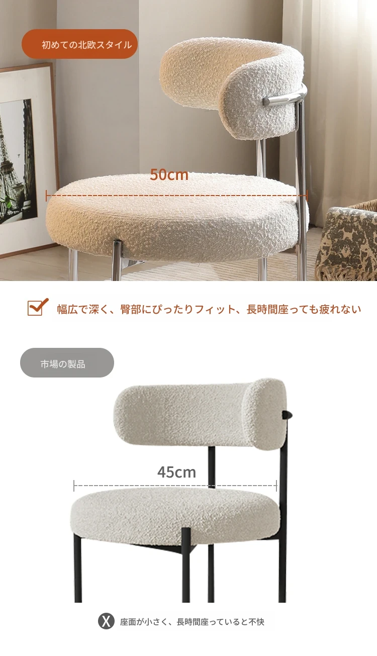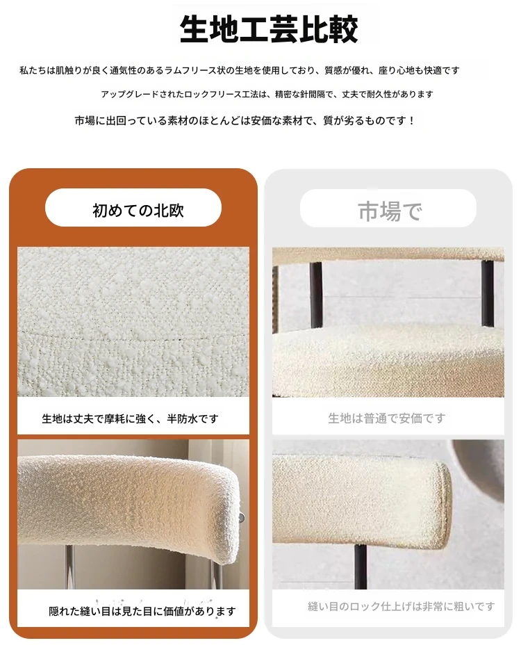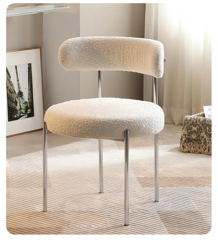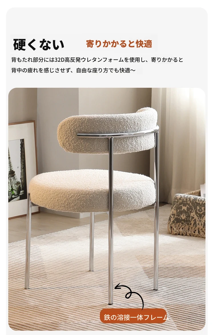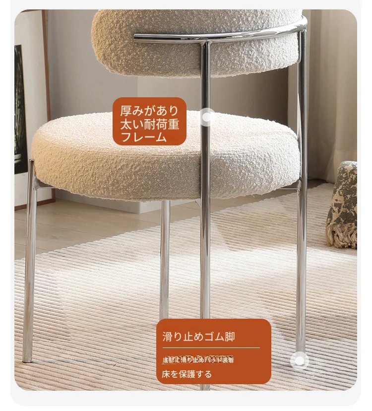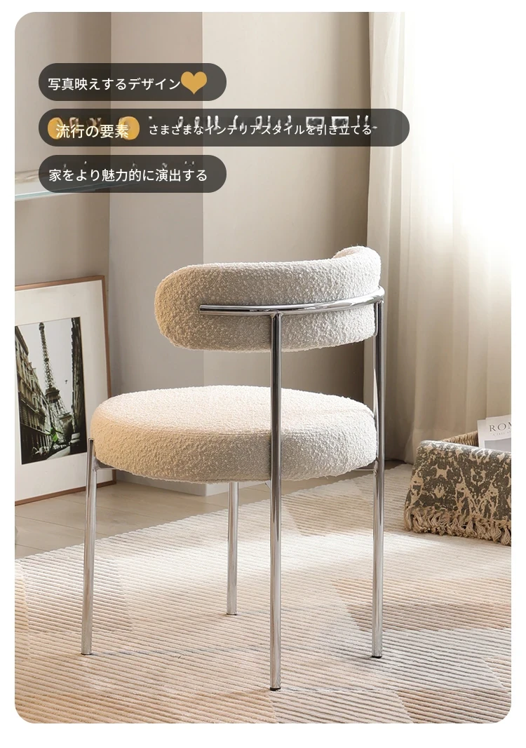 北欧風のラグジュアリーなクリーム色のテディファー製ドレッサーチェア。女性にぴったりの寝室用化粧椅子!高級感溢れる背もたれで、毎日のメイクを特別な時間に。心地よい座り心地で、あなたの美を引き立てます。