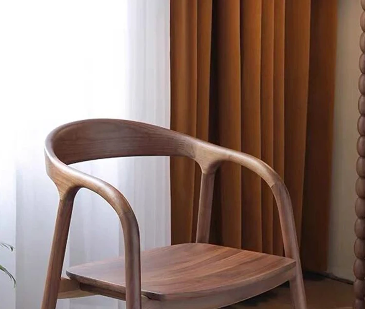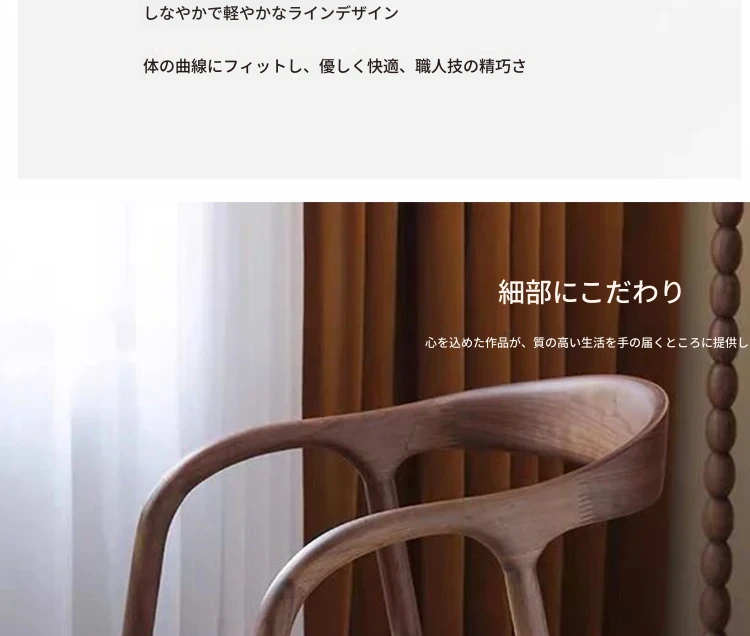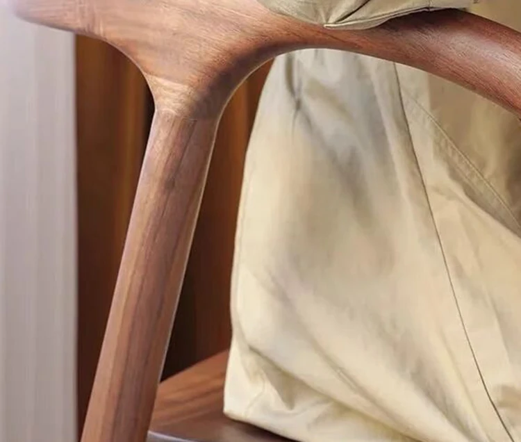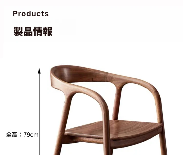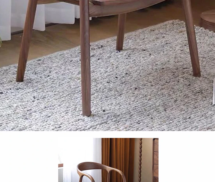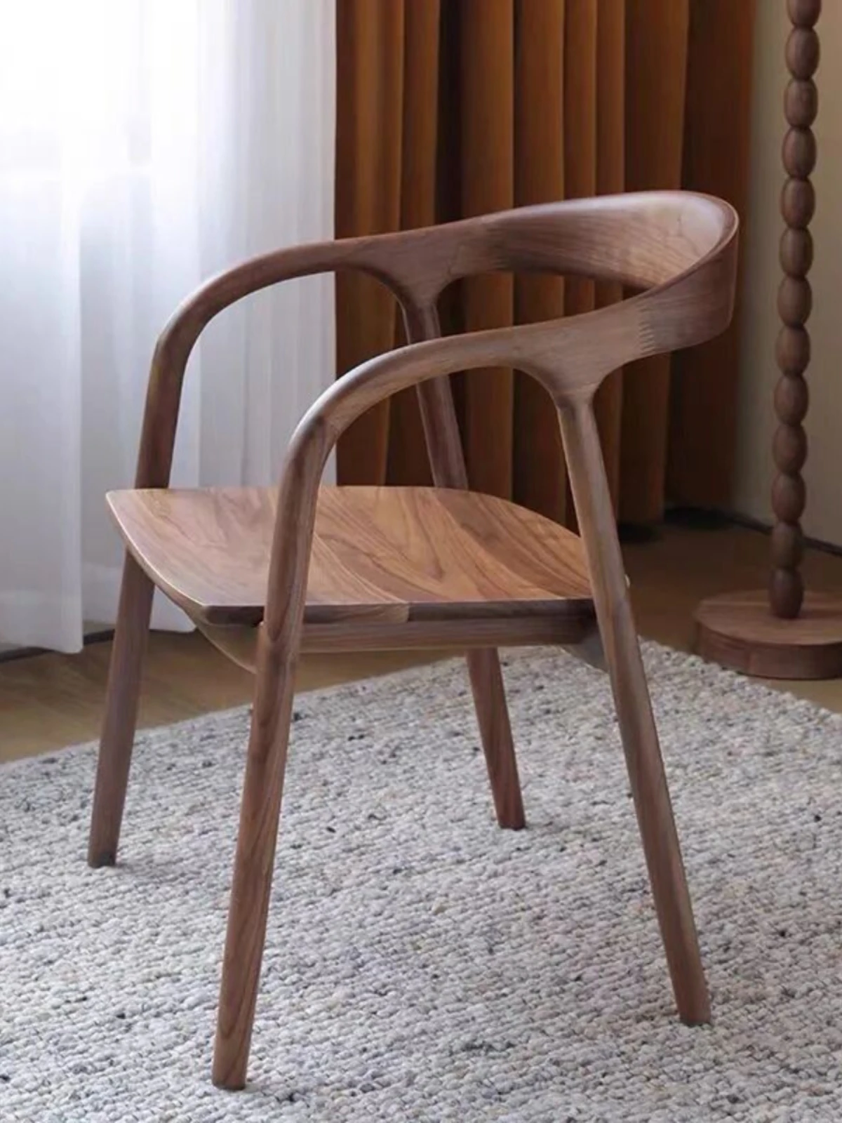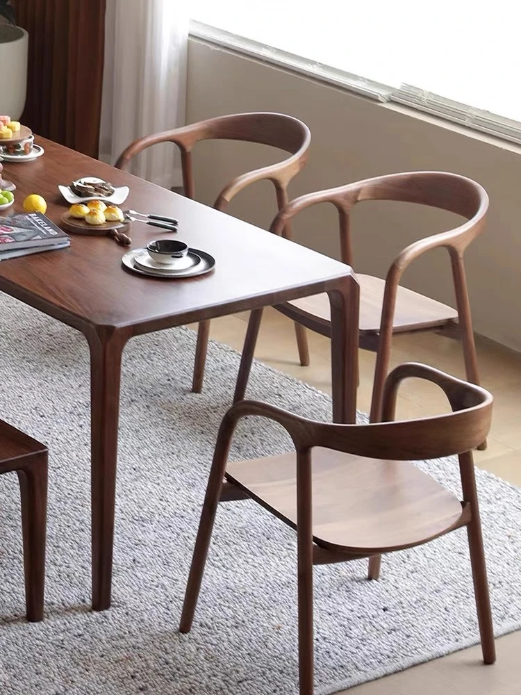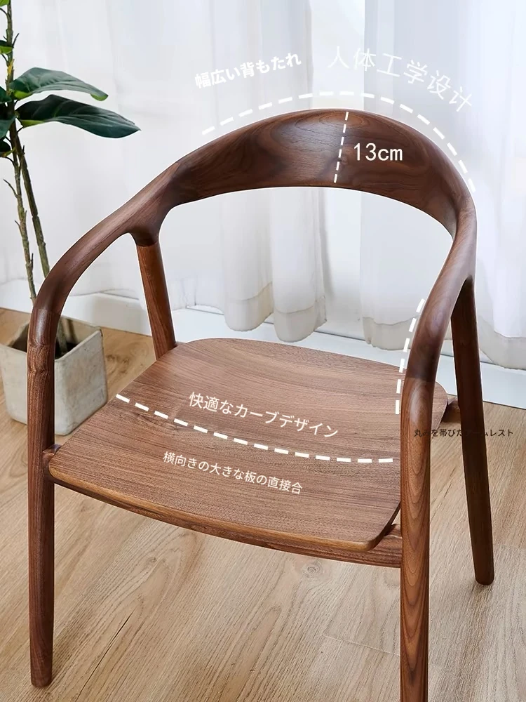 北欧スタイルの軽奢新中式リビング用シンプルな無垢材ダイニングチェア!北米産ブラックウォールナット使用、心地よいアームレスト付きで、家庭にぴったりの高品質な椅子です。