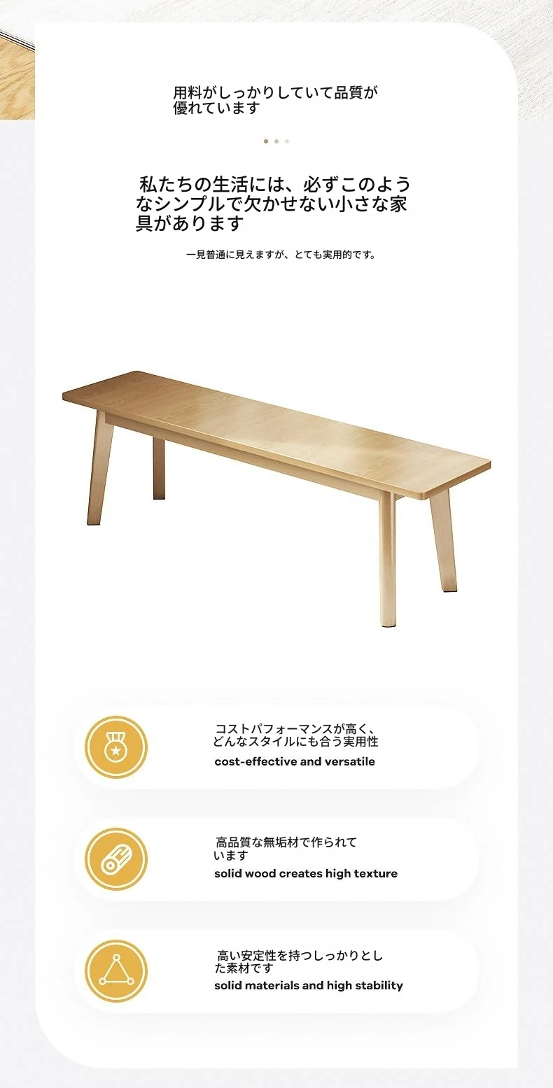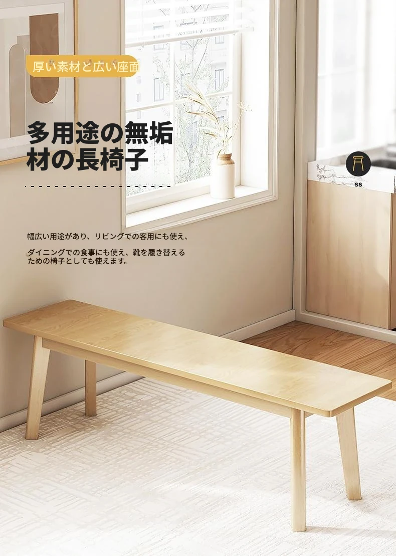 北欧風全木製ロングベンチ|シンプルモダンなデザイン|リビングやベッドサイドに最適|靴を履くのも楽々|飲食店や商業施設にもぴったりの多用途ベンチ!