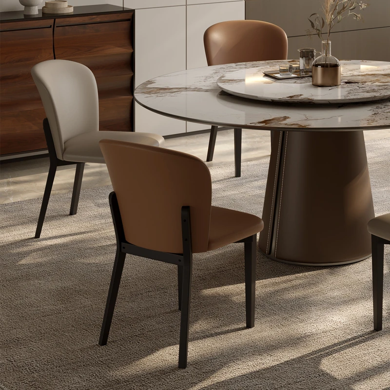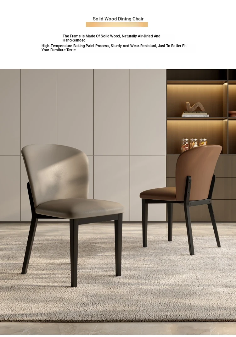 Nordic Solid Wood Dining Chair - Modern Minimalist Backrest Chair for Small Spaces, Perfect for Home Dining Rooms and Hotels, Featuring Stylish Leather Upholstery for Adults