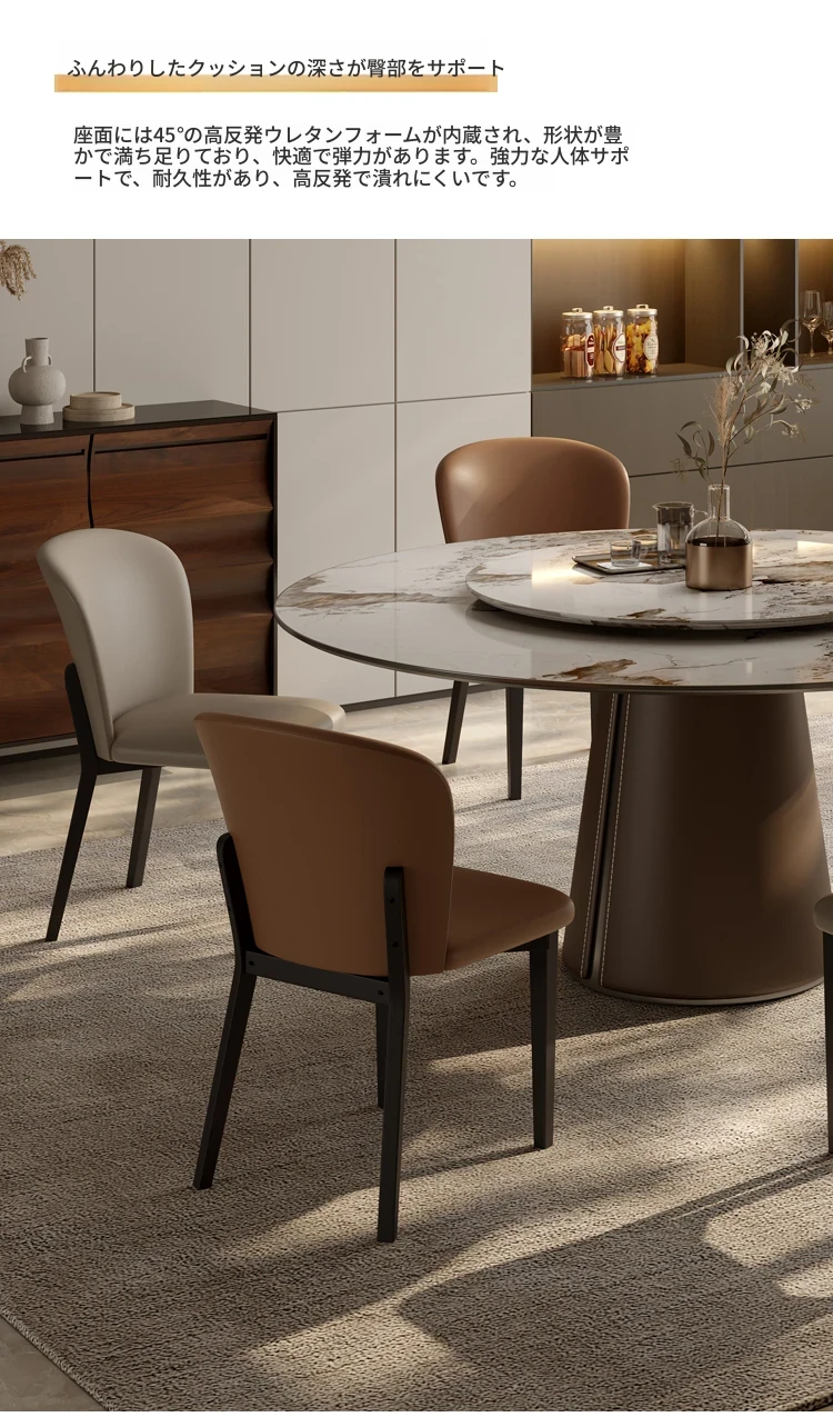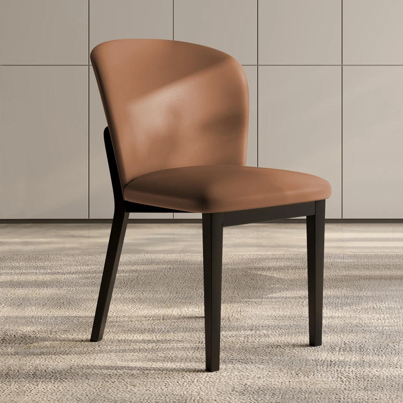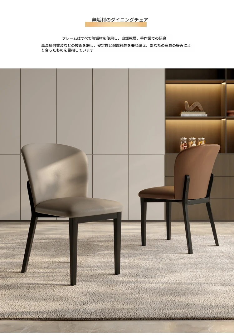 北欧スタイルの実木ダイニングチェア - モダンでシンプルなデザイン、背もたれ付き。小型住宅やレストランに最適な、快適なレザー仕上げの大人用チェア。おしゃれな空間作りにぴったり!