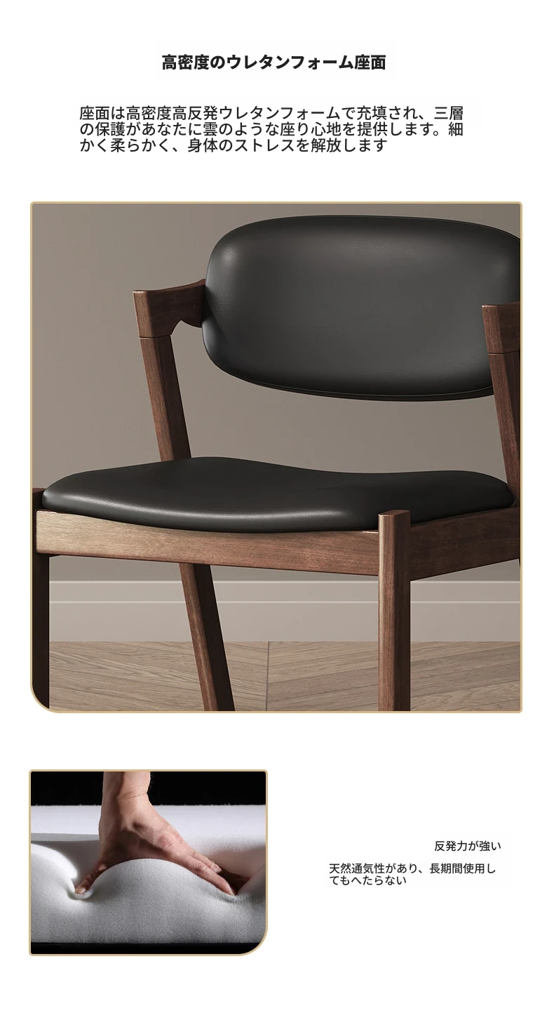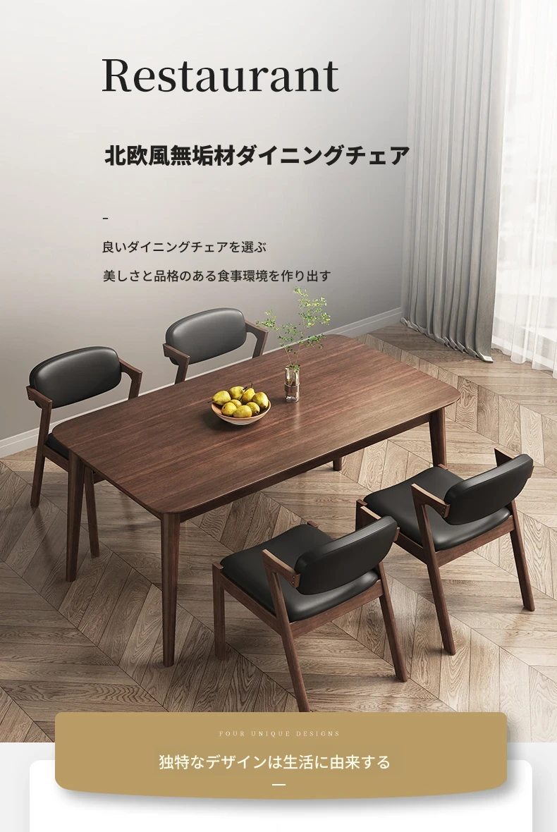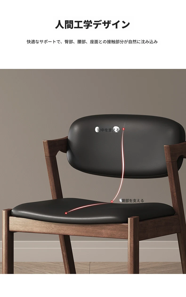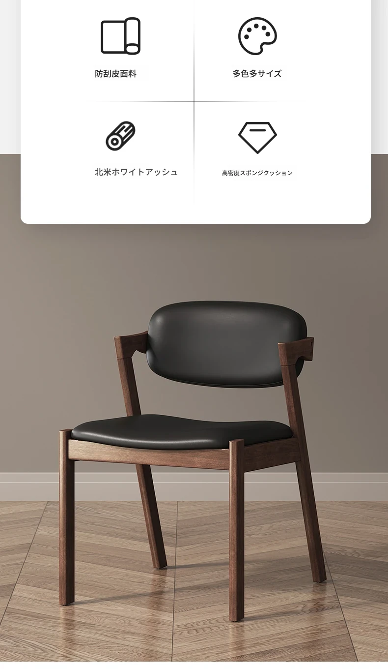 北欧スタイルの無垢材ダイニングチェア - モダンでシンプルなデザイン、軽やかな贅沢感!カフェやホテル、レストラン、書斎、オフィスにも最適な背もたれ付き。あなたの空間をおしゃれに演出します!