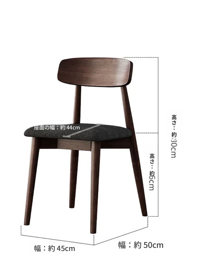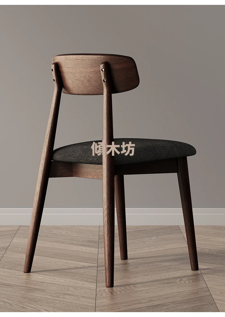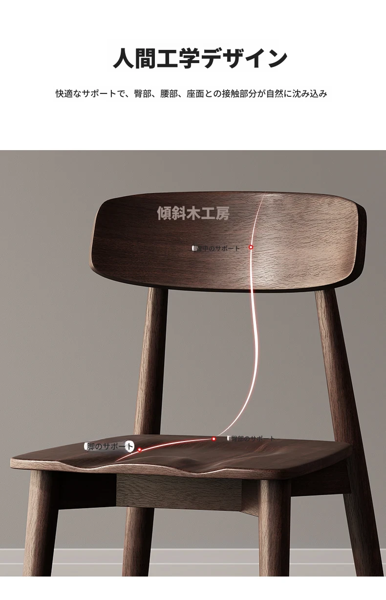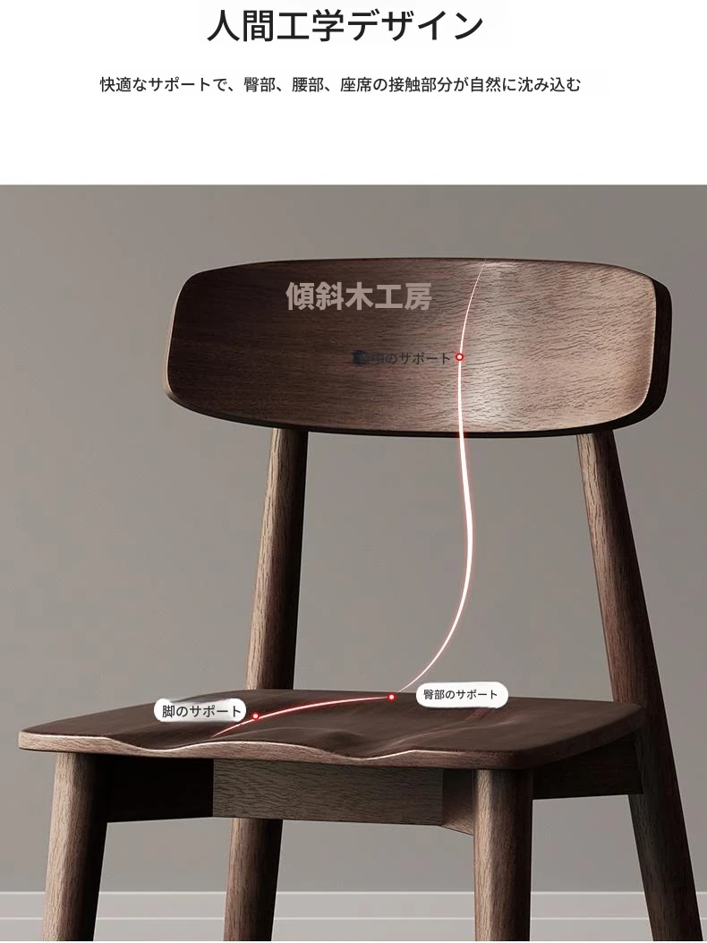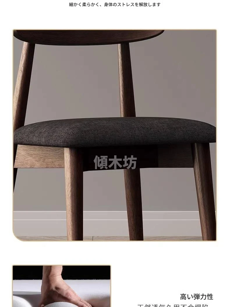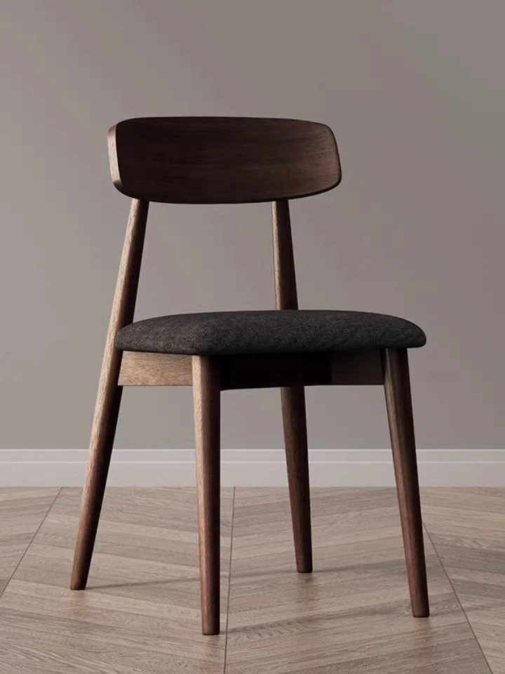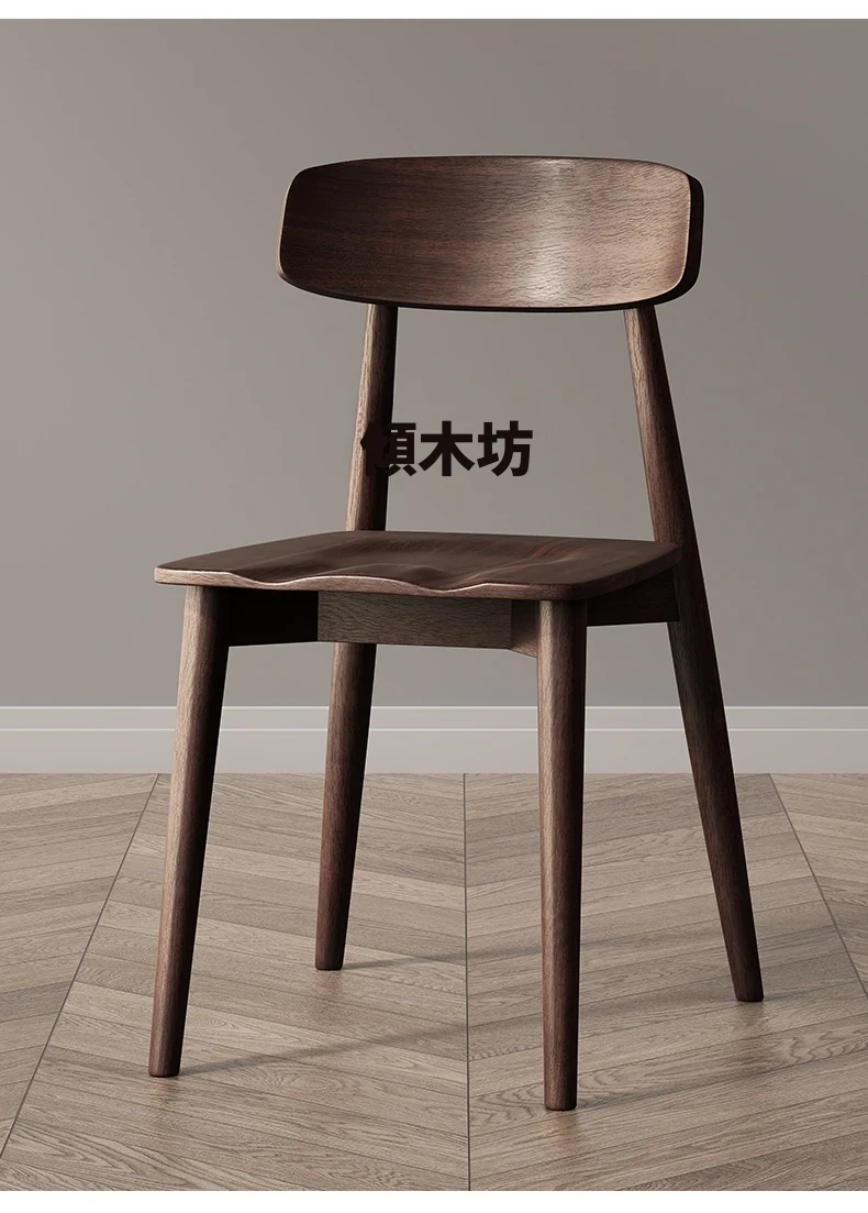 北欧スタイルの無垢材ダイニングチェア - 家庭向けのウォールナット製、モダンでシンプルなデザイン。小さなスペースにもぴったりな背もたれ付きダイニングチェア!快適な座り心地で、食卓をより魅力的に演出します。