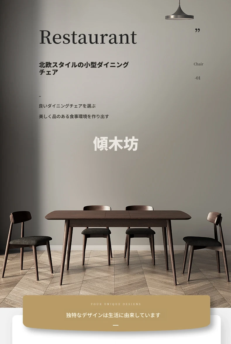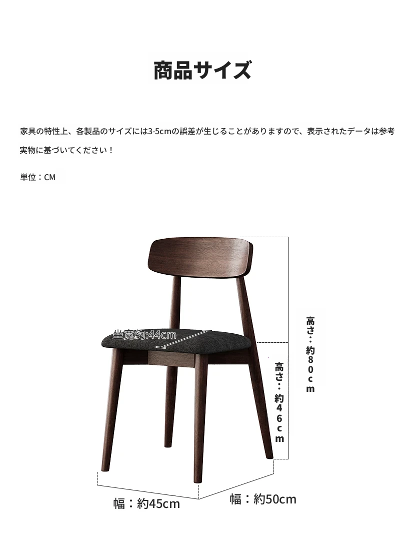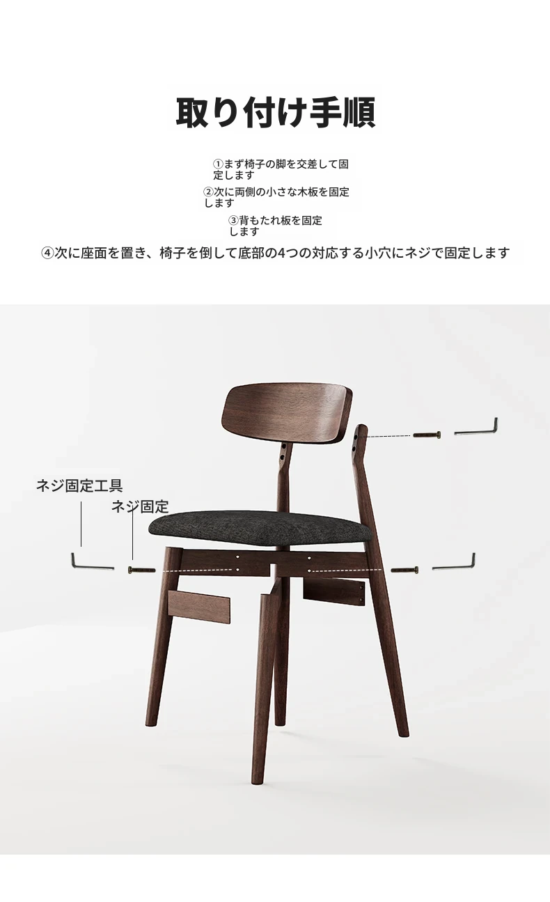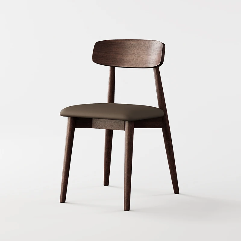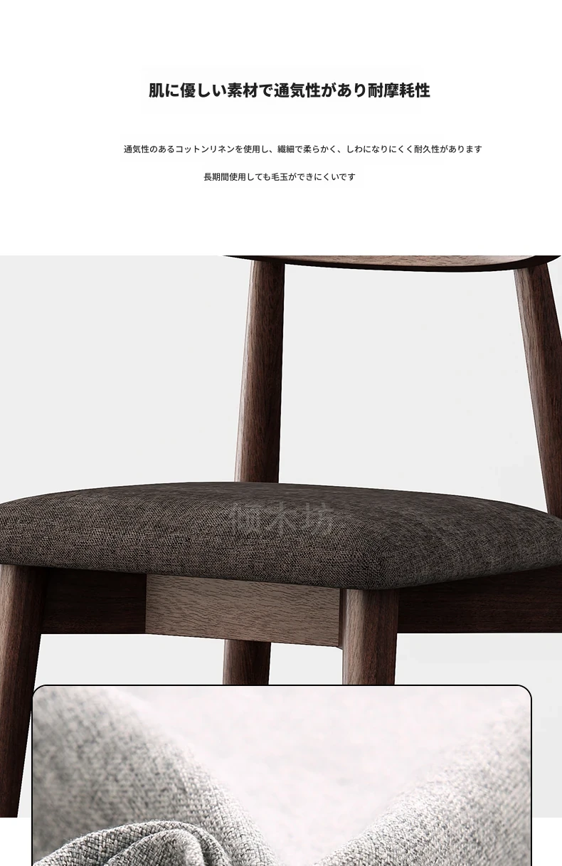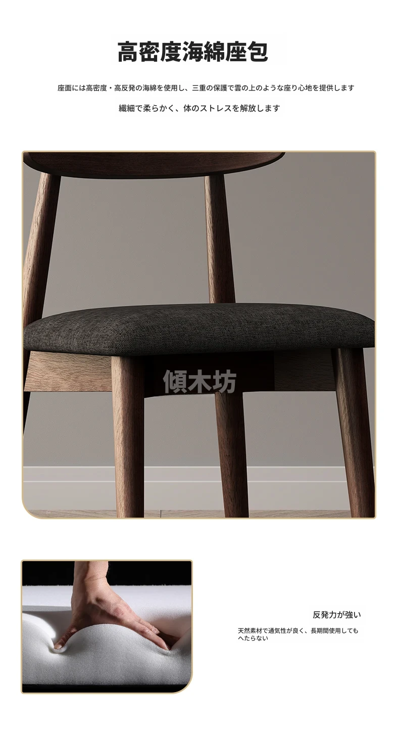 北欧スタイルの無垢材ダイニングチェア - 家庭向けのウォールナット製、モダンでシンプルなデザイン。小さなスペースにもぴったりな背もたれ付きダイニングチェア!快適な座り心地で、食卓をより魅力的に演出します。