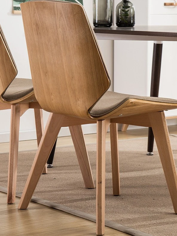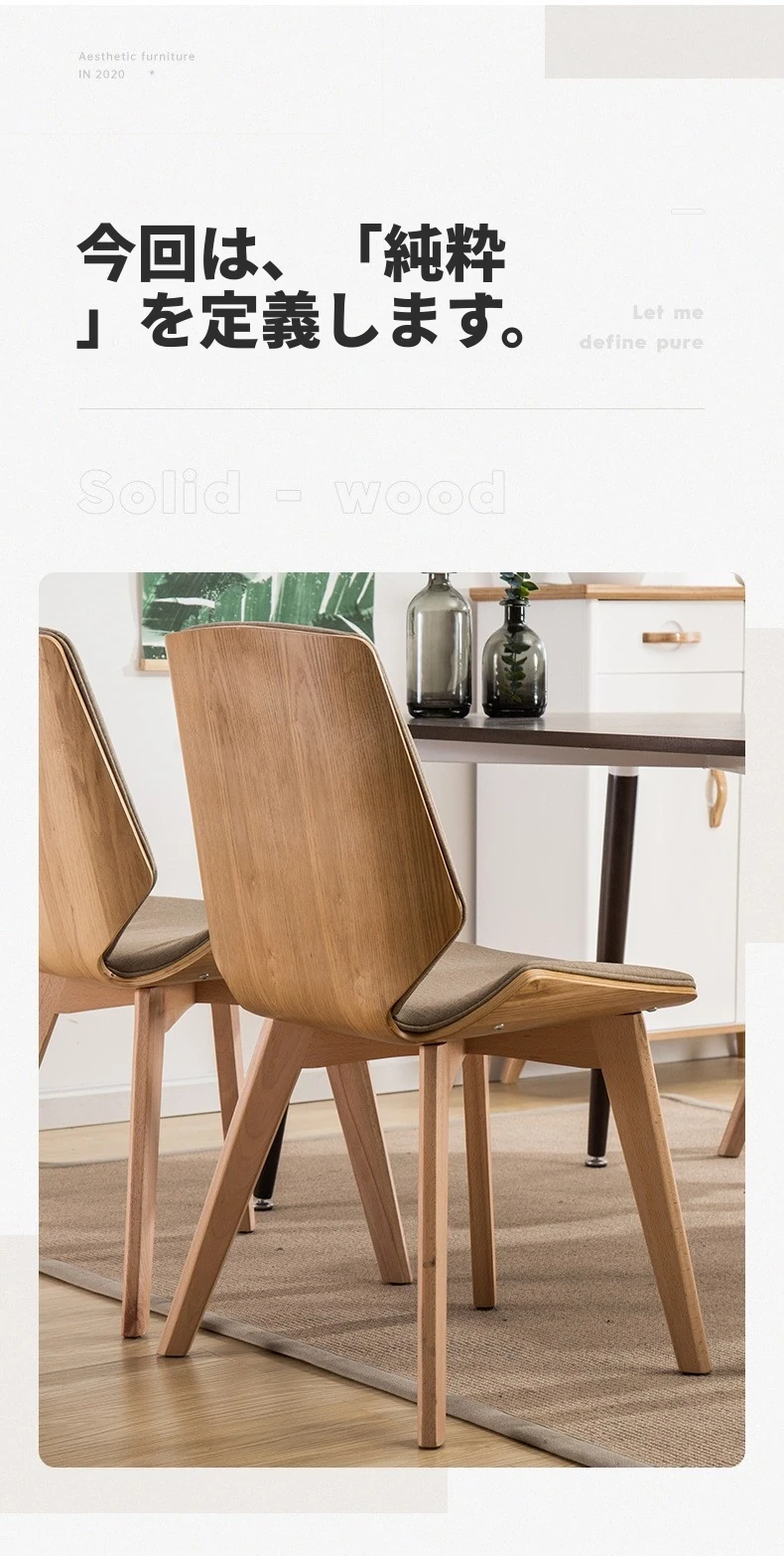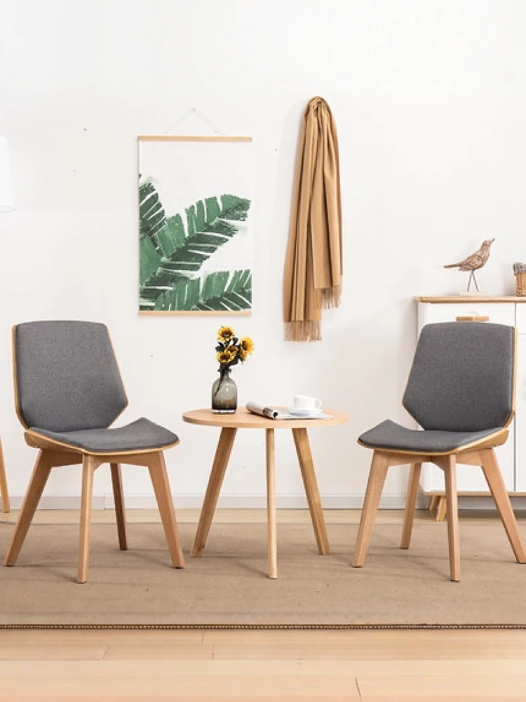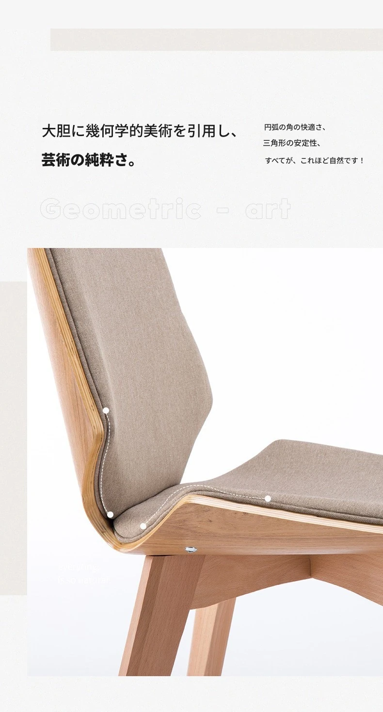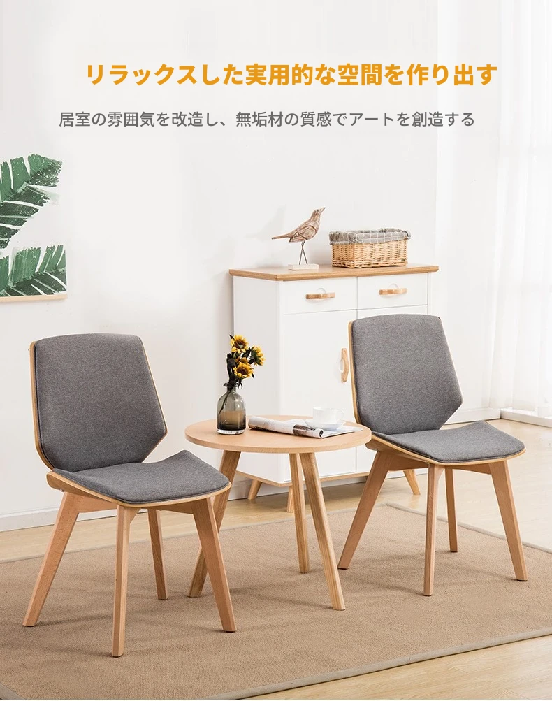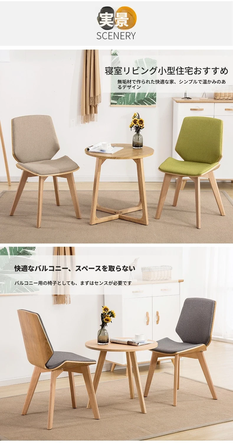 北欧スタイルの天然木製ダイニングチェア|カフェやティールームに最適なファブリックリラックスチェア|家庭用、背もたれ付き、書斎やネイルサロンにもピッタリ!