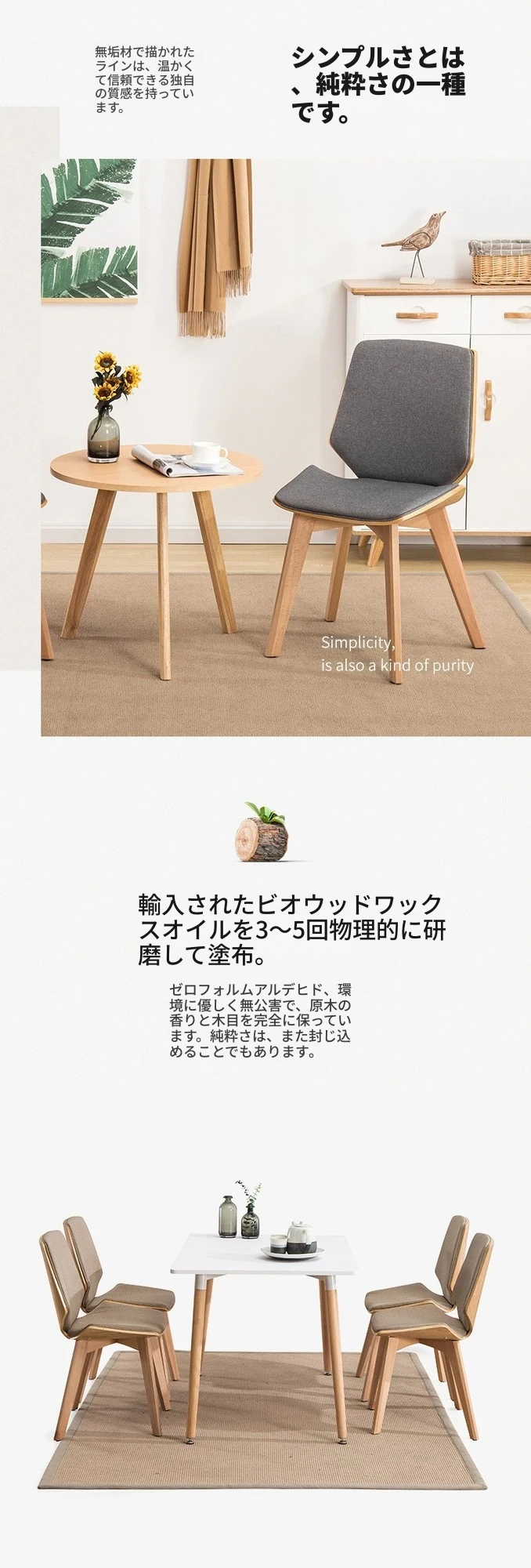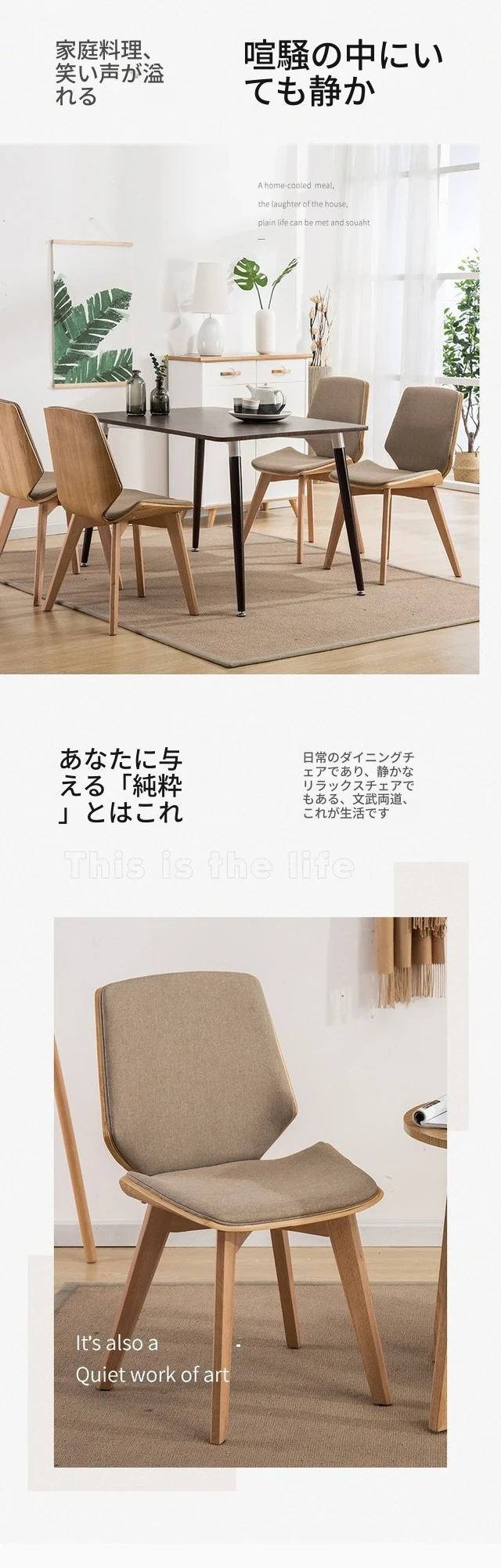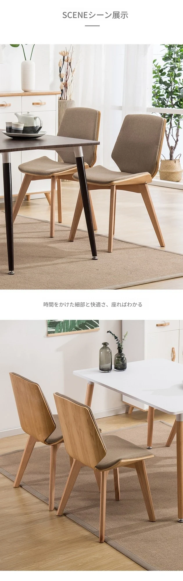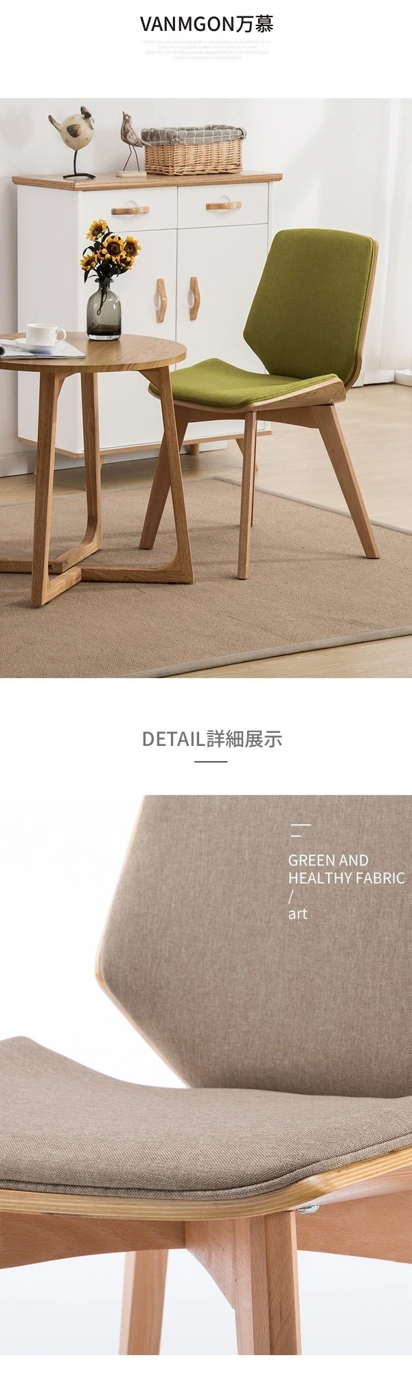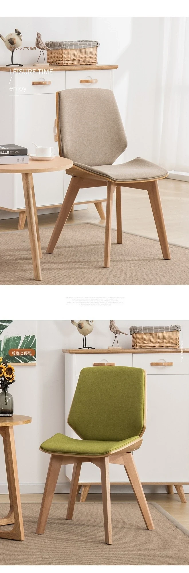 北欧スタイルの天然木製ダイニングチェア|カフェやティールームに最適なファブリックリラックスチェア|家庭用、背もたれ付き、書斎やネイルサロンにもピッタリ!