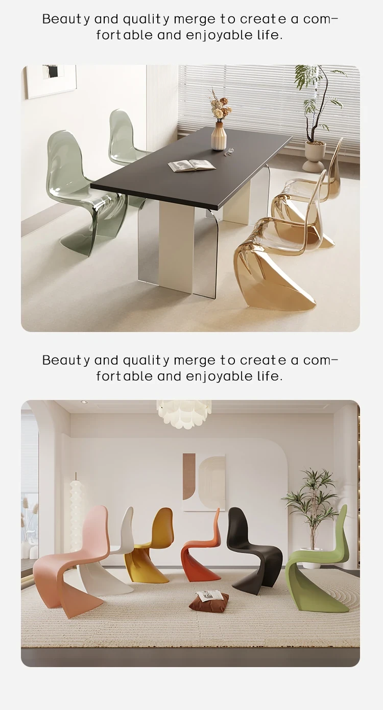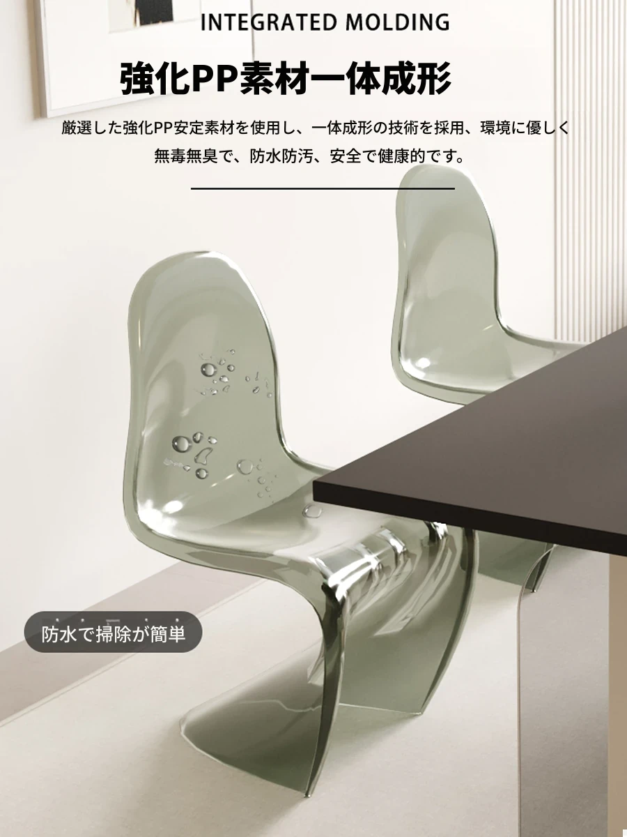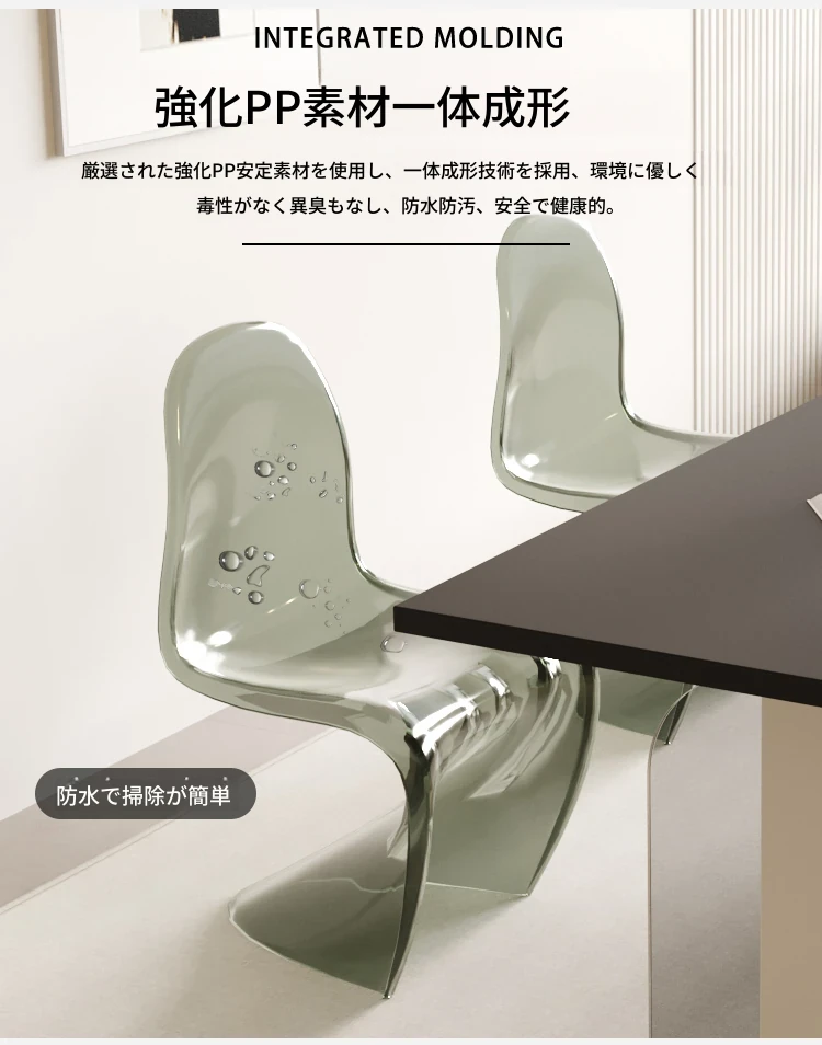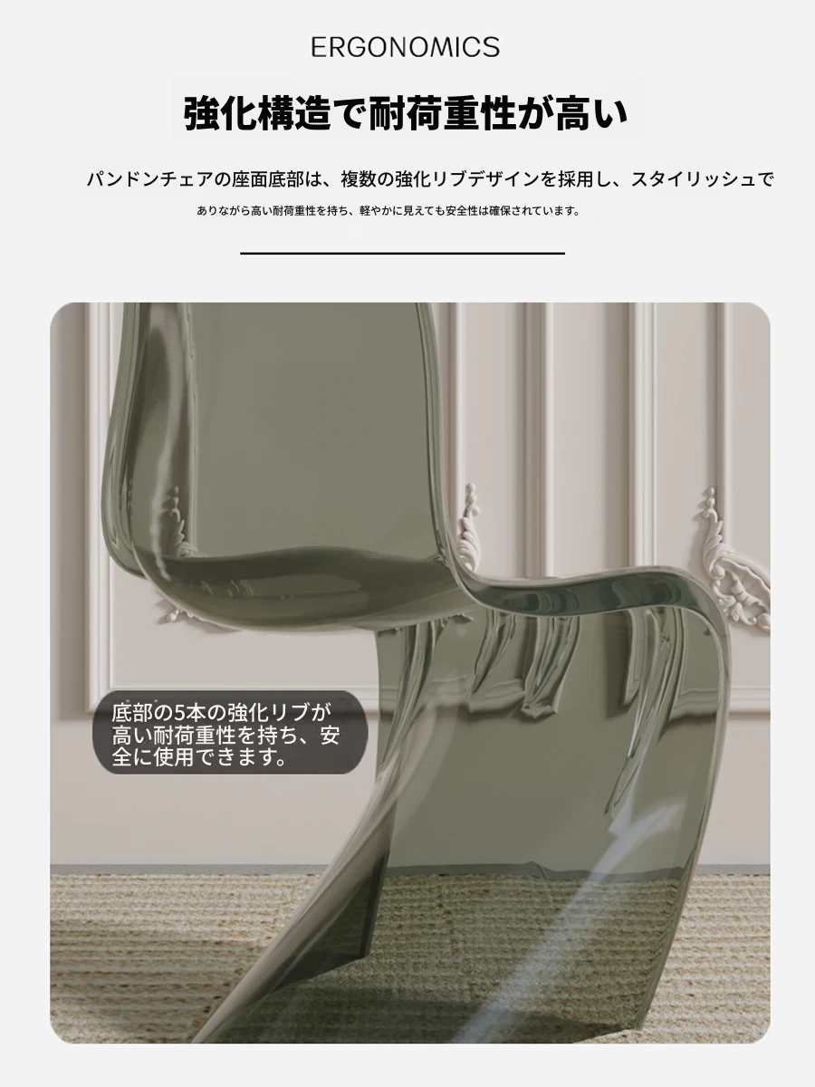 北欧風パントンチェア|透明プラスチック素材でスタイリッシュに!おしゃれで重ねられるダイニングチェア、シンプルモダンなデザインのリラックスできる背もたれ付き。メイク用スツールとしても最適!