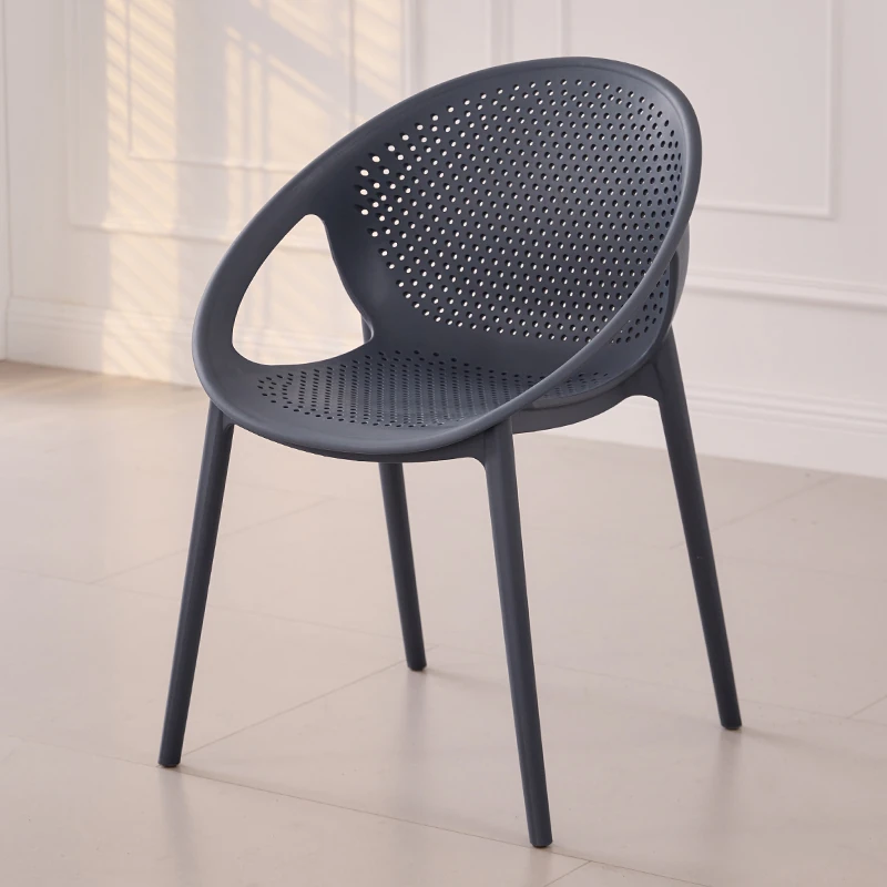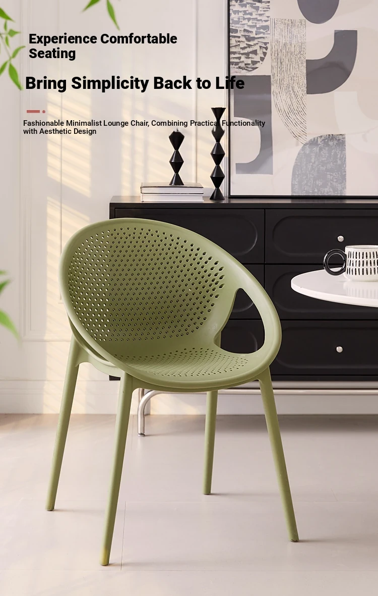 Nordic Style Thickened Plastic Dining Chair - Minimalist Outdoor Leisure Chair with Hollow Back Design for Trendy Conversations and Dining Experience
