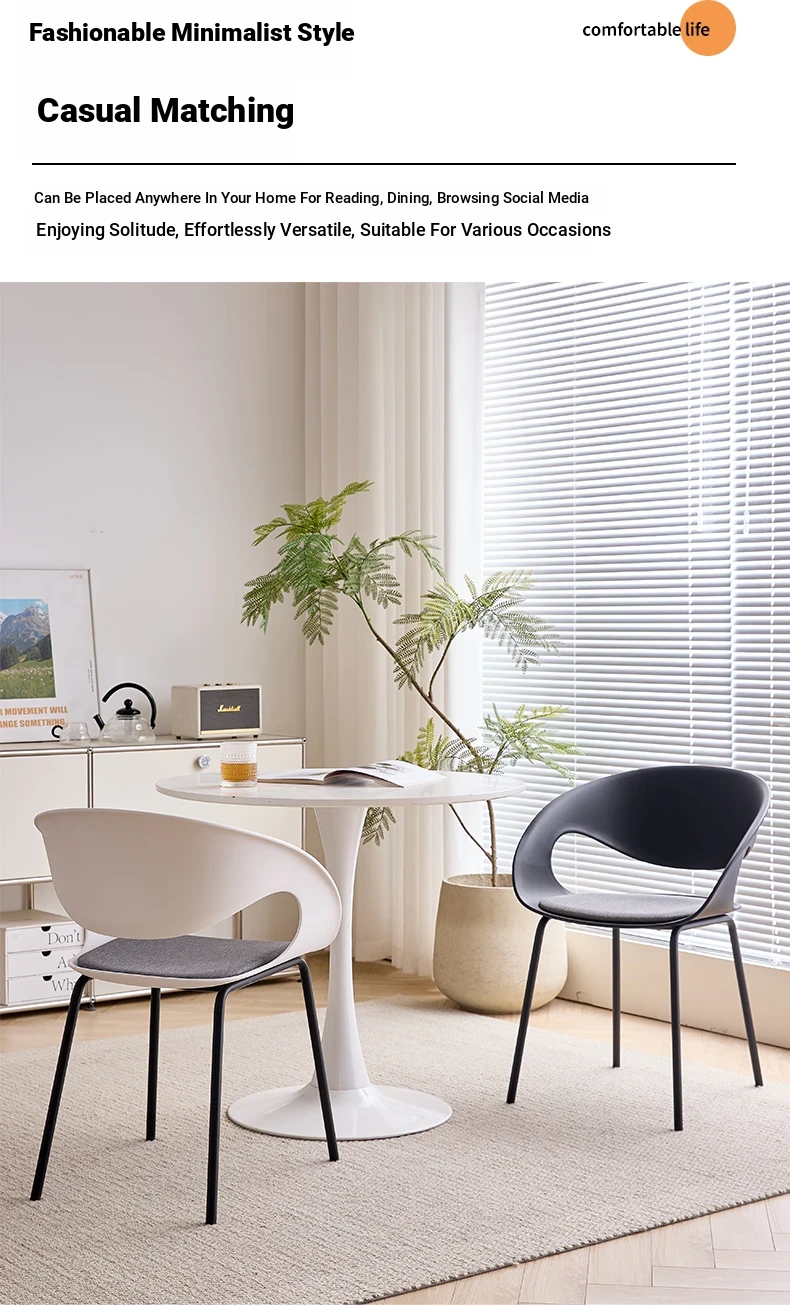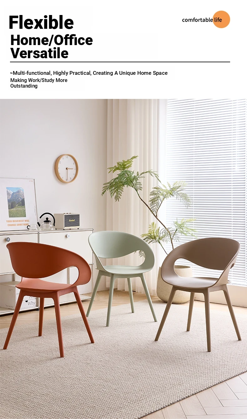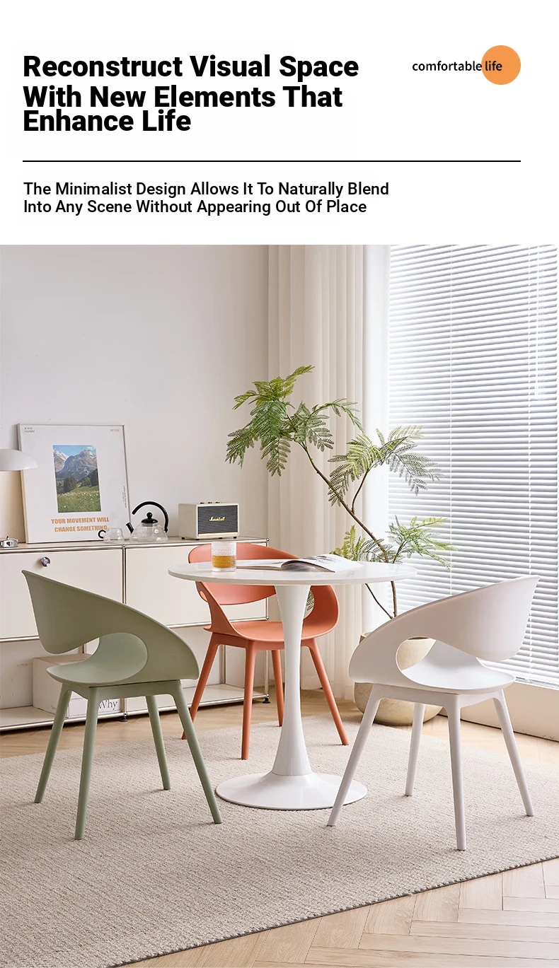 Nordic Thickened Plastic Dining Chair - Modern Minimalist Design for Home & Commercial Use, Perfect for Restaurants, Milk Tea Shops, and Dessert Cafés with Comfortable Backrest