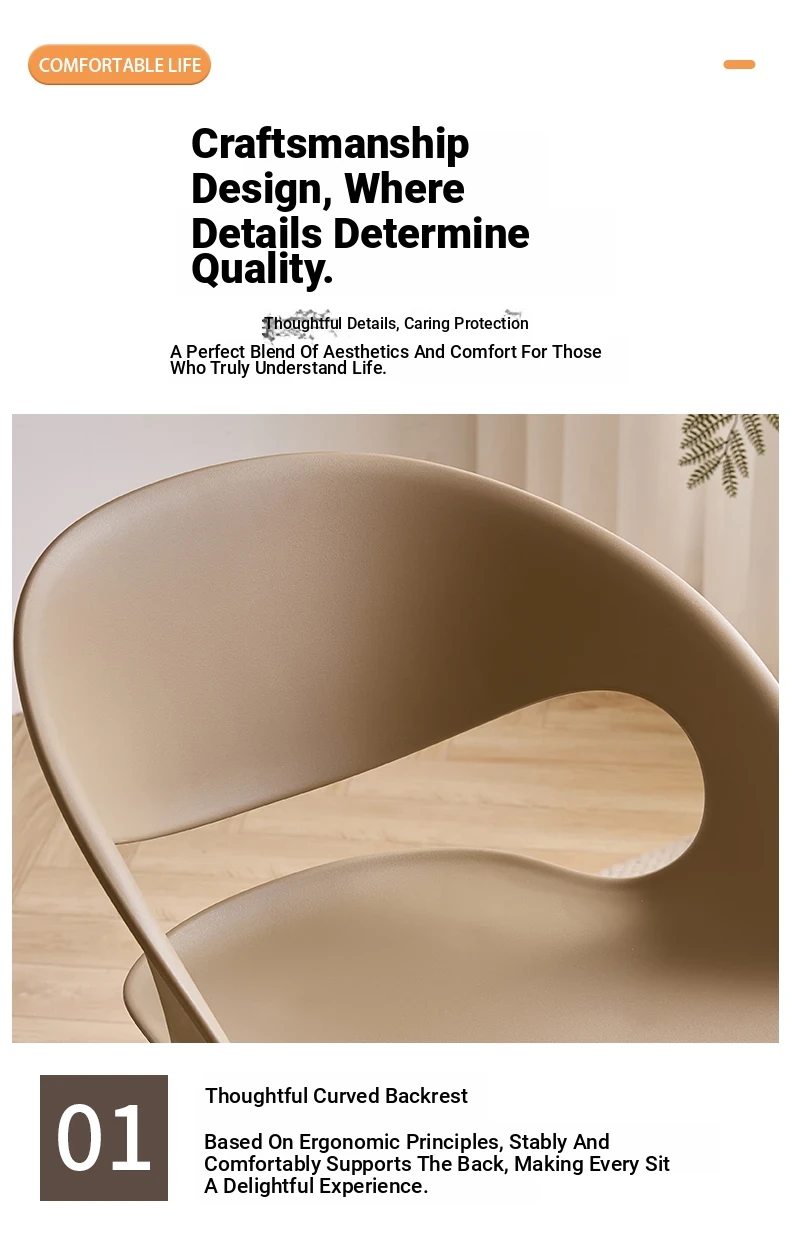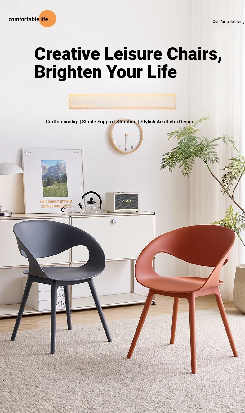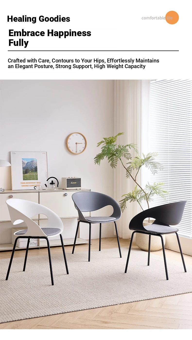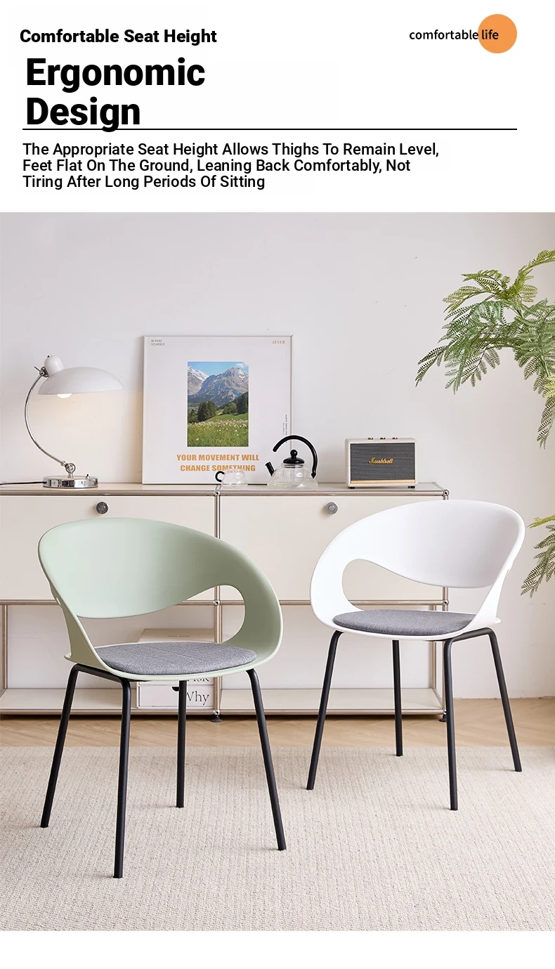 Nordic Thickened Plastic Dining Chair - Modern Minimalist Design for Home & Commercial Use, Perfect for Restaurants, Milk Tea Shops, and Dessert Cafés with Comfortable Backrest