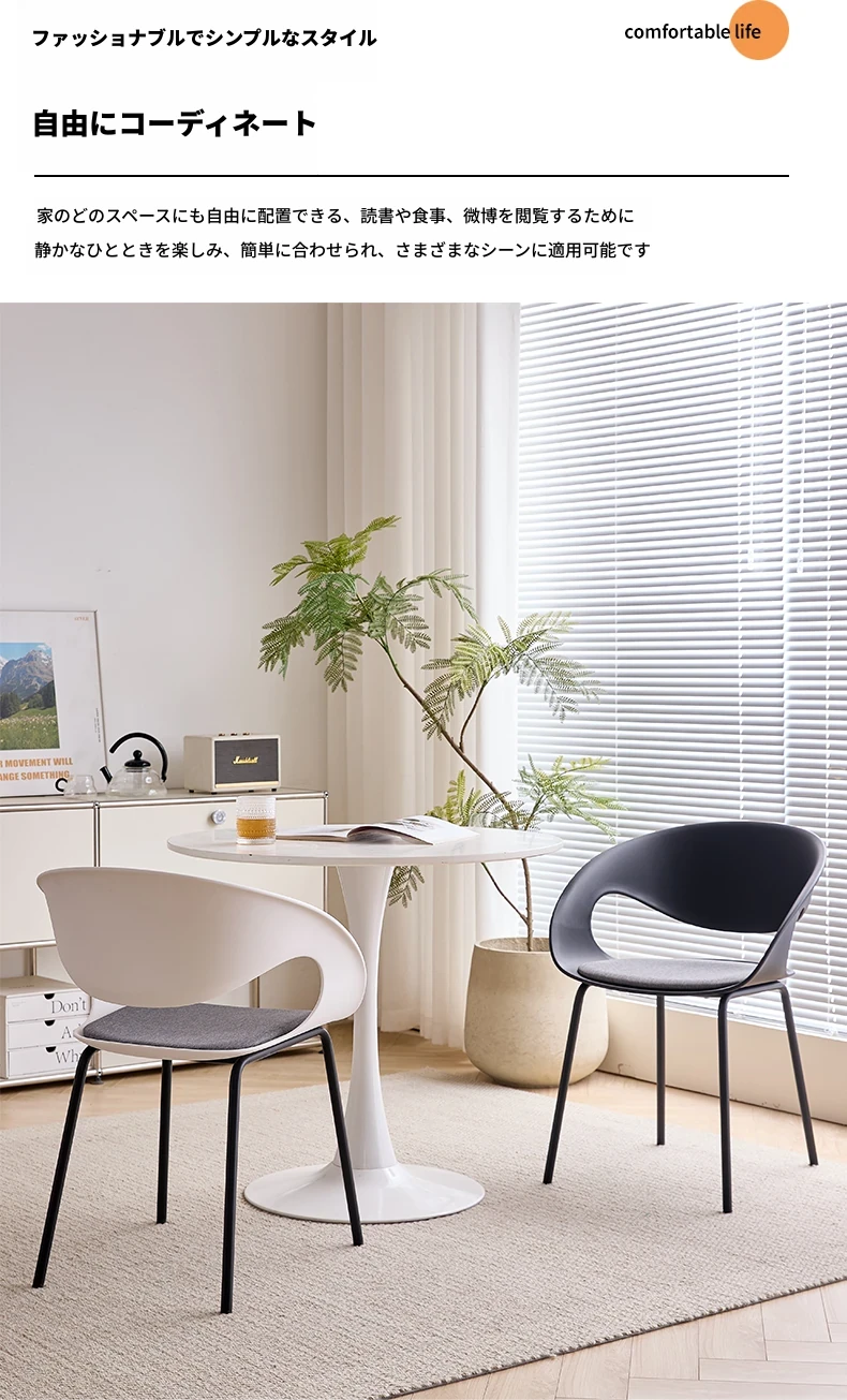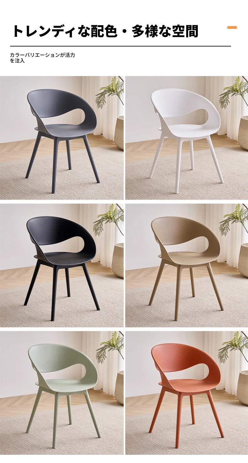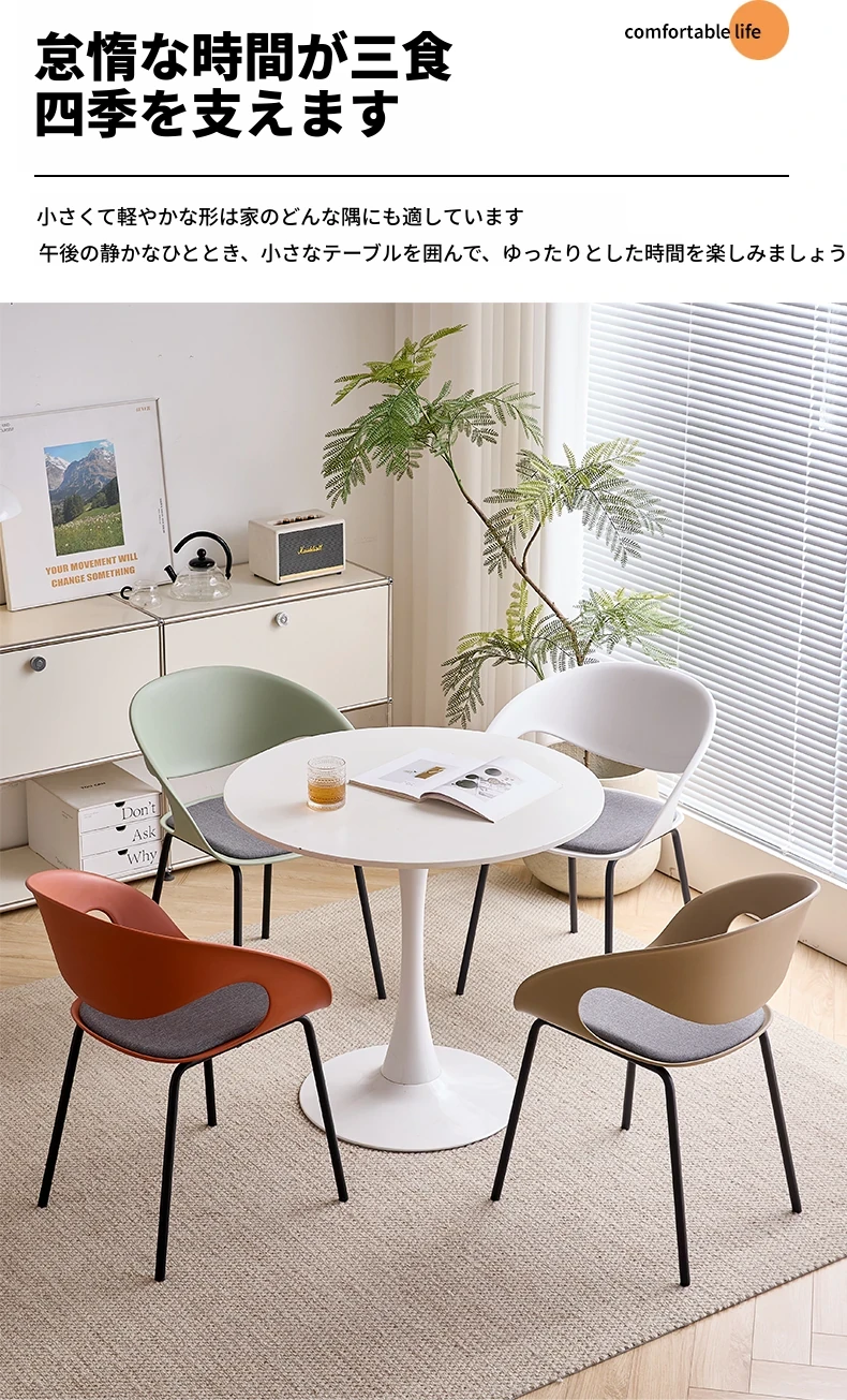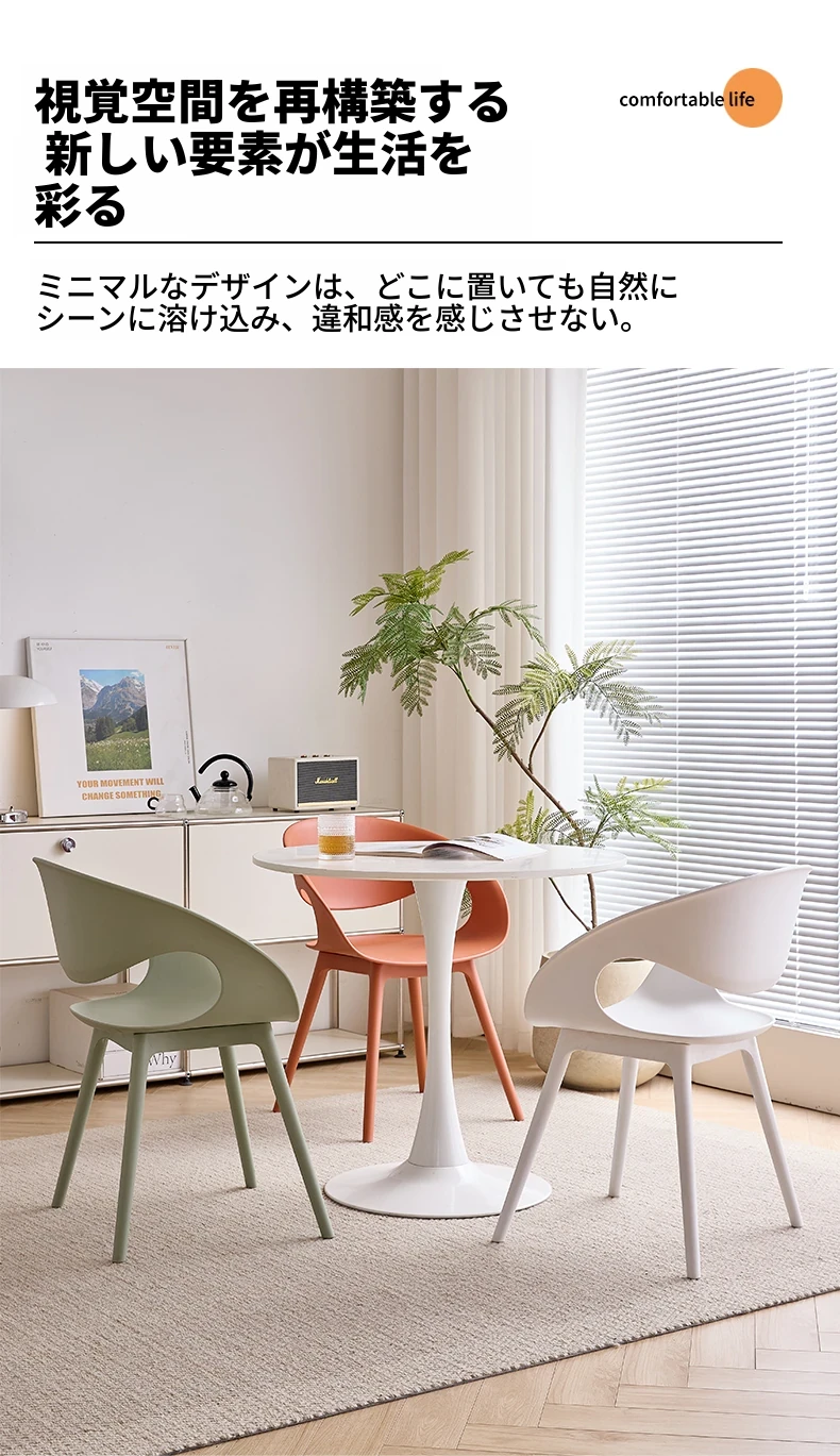 北欧風デザインの厚手プラスチック製椅子|現代的でシンプルなダイニングチェア|人気のカフェやスイーツ店にも最適|背もたれ付きで快適な座り心地|おしゃれなインテリアを演出!