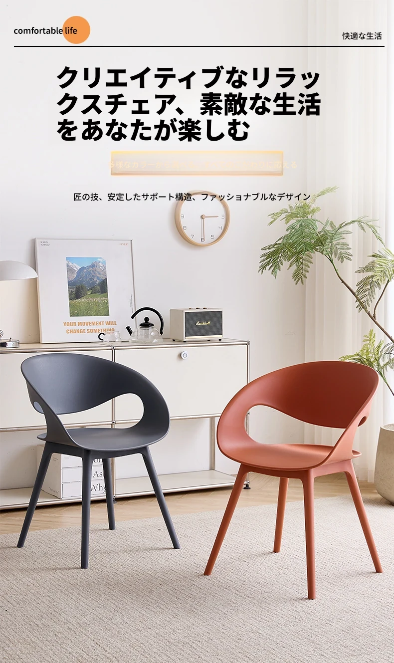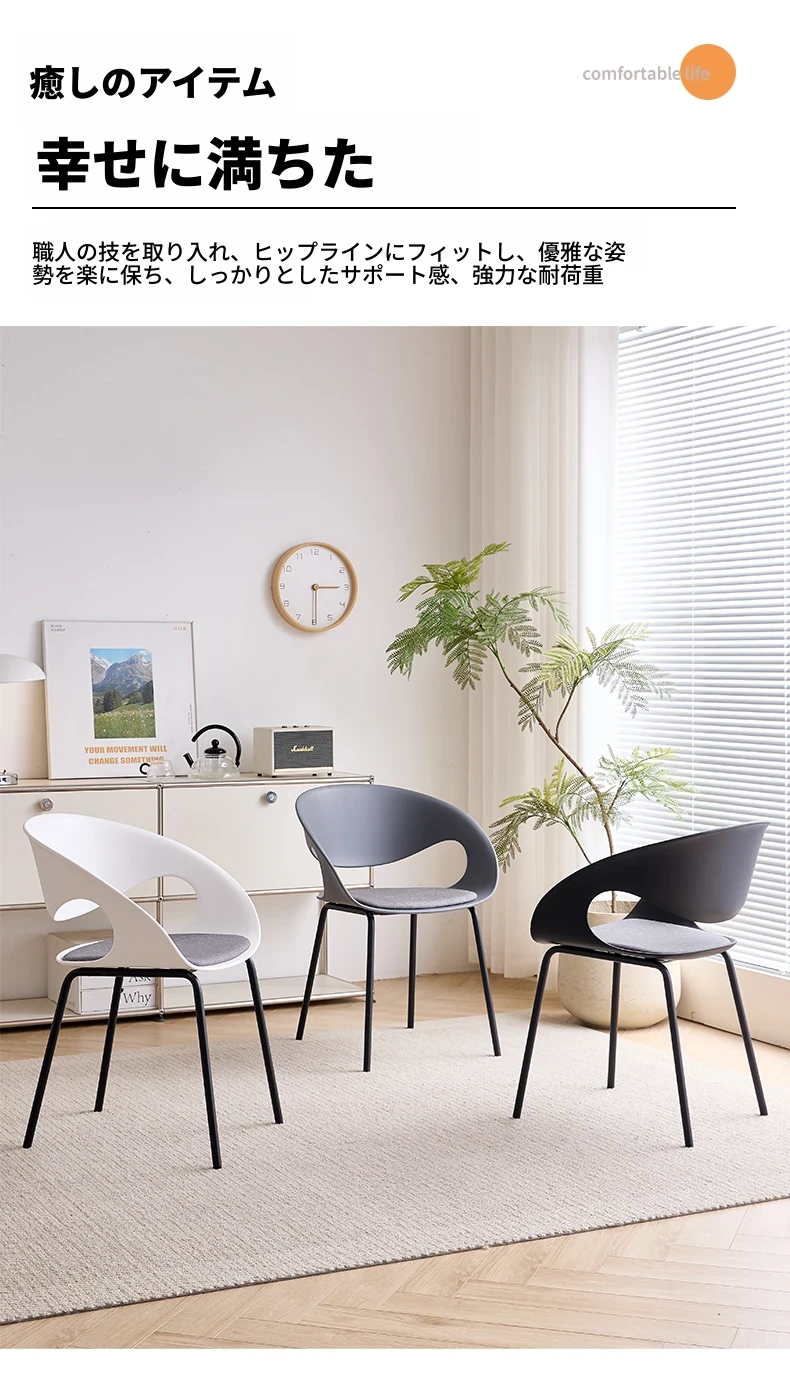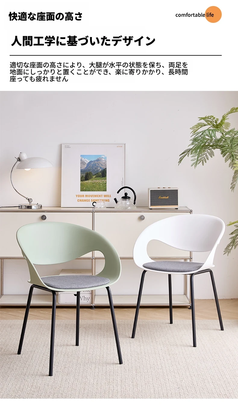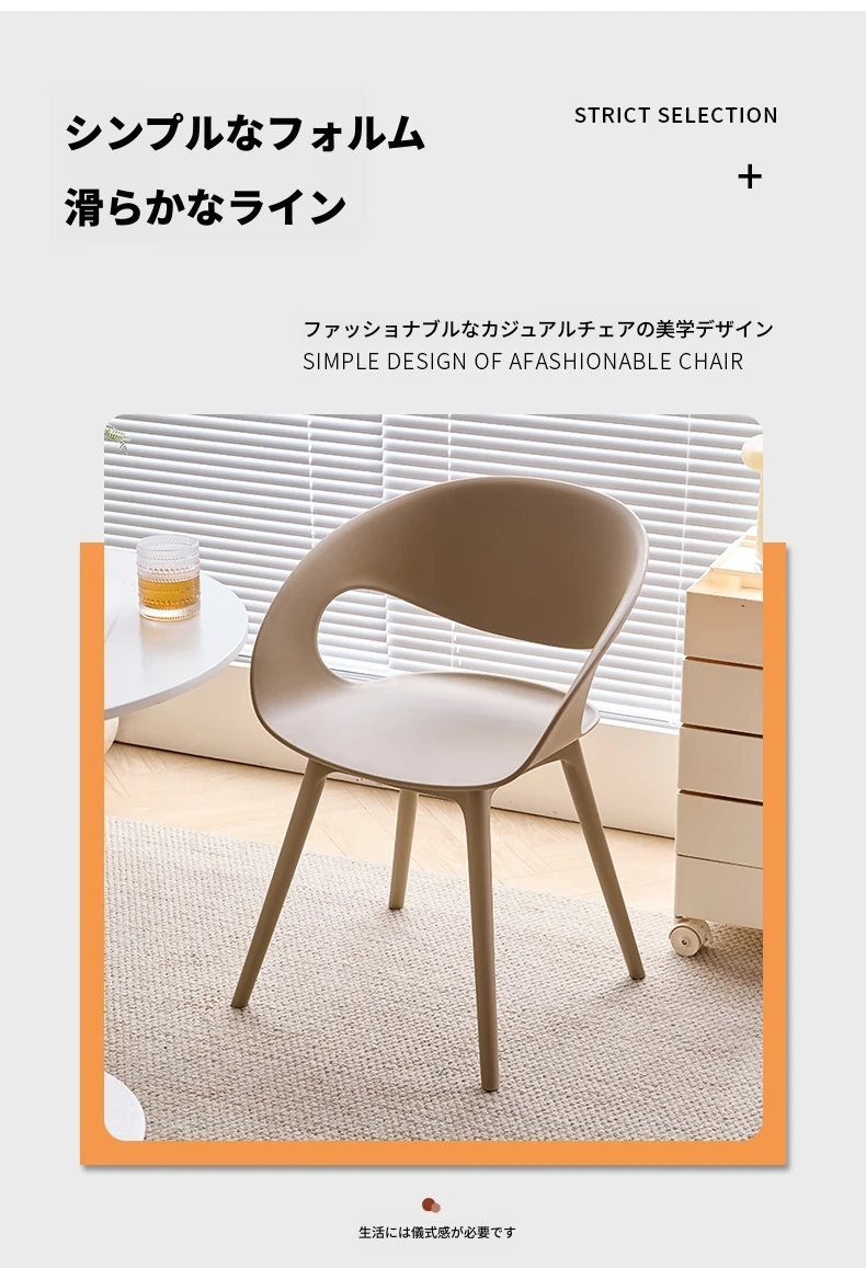 北欧風デザインの厚手プラスチック製椅子|現代的でシンプルなダイニングチェア|人気のカフェやスイーツ店にも最適|背もたれ付きで快適な座り心地|おしゃれなインテリアを演出!
