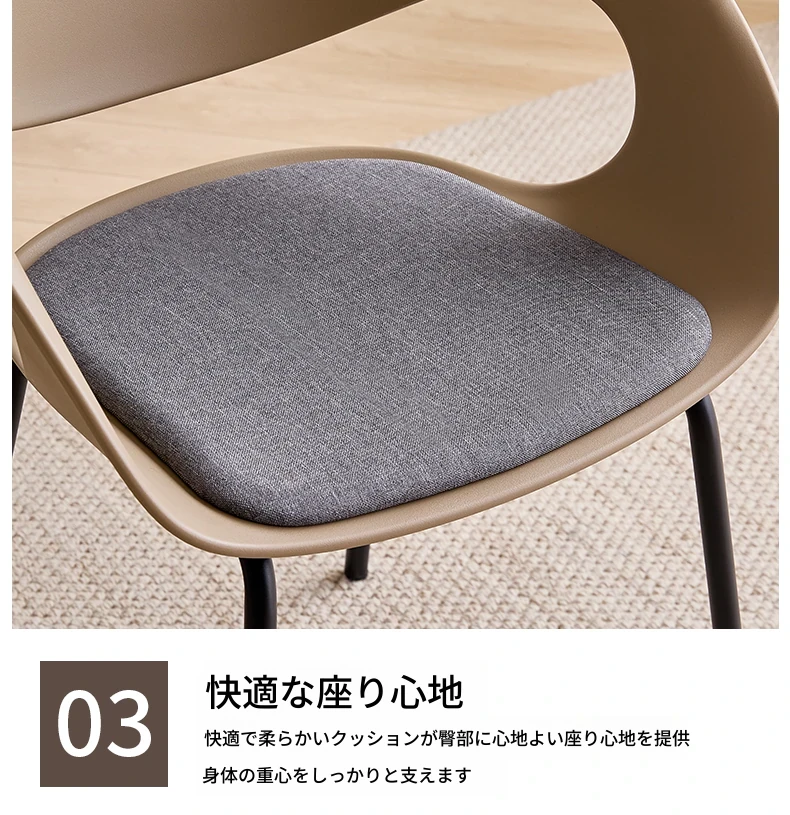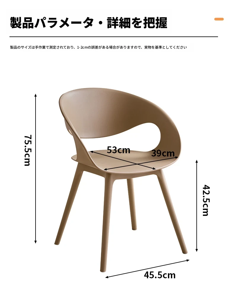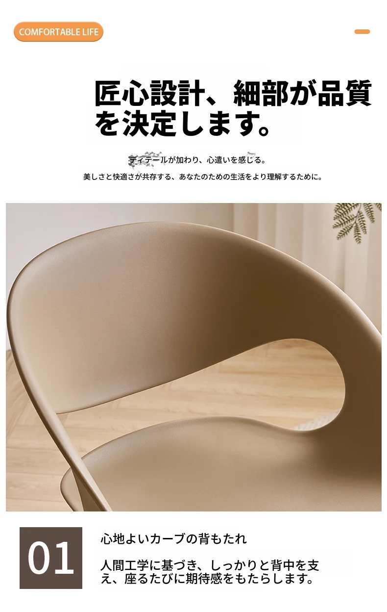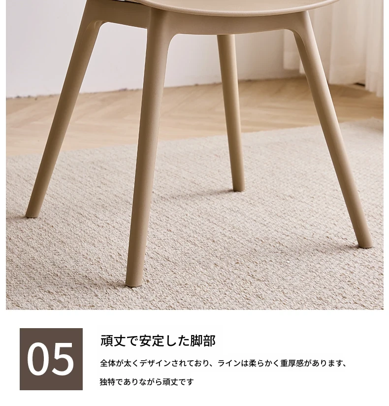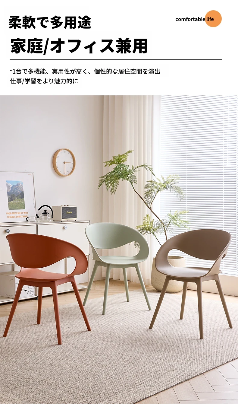 北欧風デザインの厚手プラスチック製椅子|現代的でシンプルなダイニングチェア|人気のカフェやスイーツ店にも最適|背もたれ付きで快適な座り心地|おしゃれなインテリアを演出!