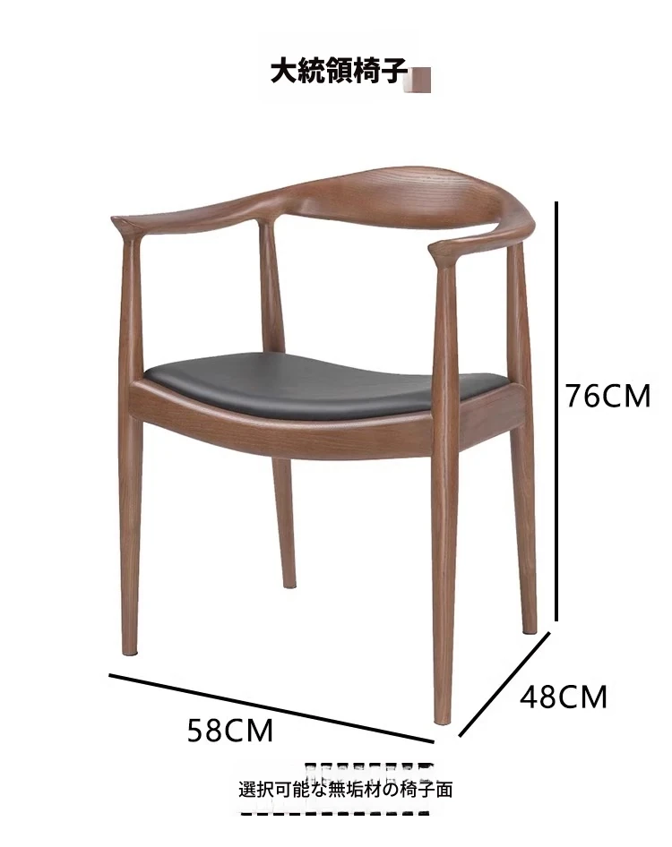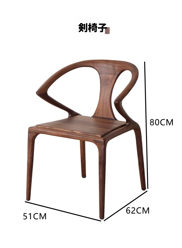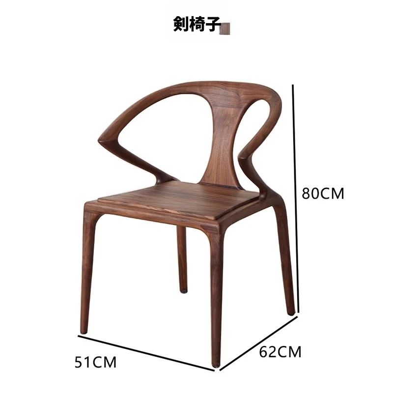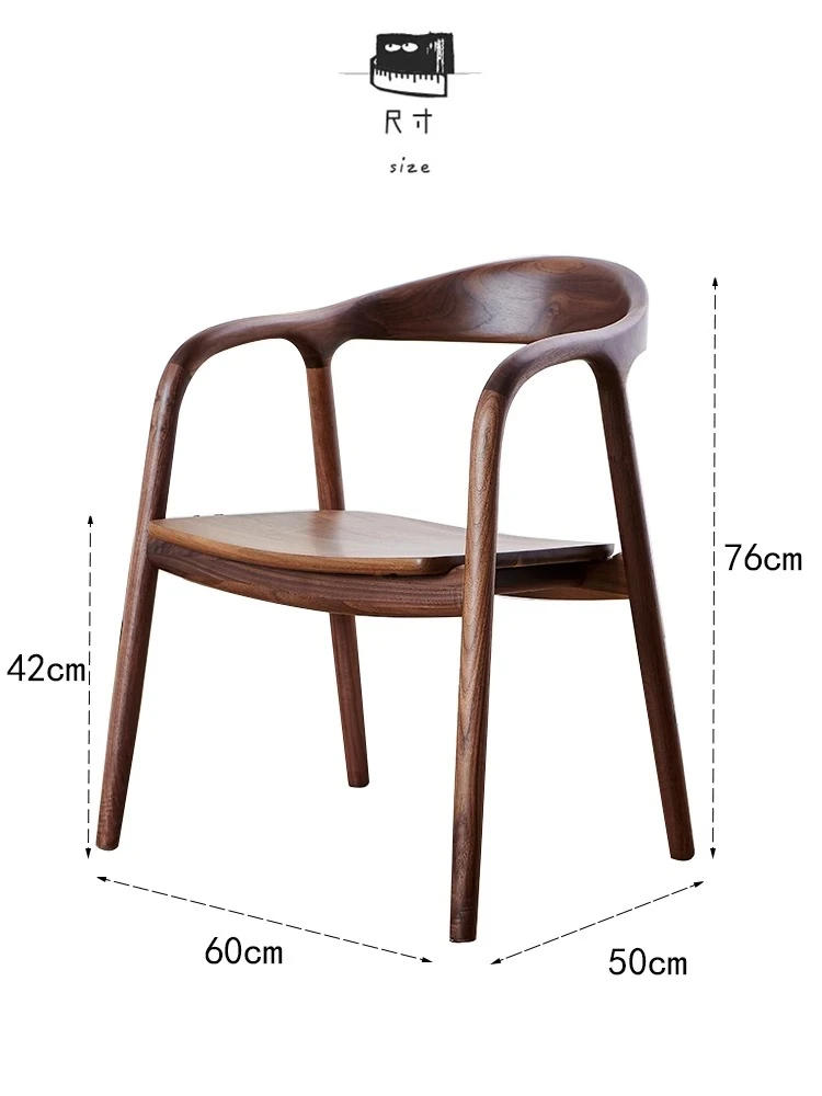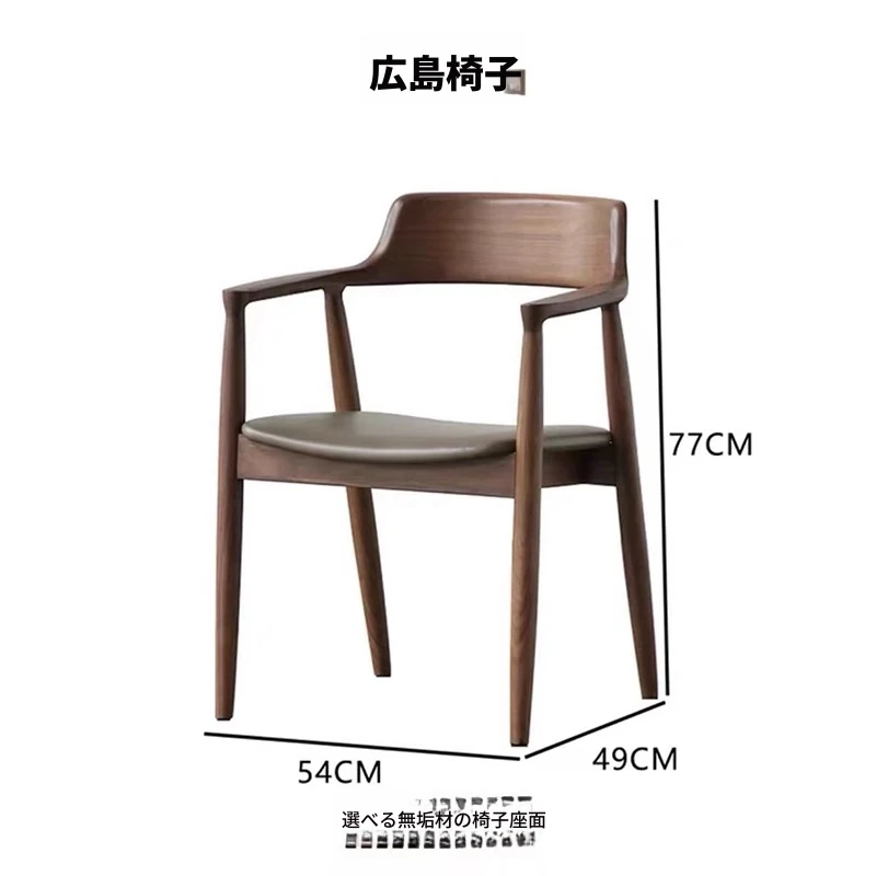 北米産ブラックウォールナットのダイニングチェアセット - おしゃれで頑丈な無垢材の中華風デザイン、リビングや書斎に最適な背もたれ付きアームチェア!快適さとスタイルを兼ね備えた一品。