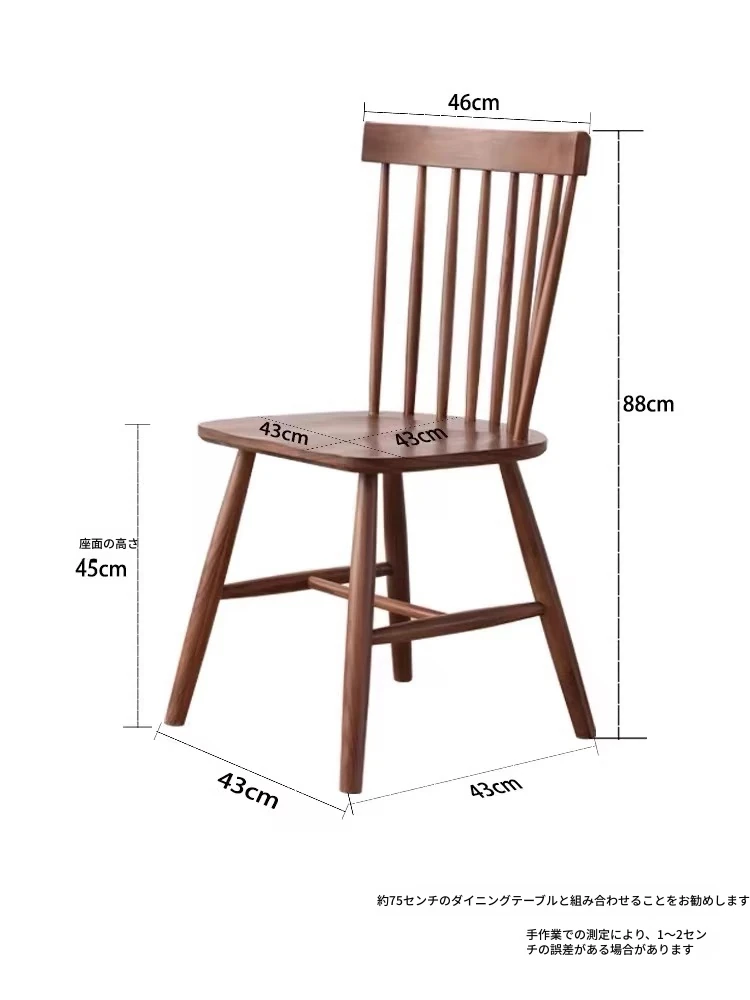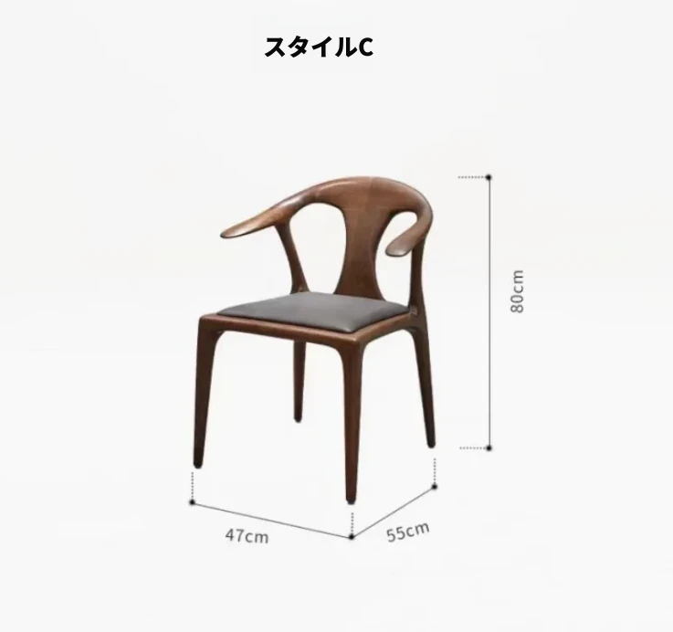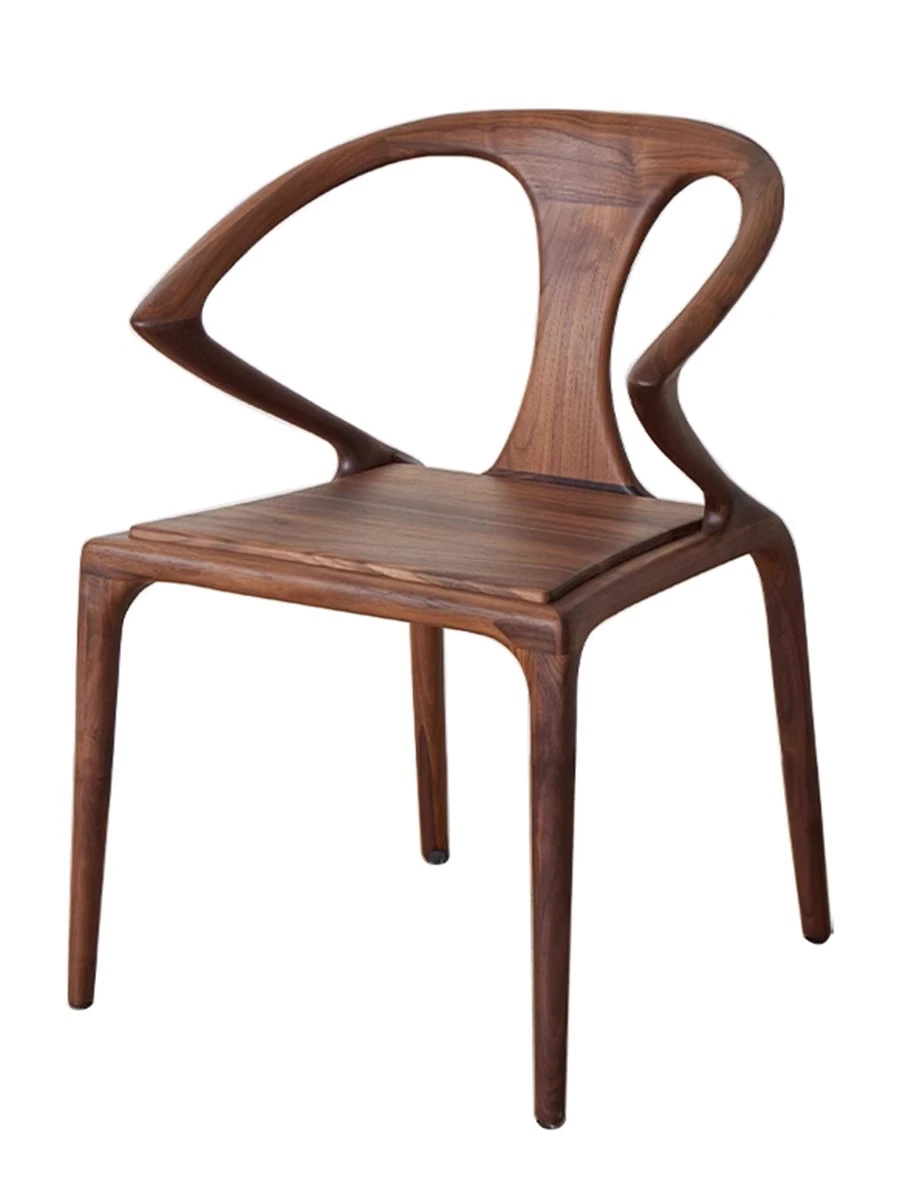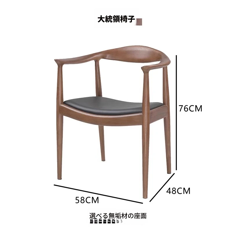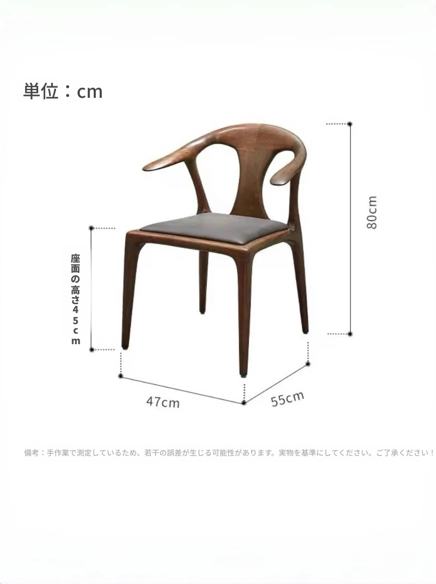 北米産ブラックウォールナットのダイニングチェアセット - おしゃれで頑丈な無垢材の中華風デザイン、リビングや書斎に最適な背もたれ付きアームチェア!快適さとスタイルを兼ね備えた一品。