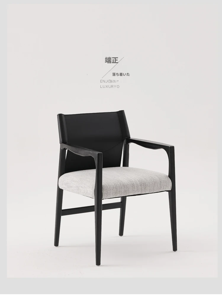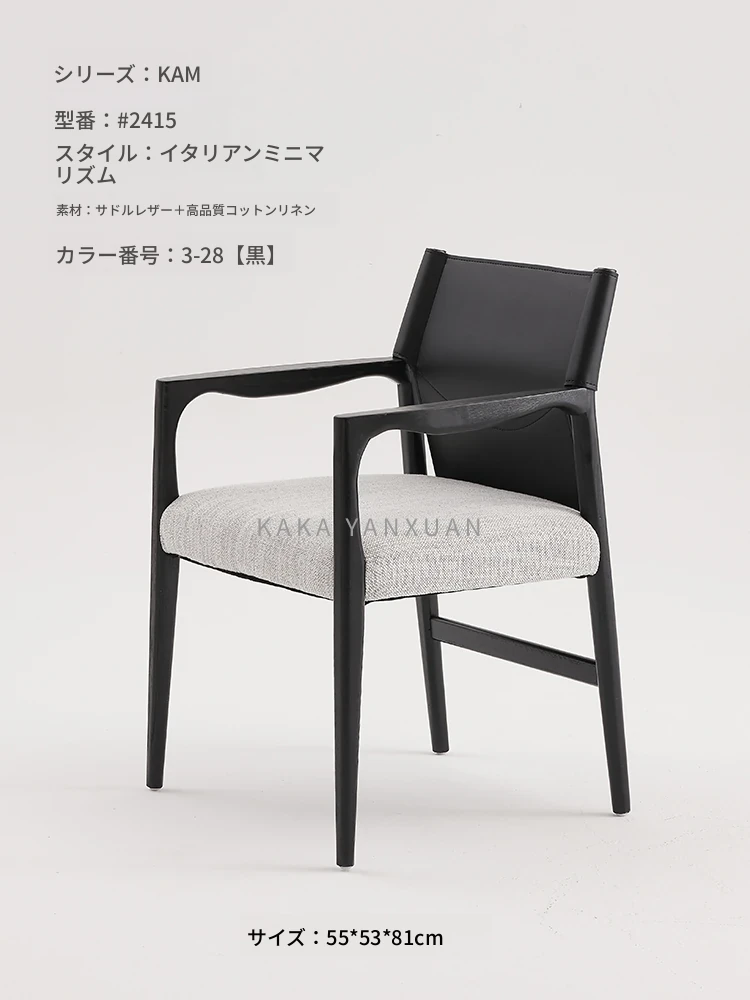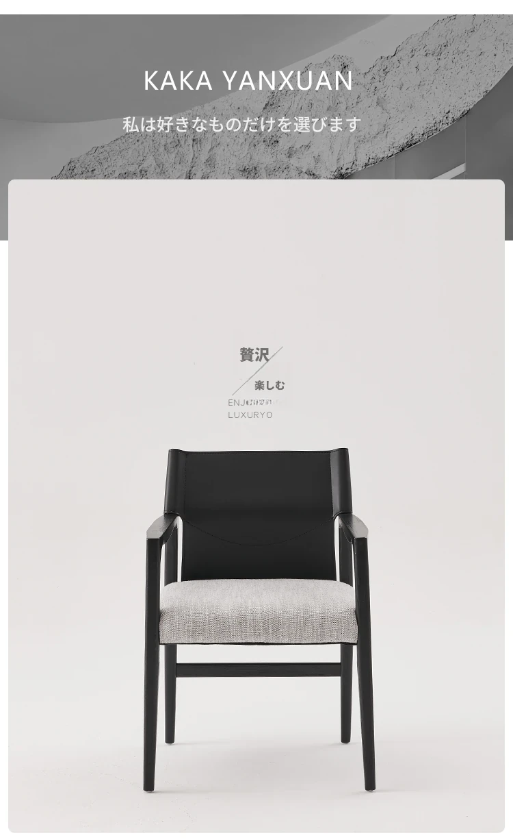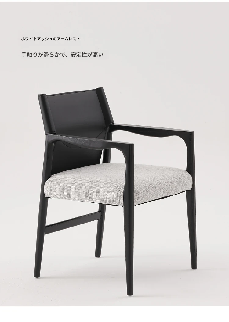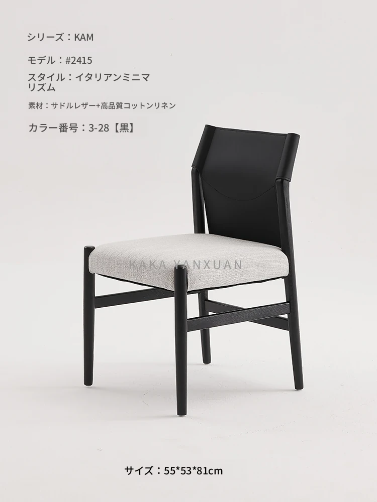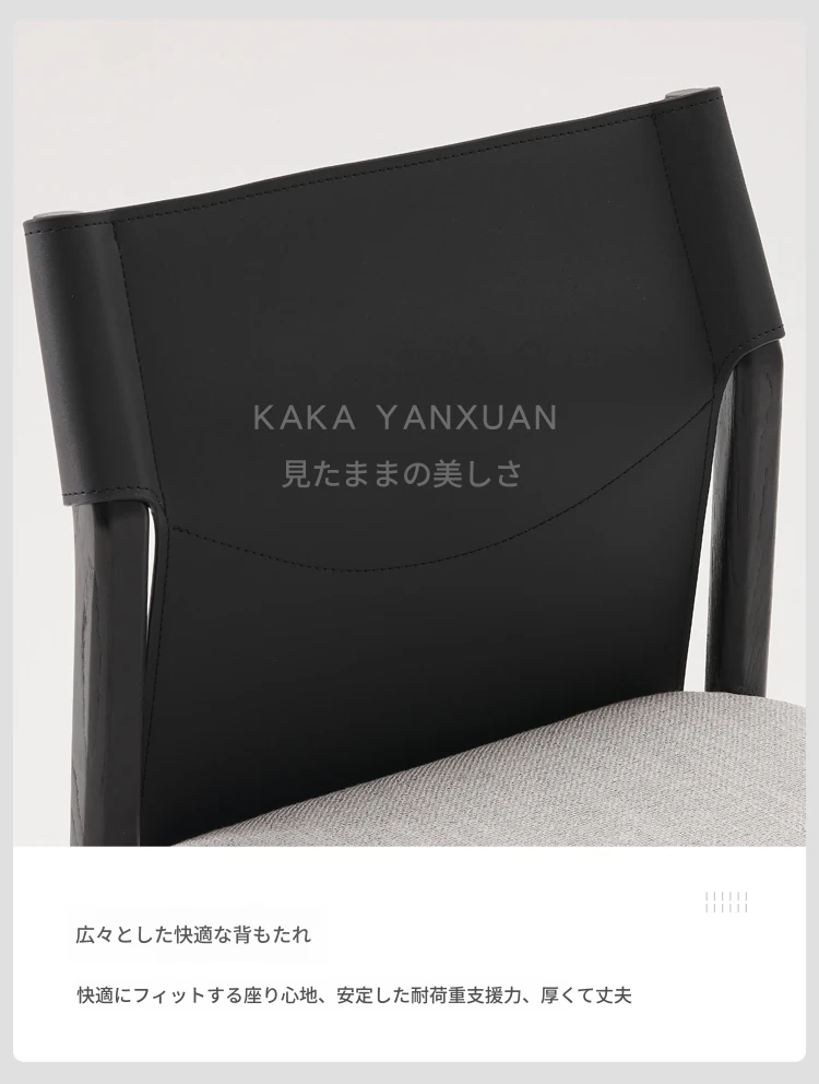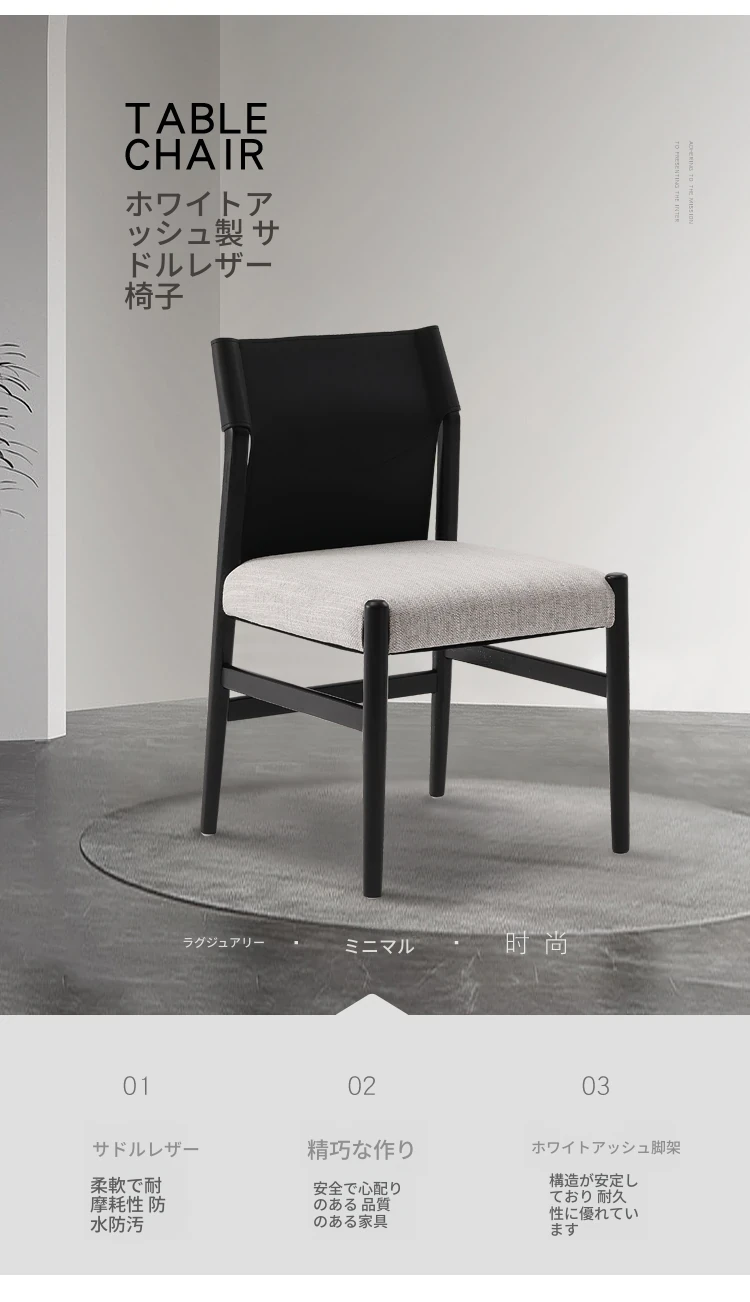 イタリアンハイエンド無垢材ダイニングチェア - 北欧ミニマリズムデザイン、上質なレストランにもぴったりなホワイトアッシュとサドルレザーの贅沢な椅子。