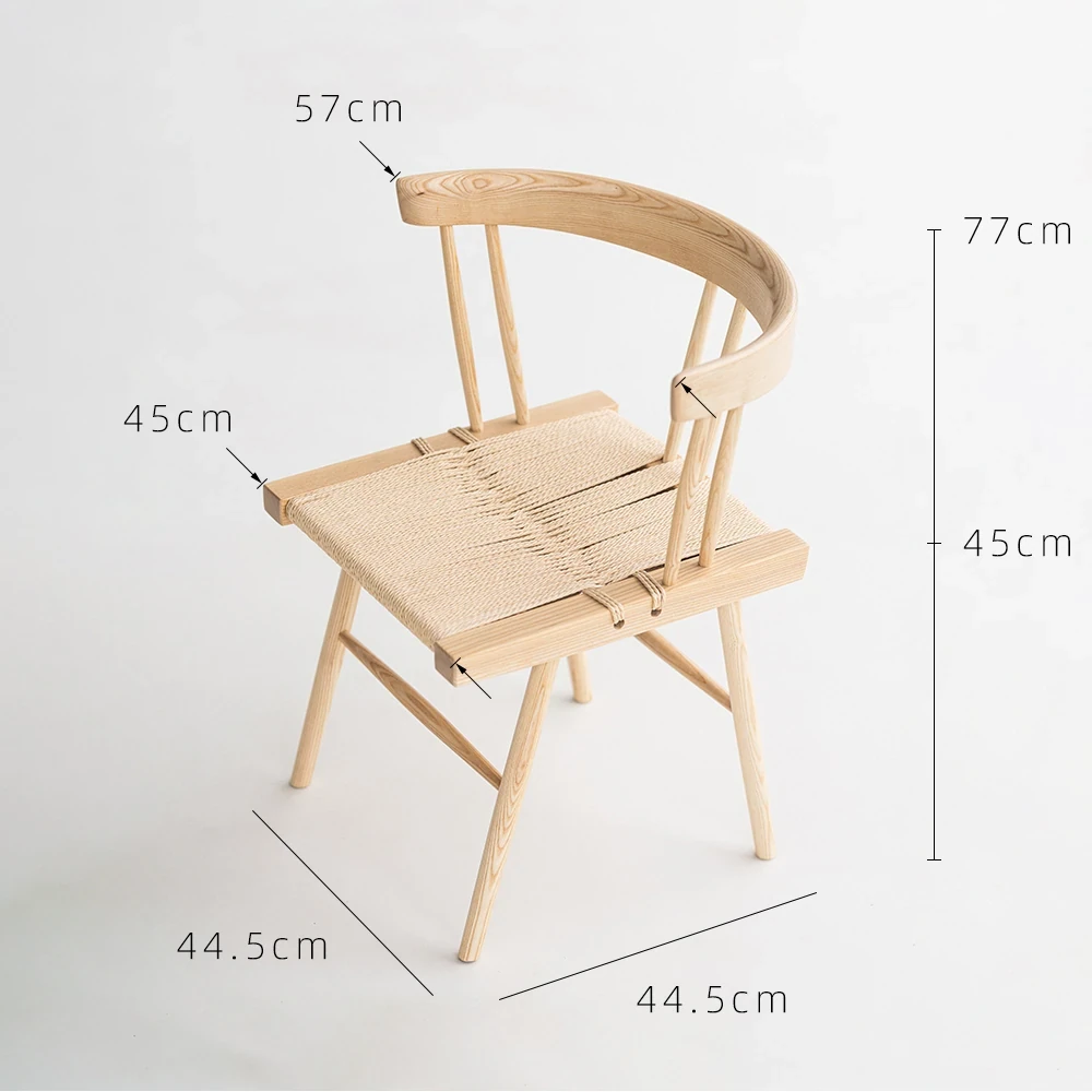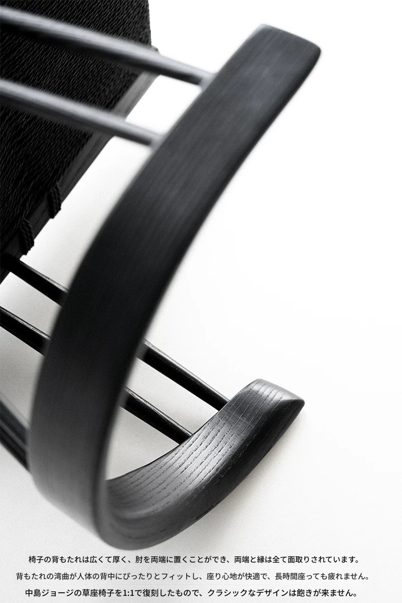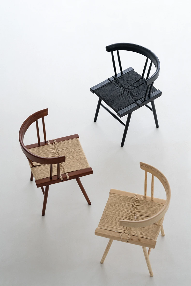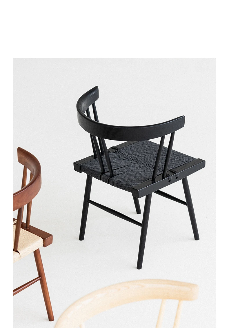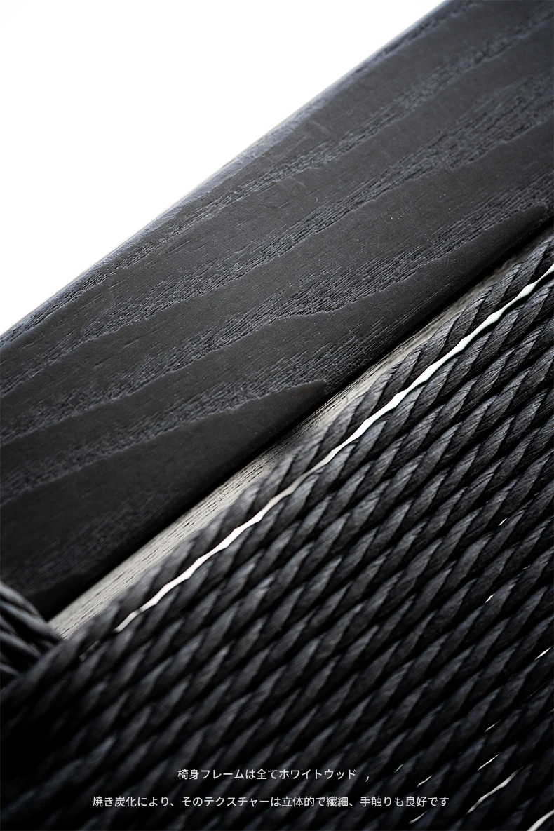 叁几 中島ジョージ 草座椅子 ホワイトアッシュ ブラックロープ編み 家庭用 ダイニングチェア 背もたれ付き 書斎椅子 わびさび風 ティーチェアで、心安らぐ空間を演出!