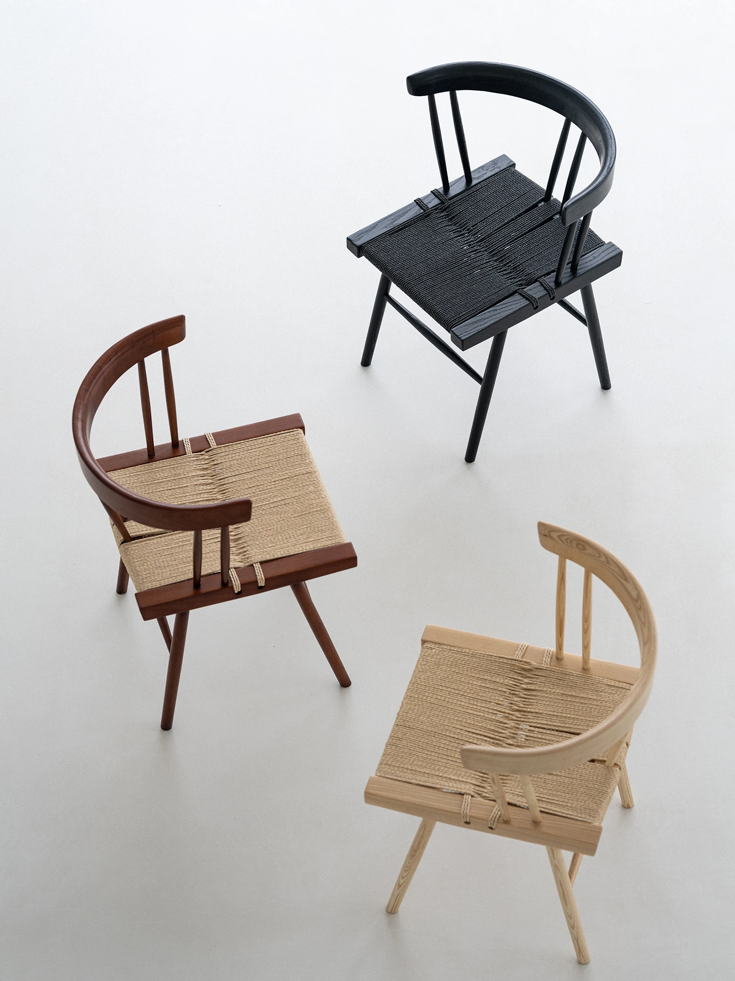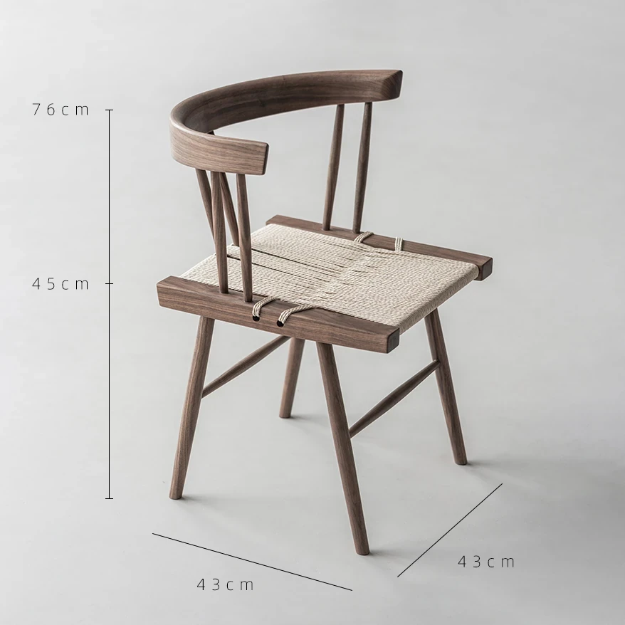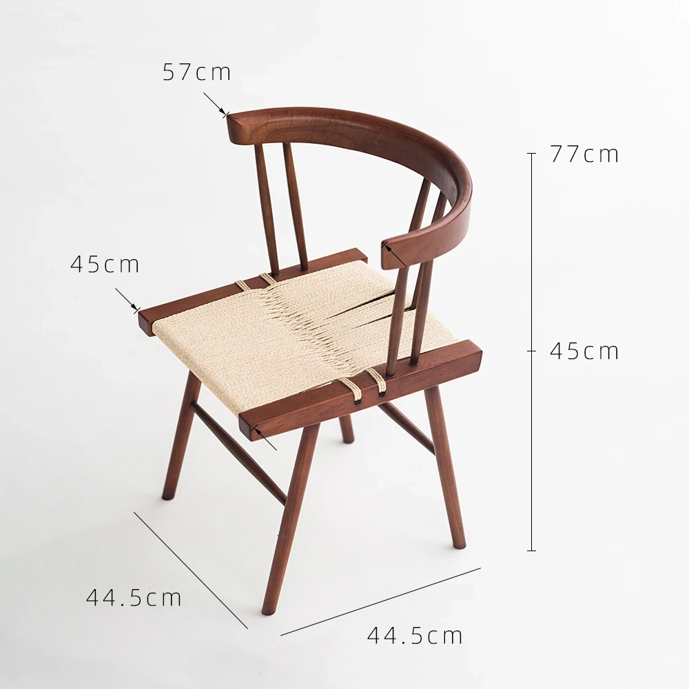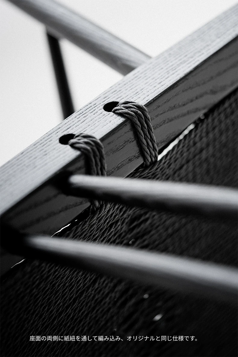 叁几 中島ジョージ 草座椅子 ホワイトアッシュ ブラックロープ編み 家庭用 ダイニングチェア 背もたれ付き 書斎椅子 わびさび風 ティーチェアで、心安らぐ空間を演出!