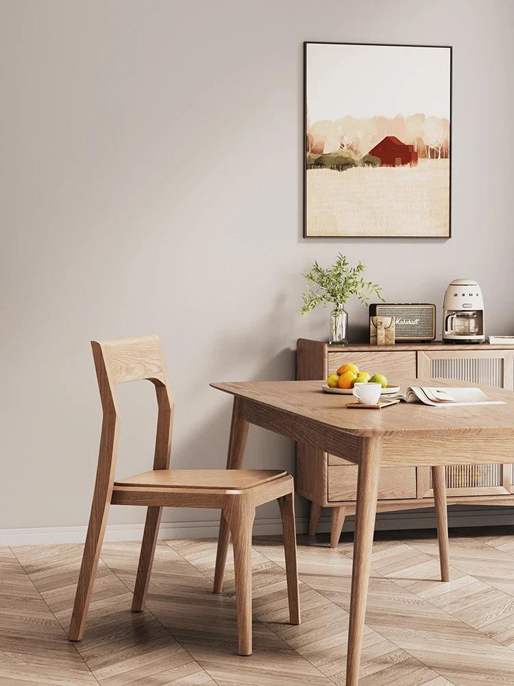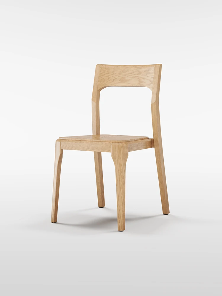 ナチュラルウッド色の椅子フレーム+無垢材の座面