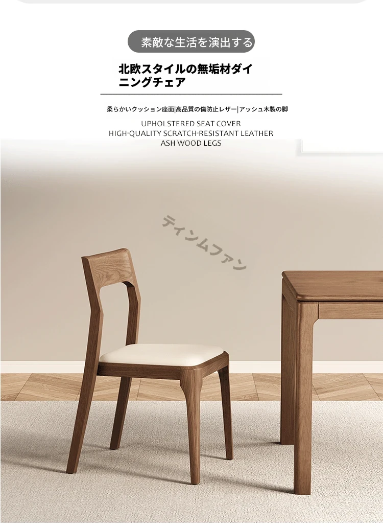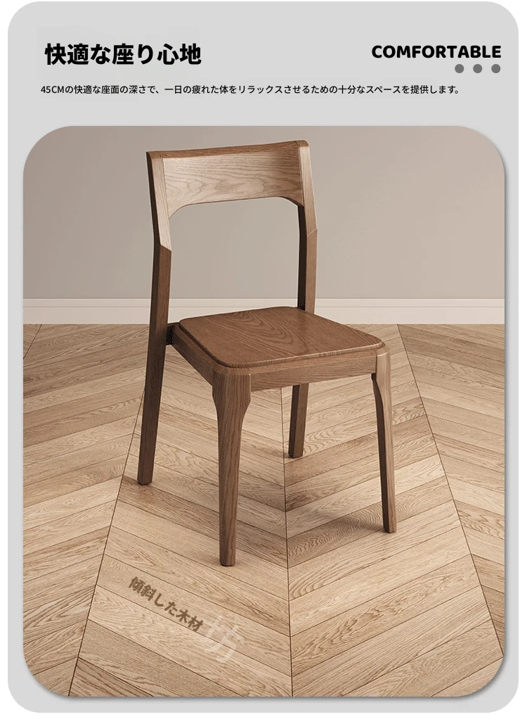 無垢材のダイニングチェア、ホワイトアッシュ&ダークウォールナット、スタッキング可能で省スペース!小さなリビングや書斎にもぴったりの快適な椅子。あなたの食卓に自然の温もりを。