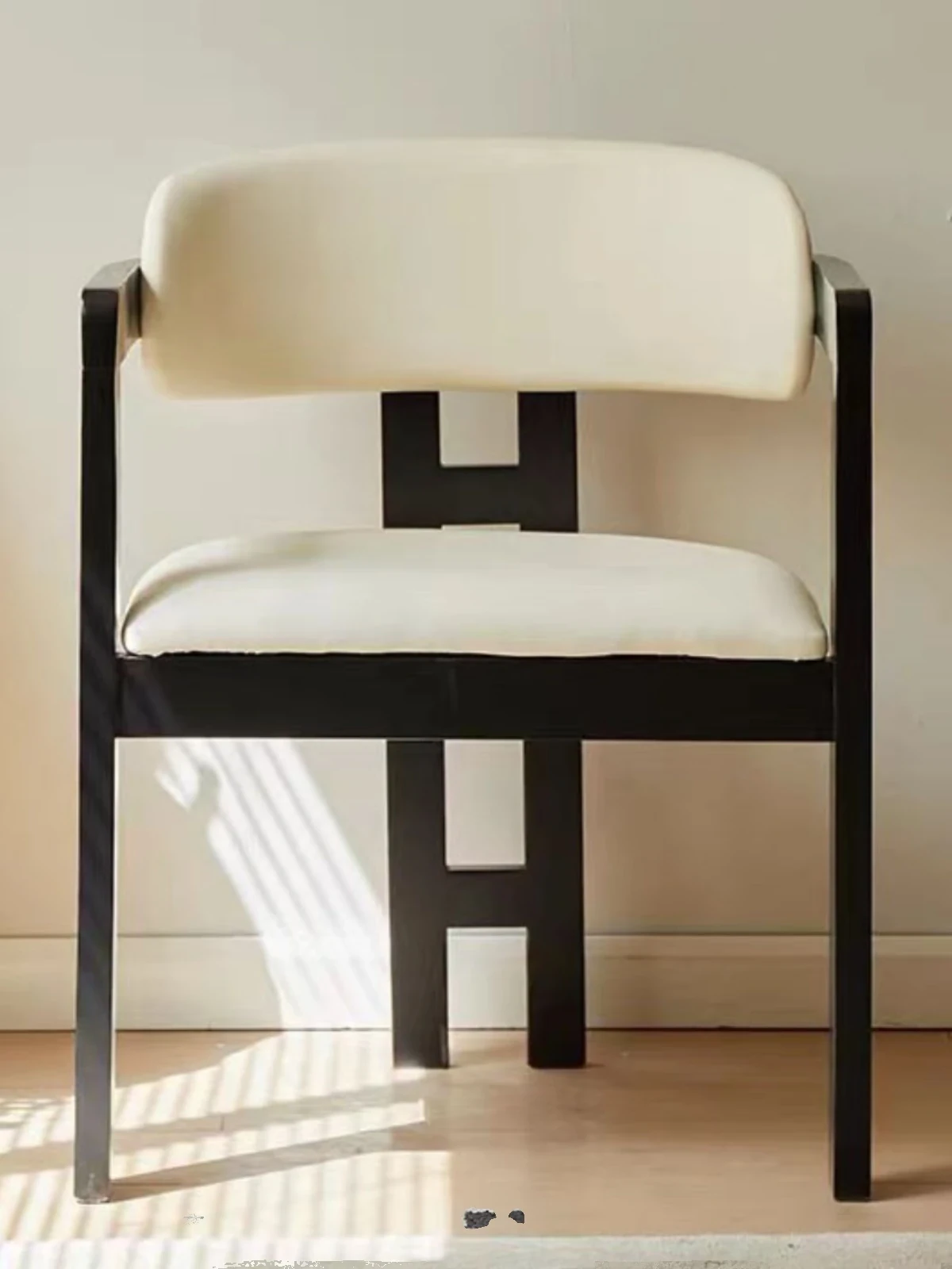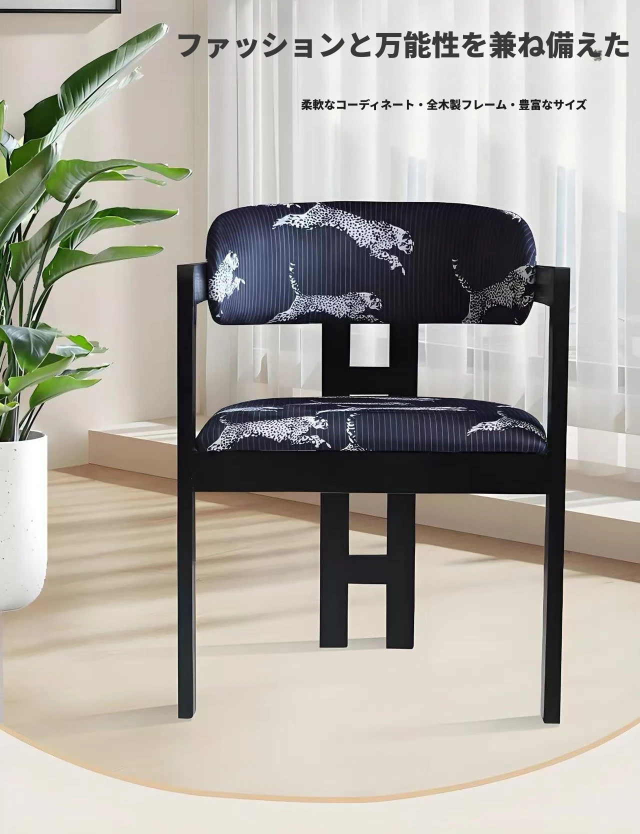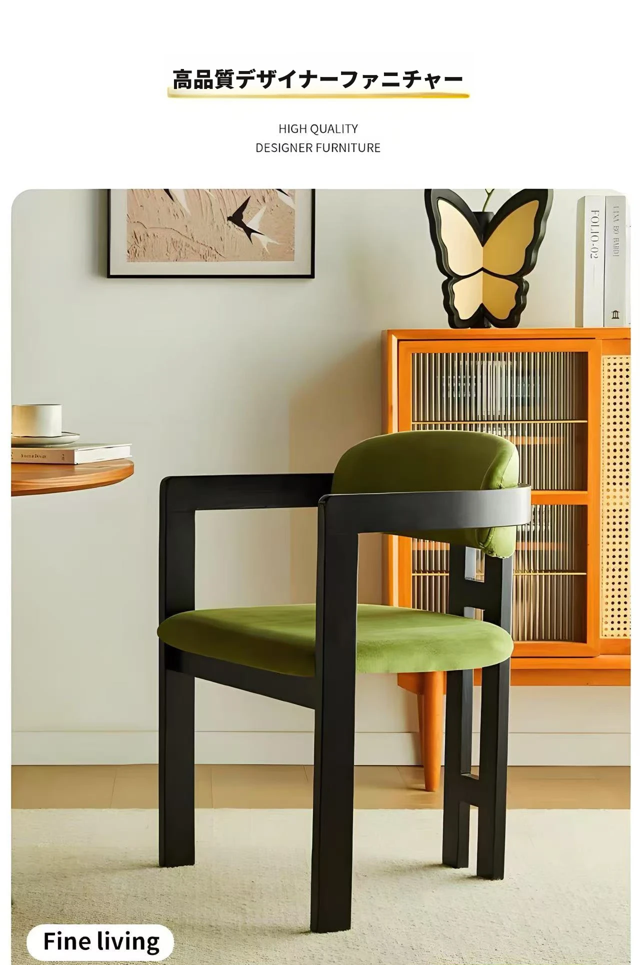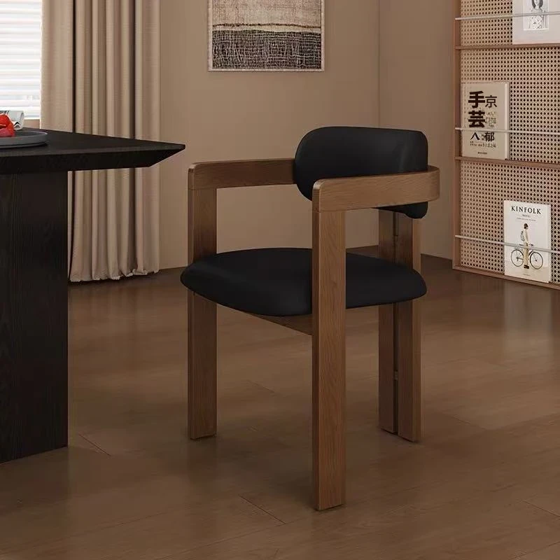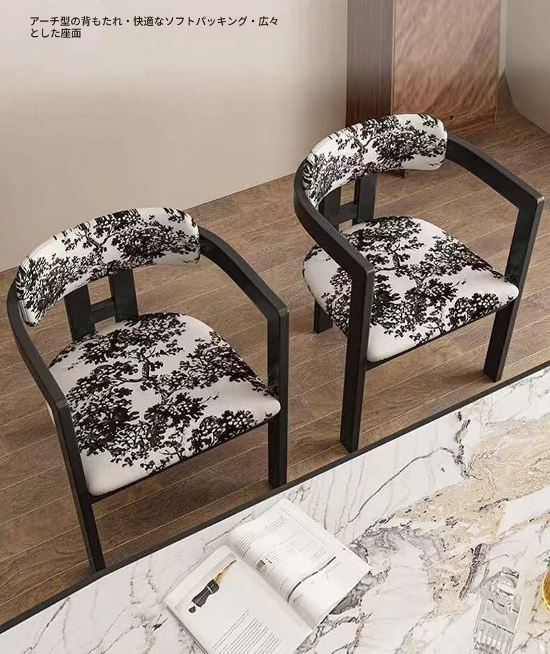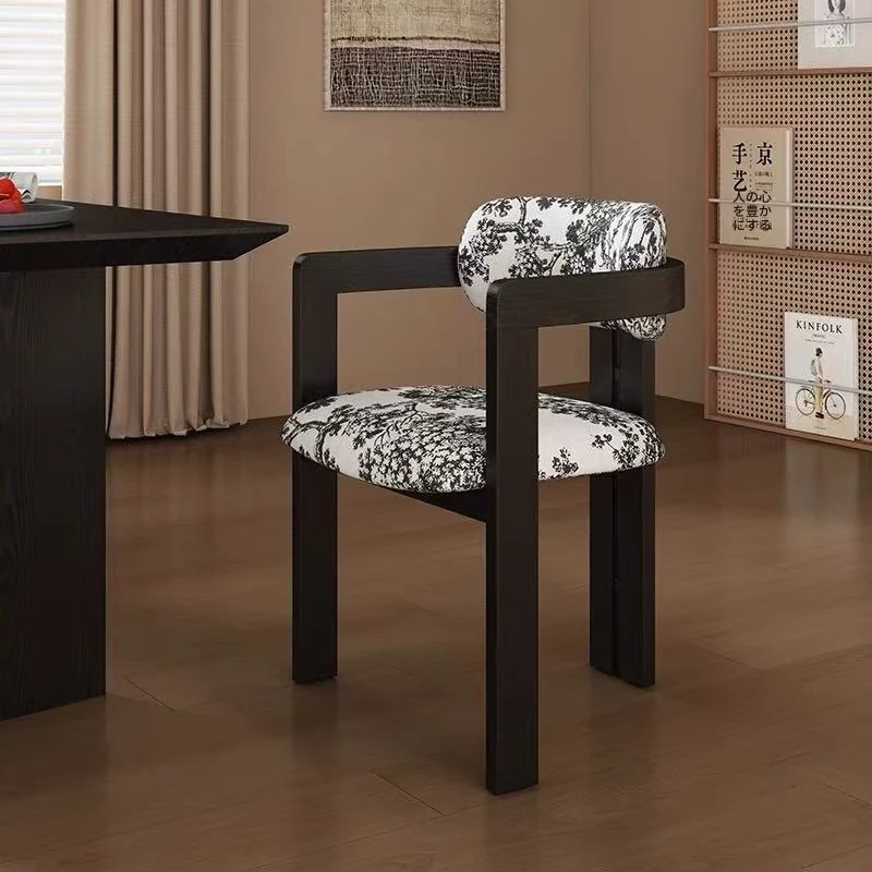 スタイリッシュなデザインのブラック無垢材ダイニングテーブル&チェアセット - ヴィンテージ感あふれるクリエイティブな背もたれ椅子、家庭やホテルにぴったりの軽奢スタイル!
