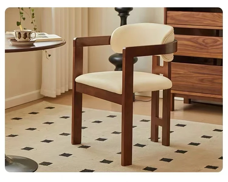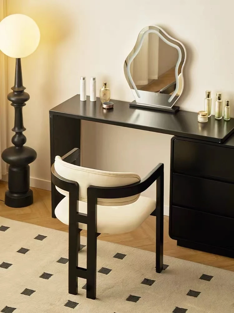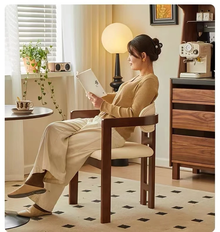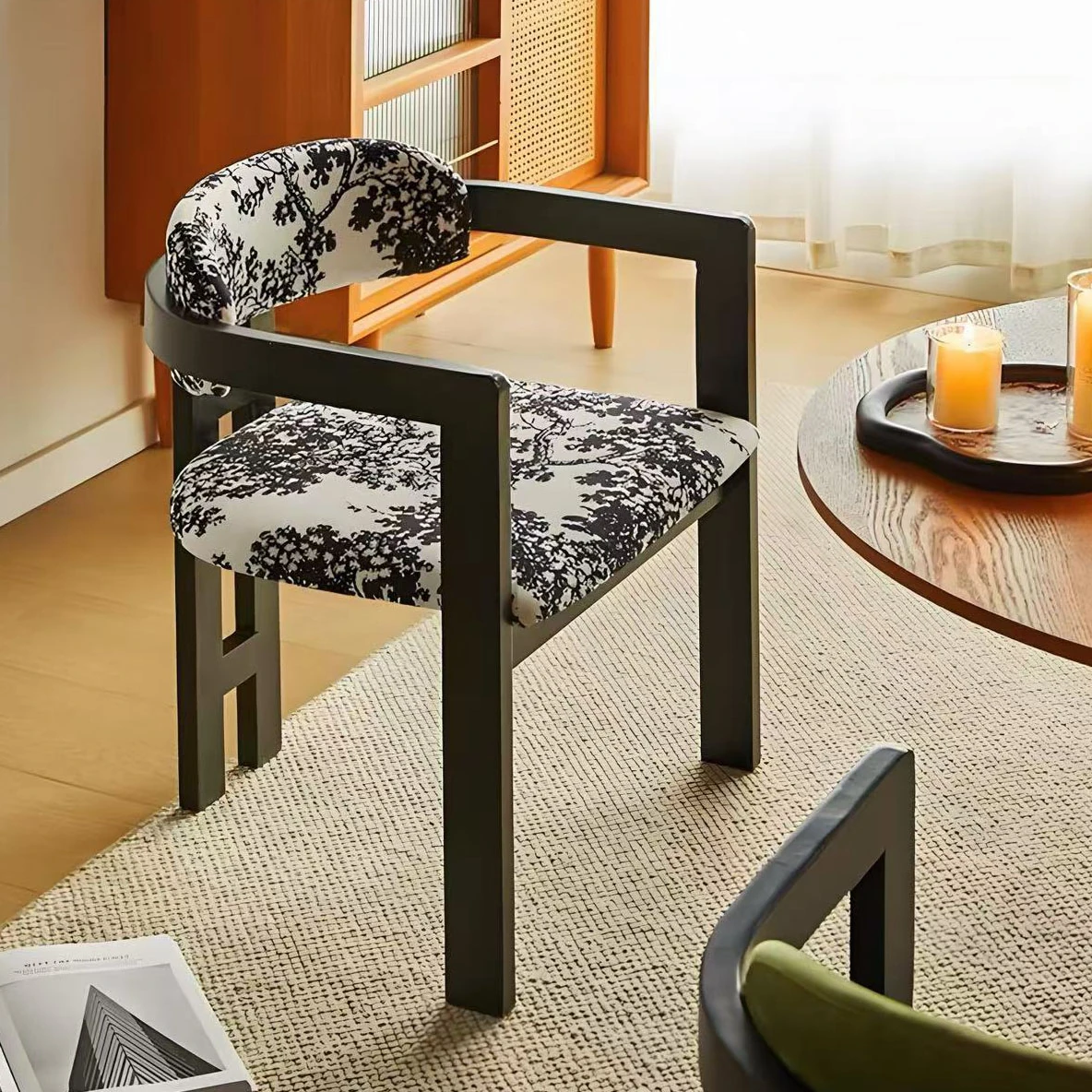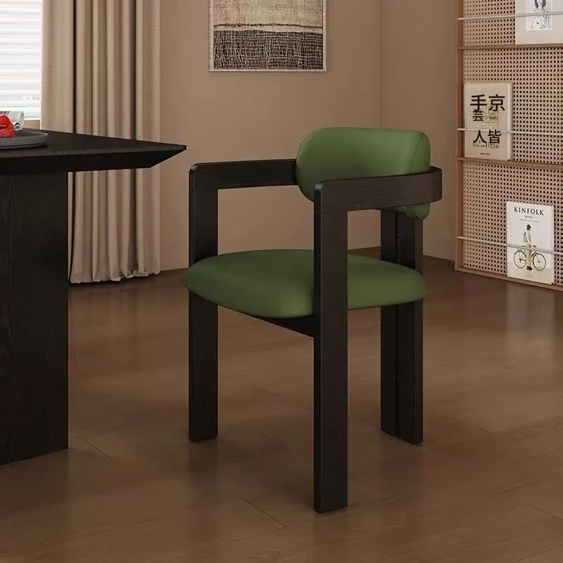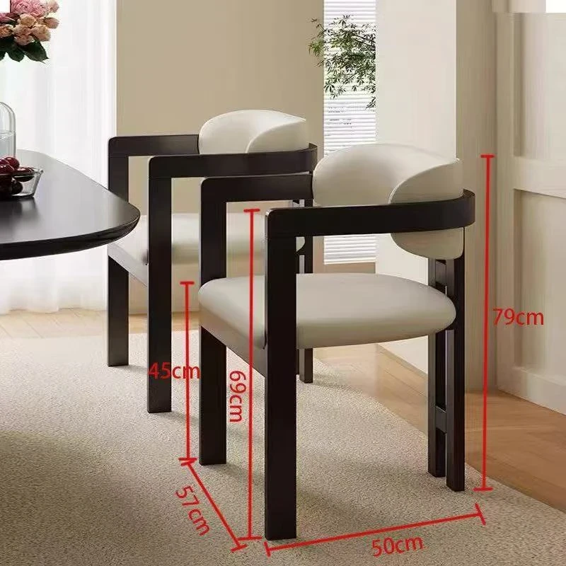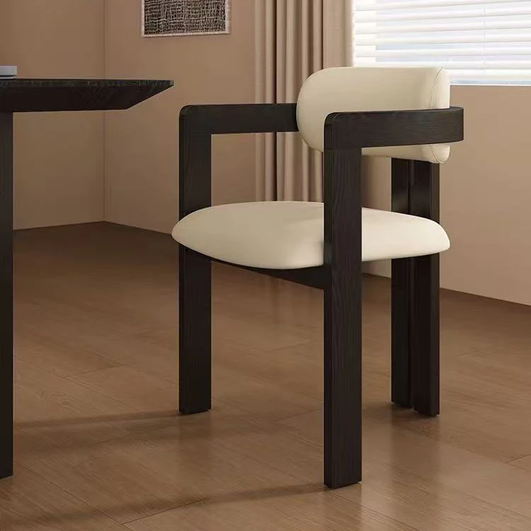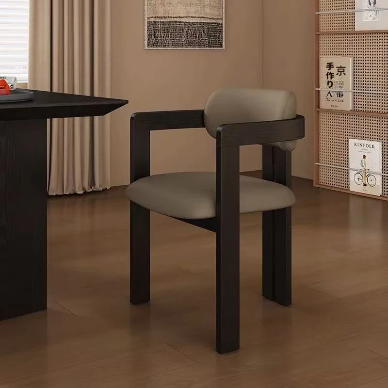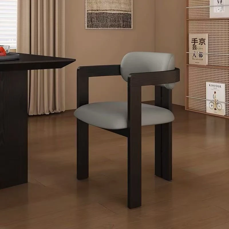 スタイリッシュなデザインのブラック無垢材ダイニングテーブル&チェアセット - ヴィンテージ感あふれるクリエイティブな背もたれ椅子、家庭やホテルにぴったりの軽奢スタイル!