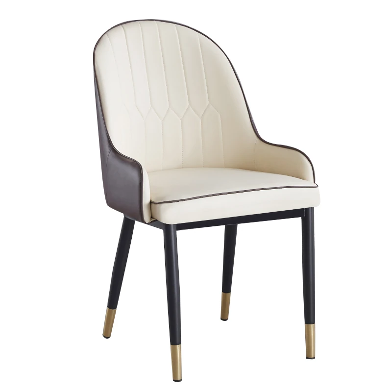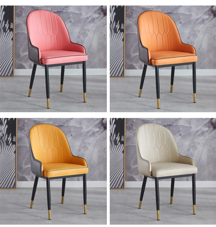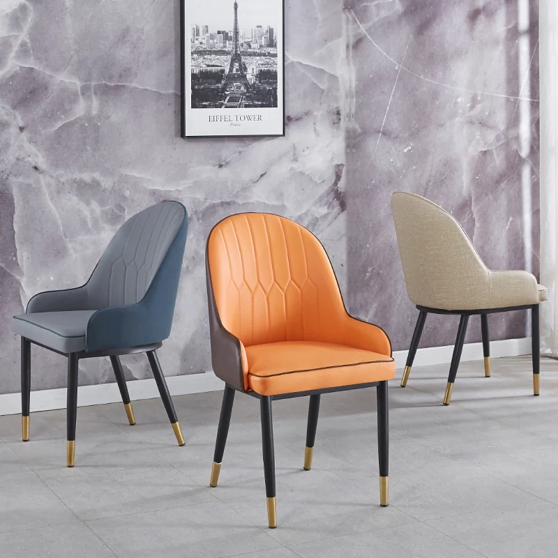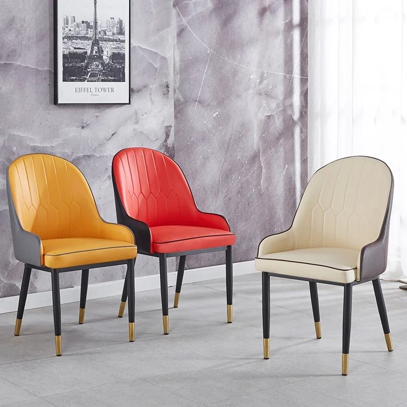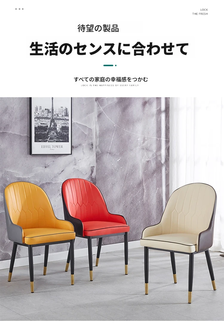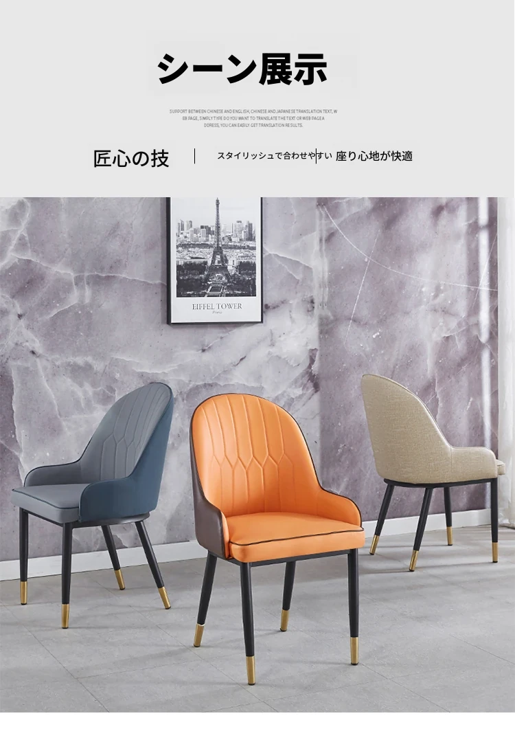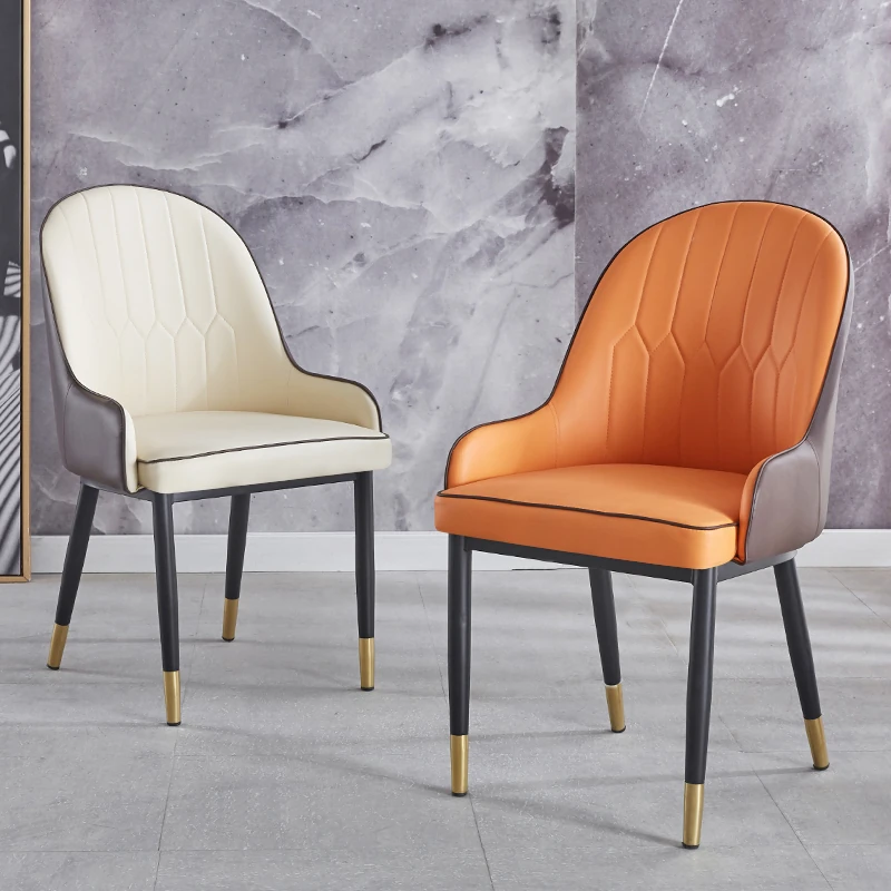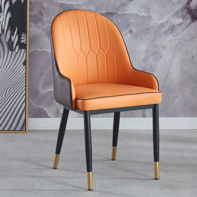 北欧風のラグジュアリーなレストランチェア - ソフトレザーとアイアンを使用した高級リラックスバックチェア、ホテルや個室に最適なデザイン!おしゃれな空間を演出し、特別なひとときを提供します。