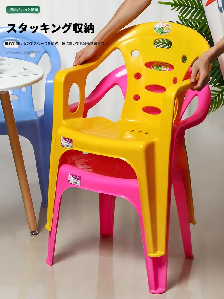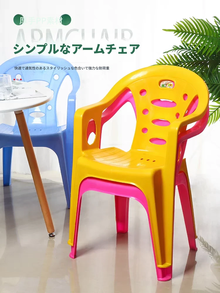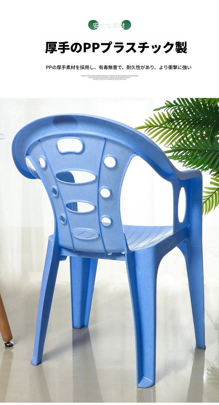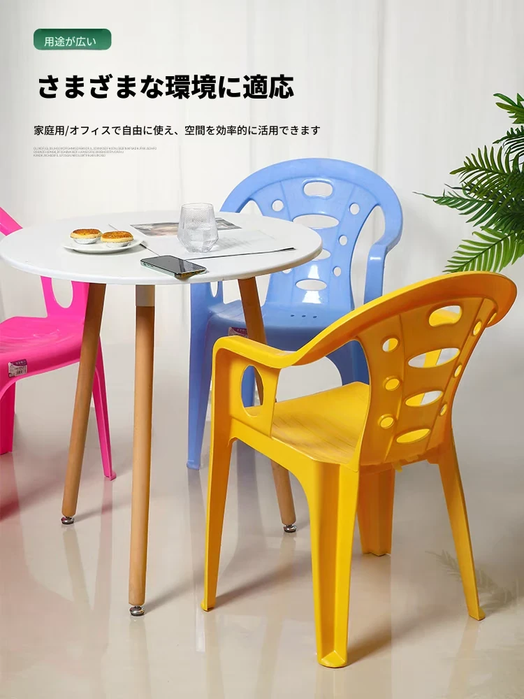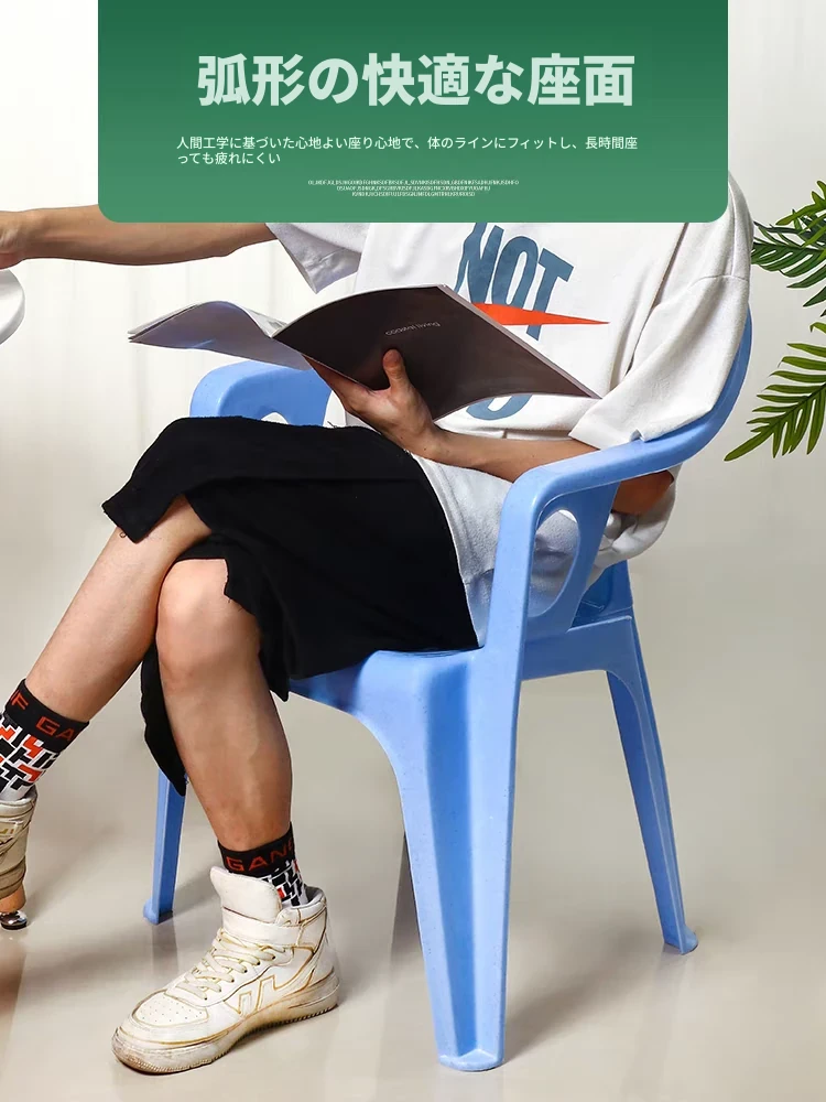 厚手のプラスチック製背もたれ付きアームチェア - 大人向け家庭用ダイニングチェア、レストランや屋台に最適!ビーチにもぴったりな滑り止め加工された耐久性のあるゴム製椅子。快適さとスタイルを兼ね備えた一品!
