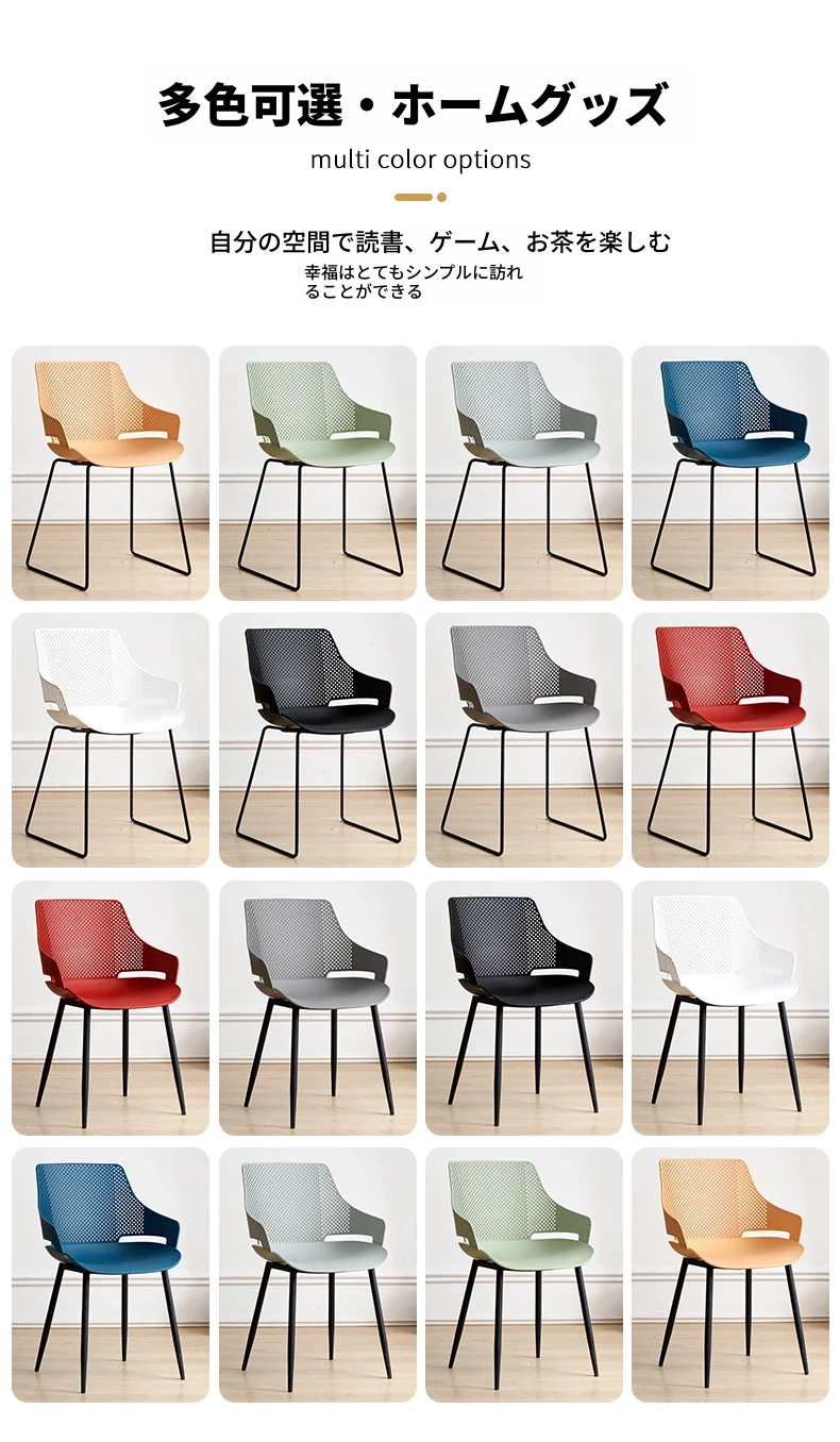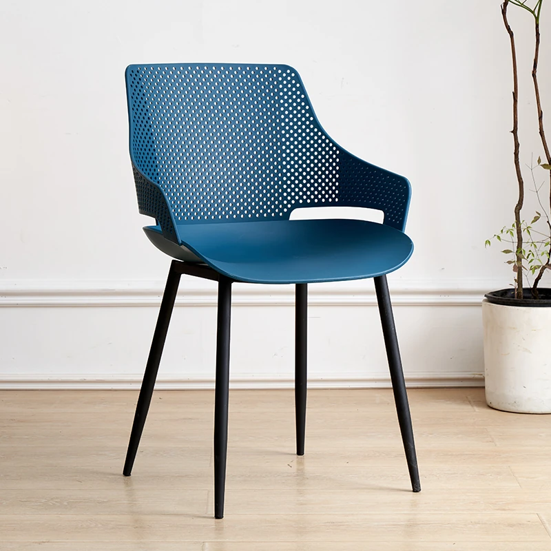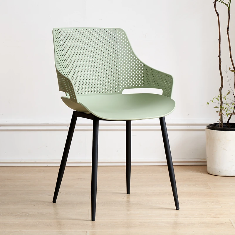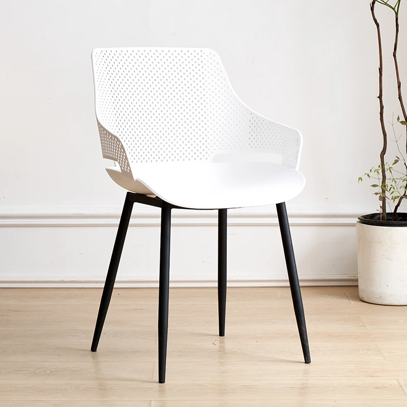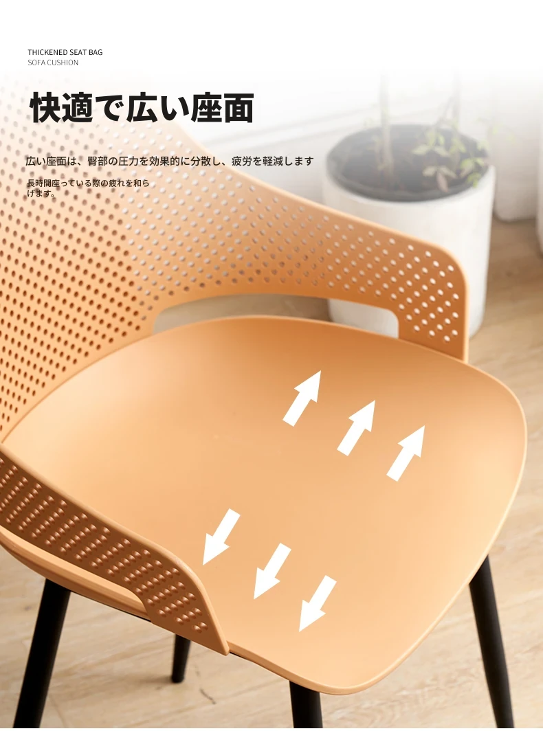 厚手のプラスチック製椅子|家庭用アイアンフレーム|快適な背もたれ付きダイニングチェア|寝室用ドレッサーチェア|おしゃれなロースタイル・カジュアルチェア|穴あきデザインで通気性抜群!