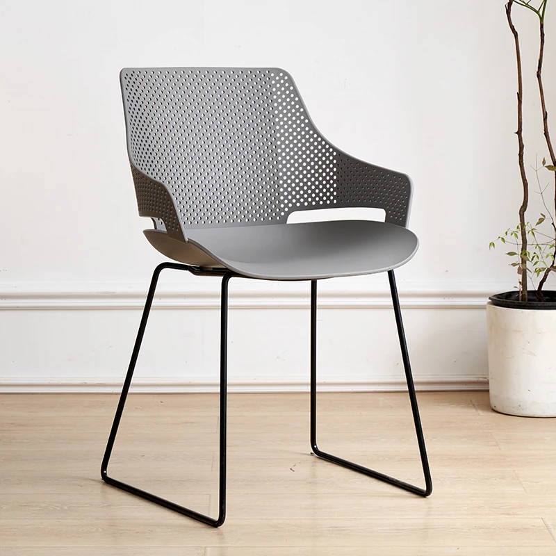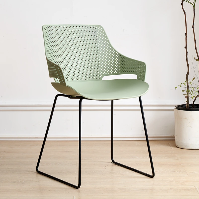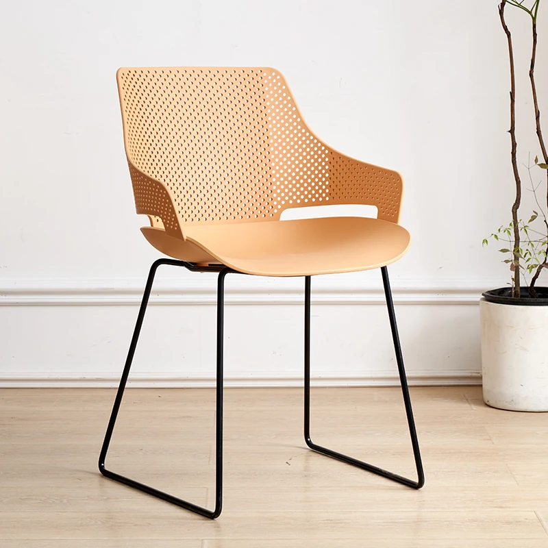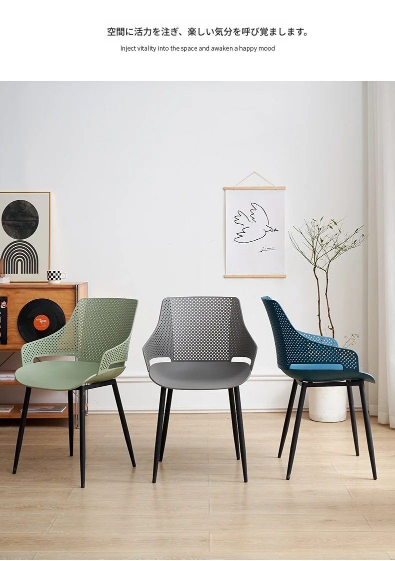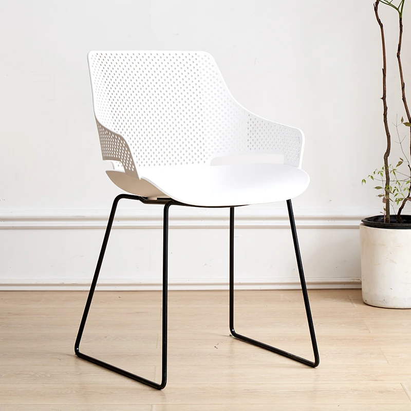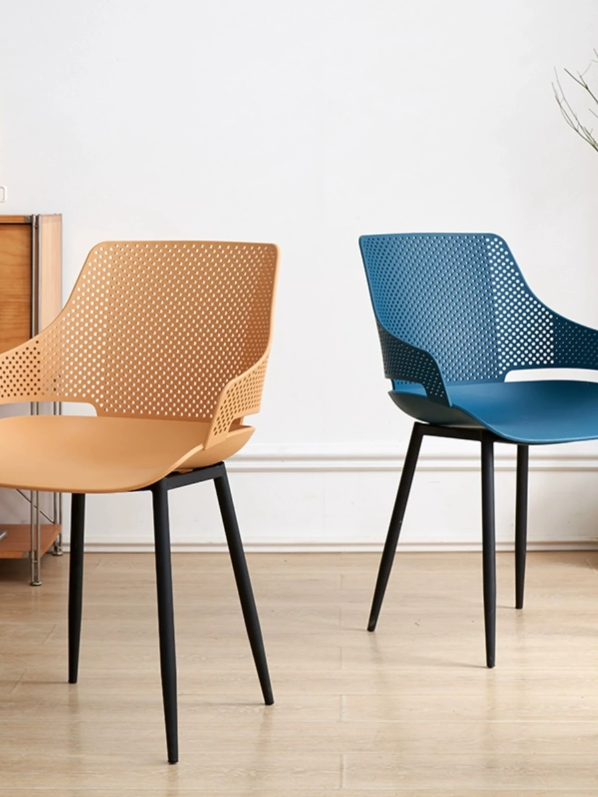 厚手のプラスチック製椅子|家庭用アイアンフレーム|快適な背もたれ付きダイニングチェア|寝室用ドレッサーチェア|おしゃれなロースタイル・カジュアルチェア|穴あきデザインで通気性抜群!