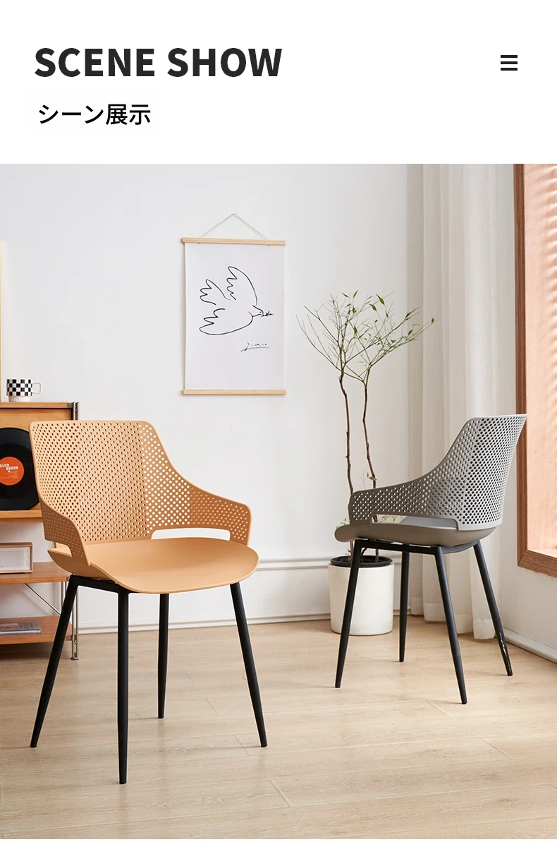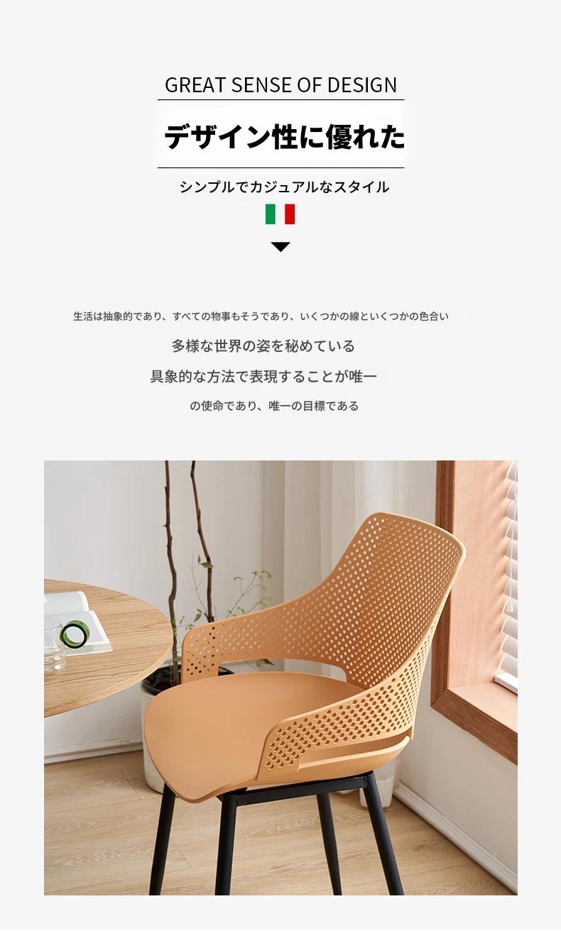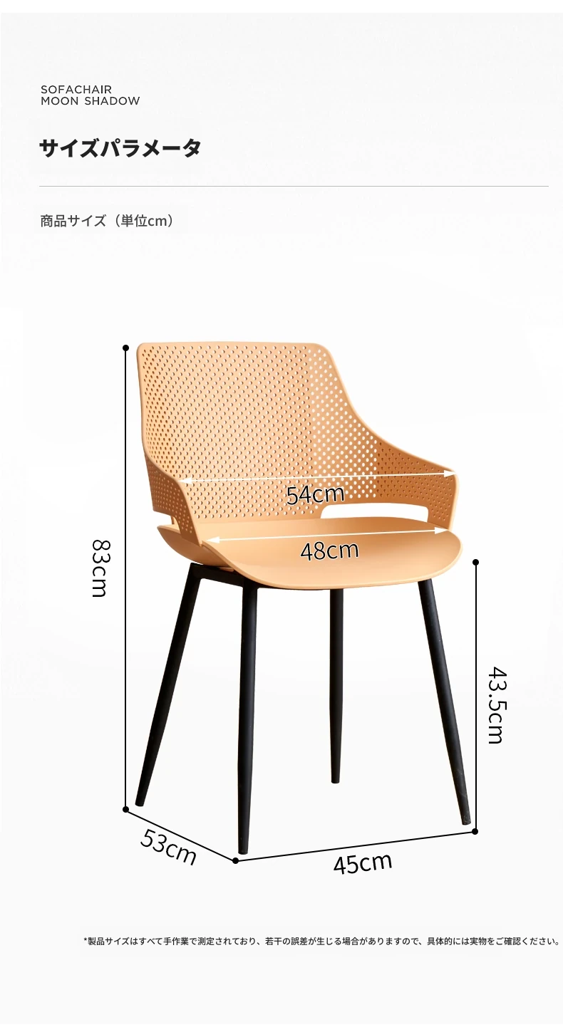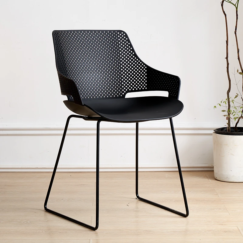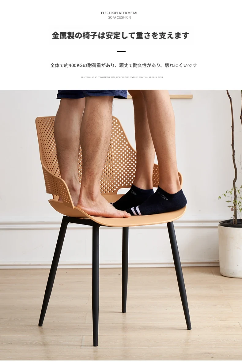 厚手のプラスチック製椅子|家庭用アイアンフレーム|快適な背もたれ付きダイニングチェア|寝室用ドレッサーチェア|おしゃれなロースタイル・カジュアルチェア|穴あきデザインで通気性抜群!