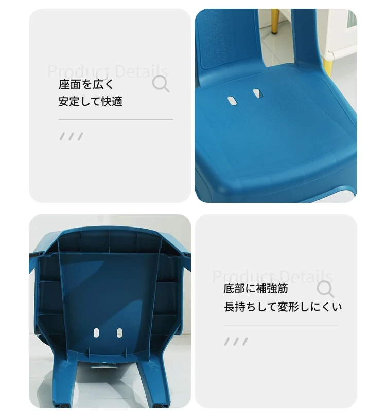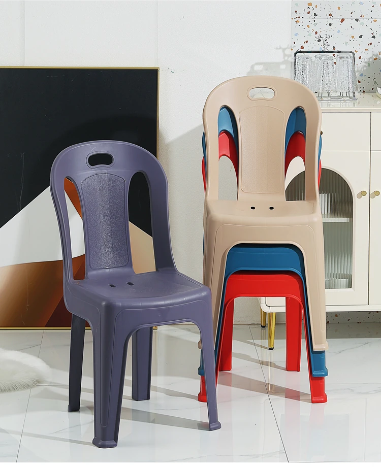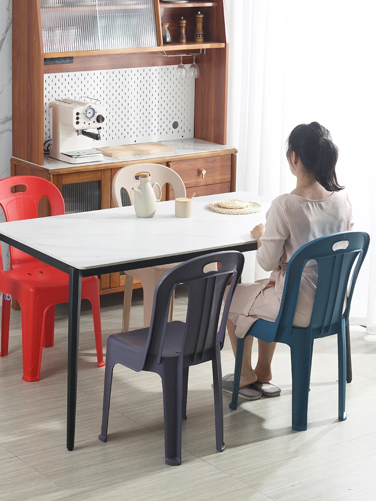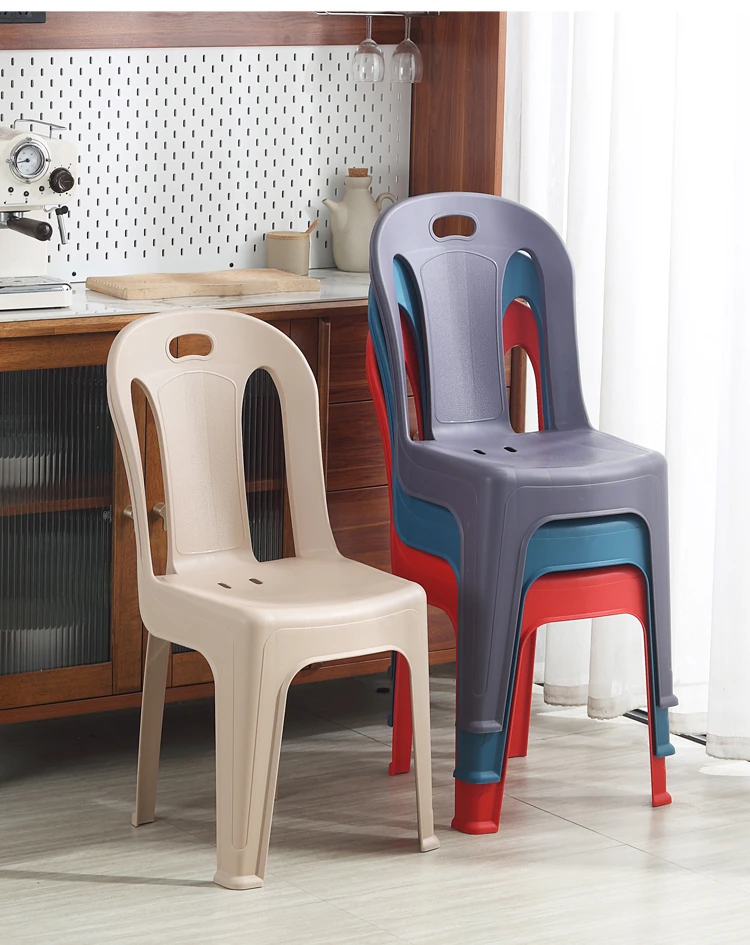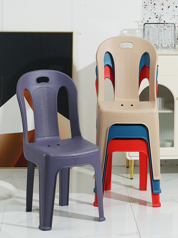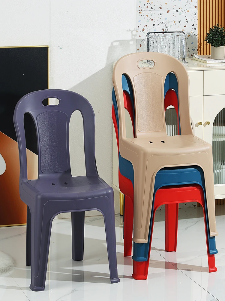 家庭用プラスチック製背もたれ椅子|リビングやカフェに最適!夜市や屋台にもぴったり。大人も子供も使えるデザインで、積み重ね可能な学習椅子としても活躍!