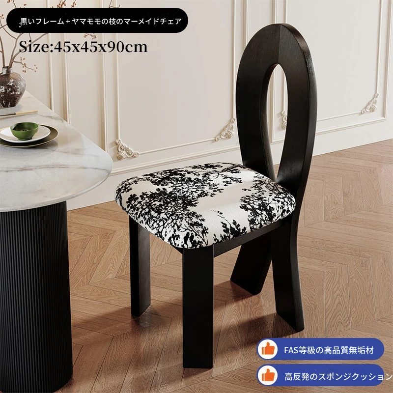 【優雅で神秘的な人魚】黒いヤマモモの枝模様のクッション