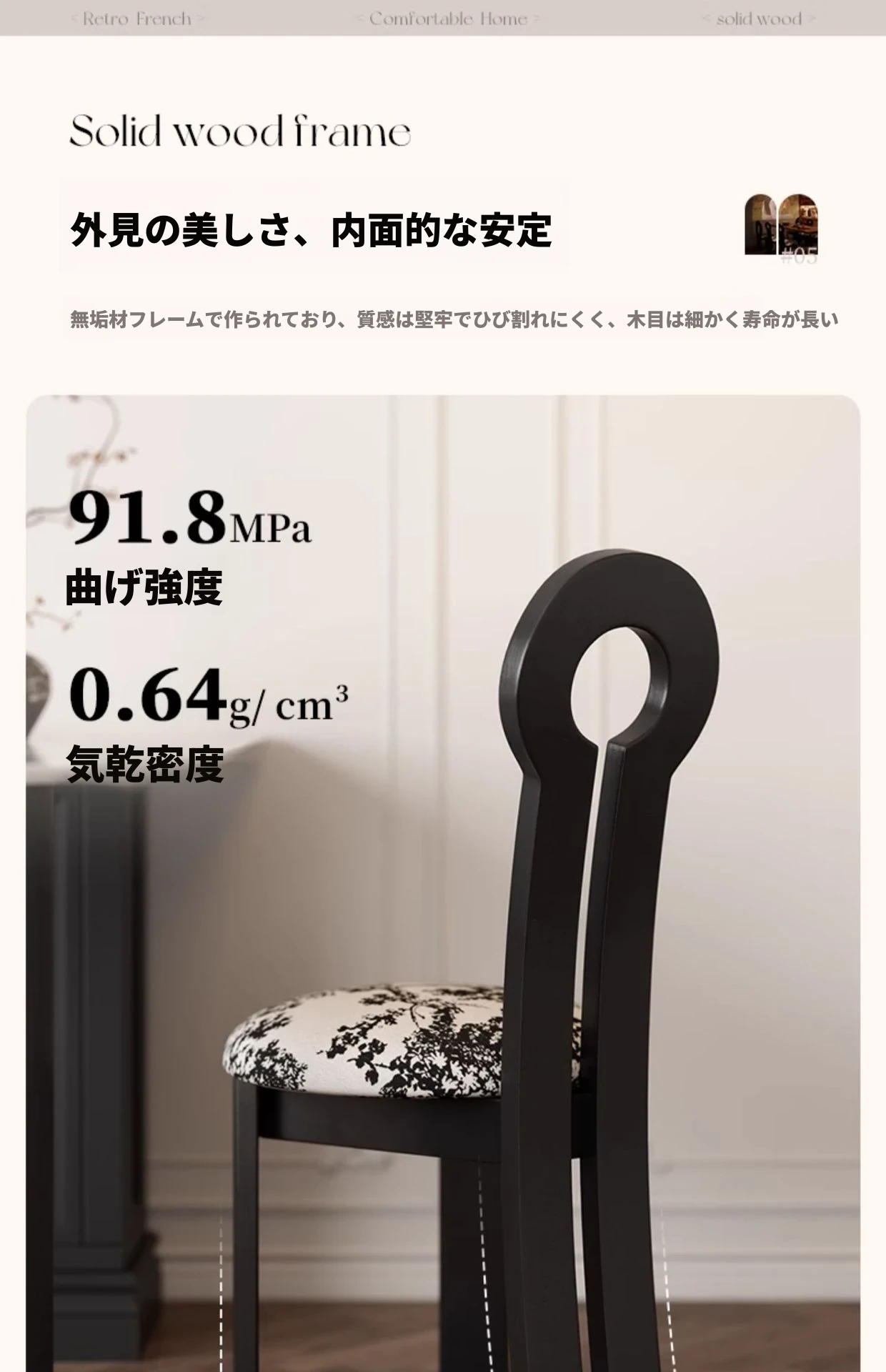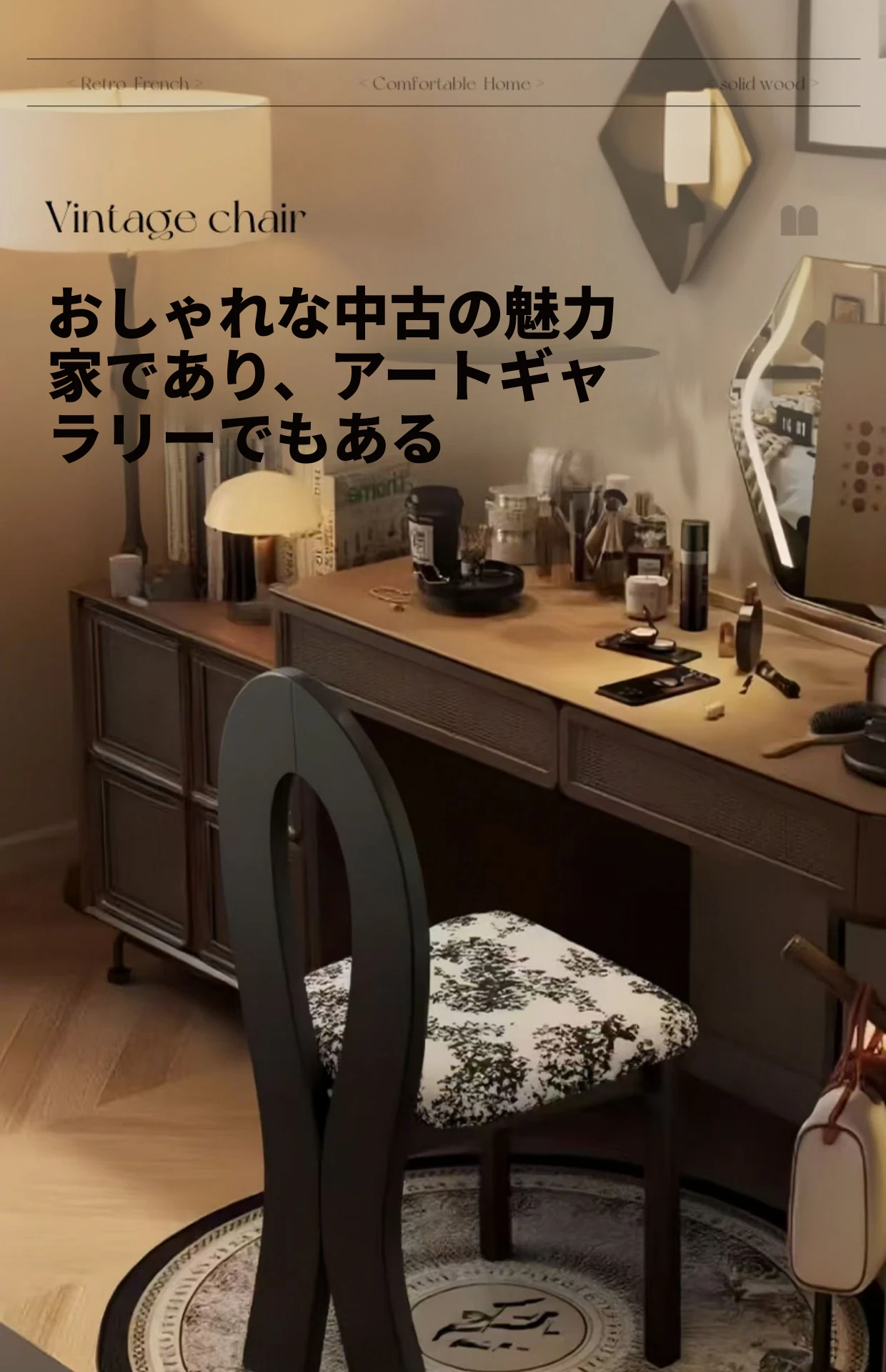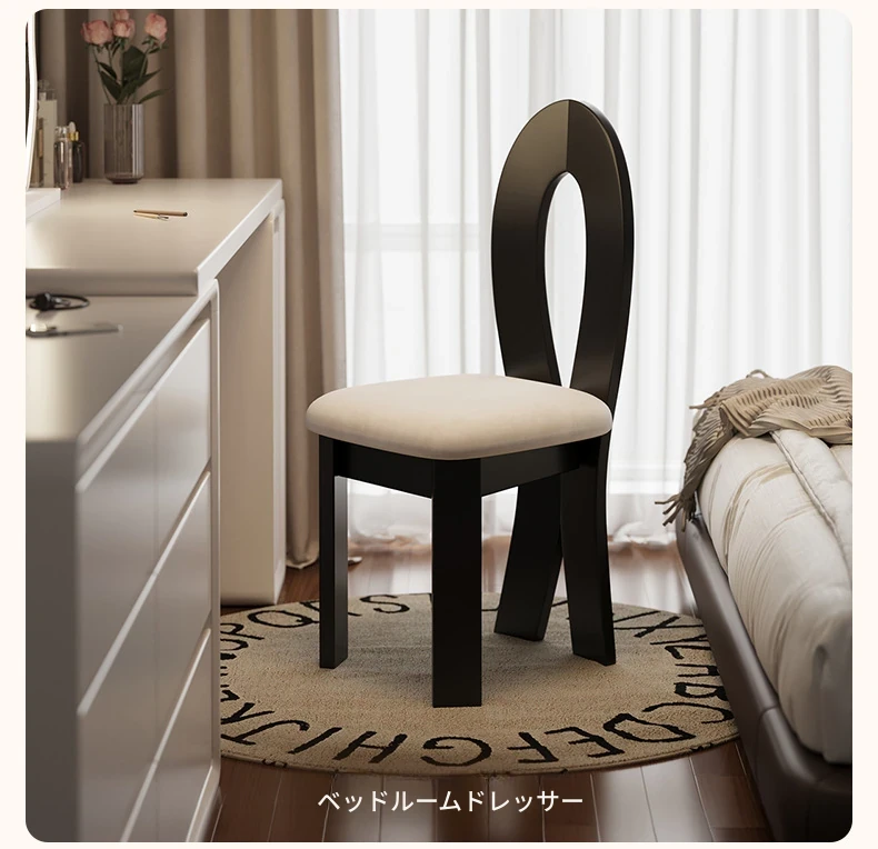 アンティーク風の寝室用ドレッサー椅子!フレンチビンテージスタイルのダイニングチェアと実木製の化粧台用スツール。おしゃれで機能的、あなたのインテリアにぴったりなアイテムです!