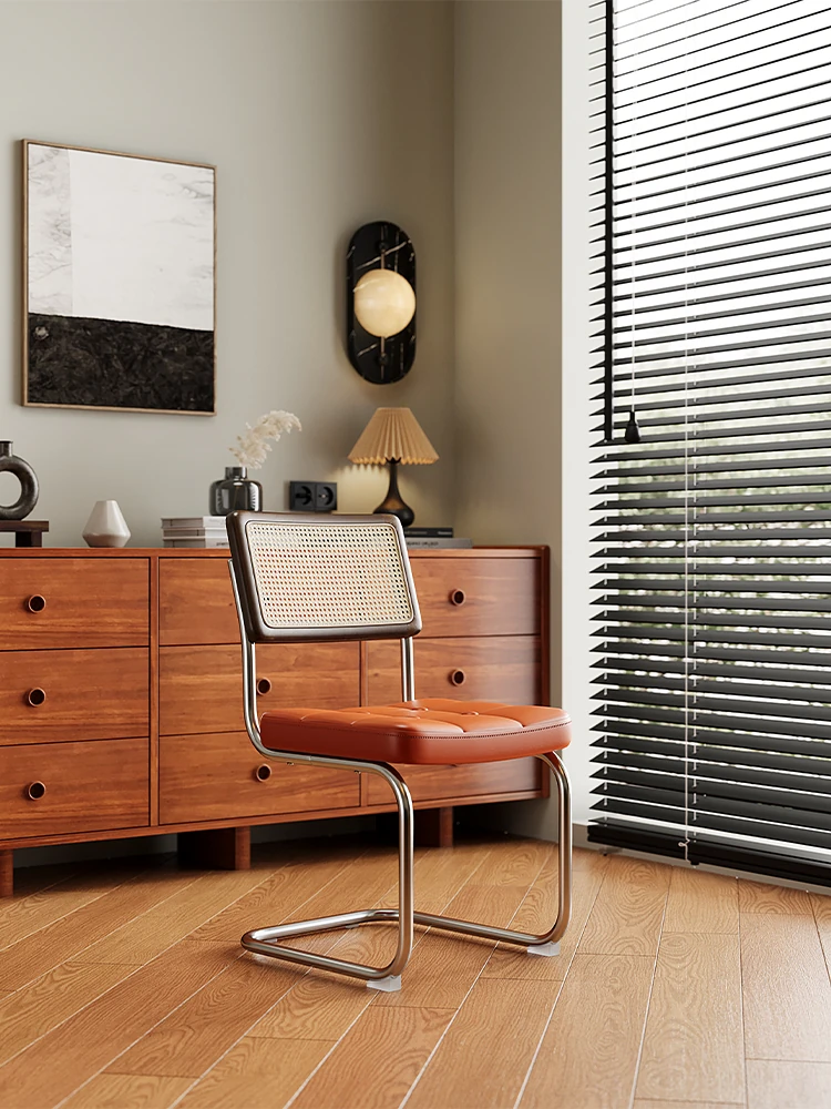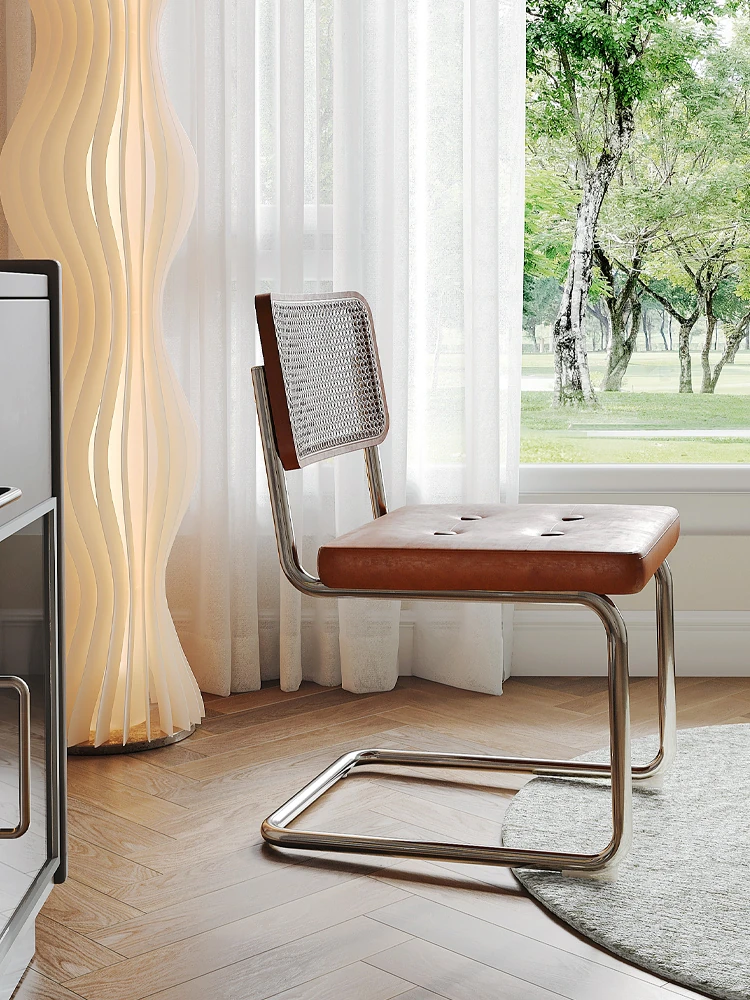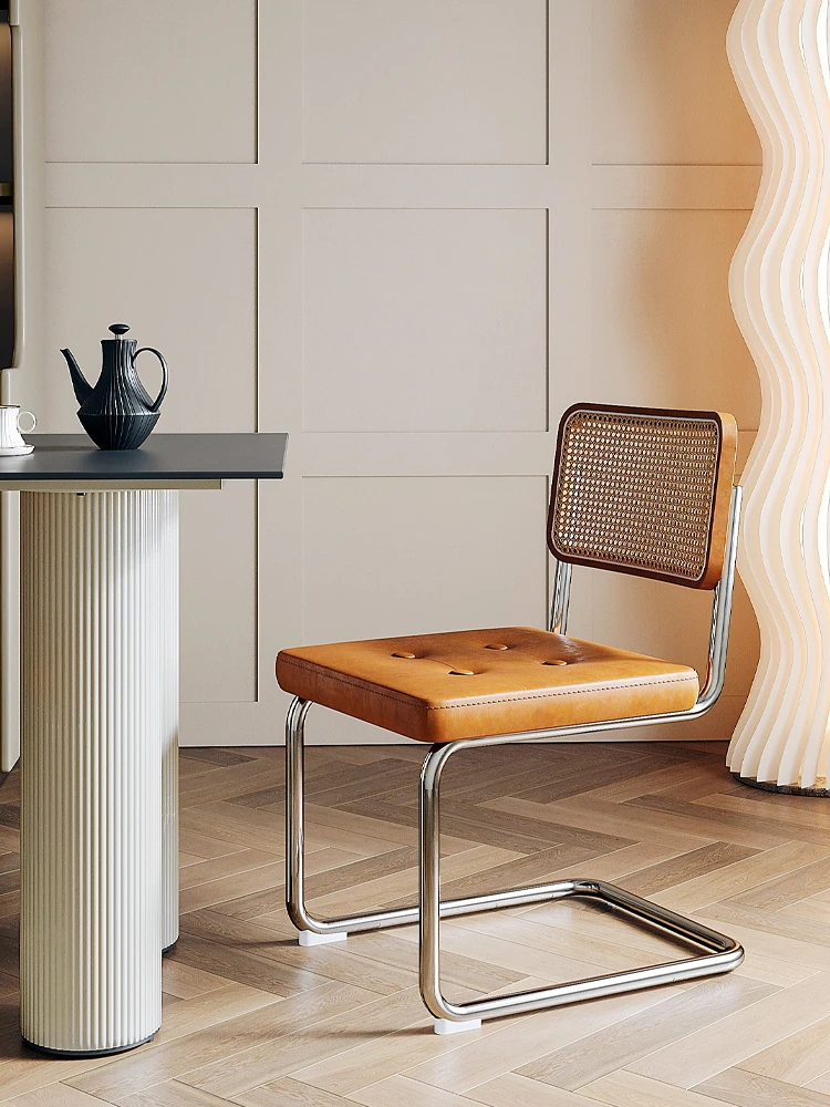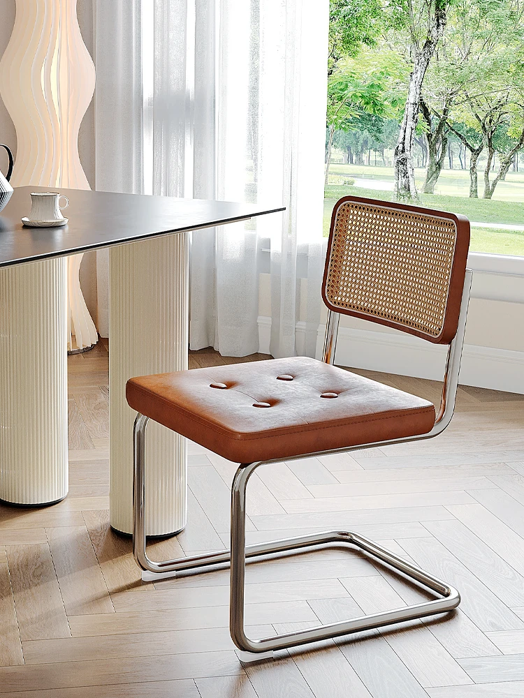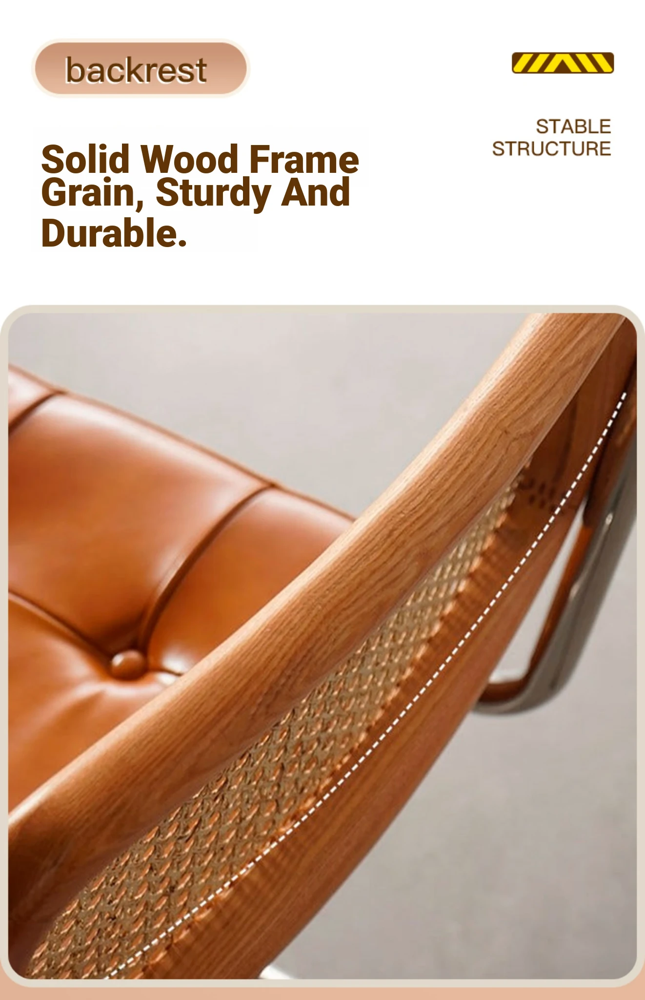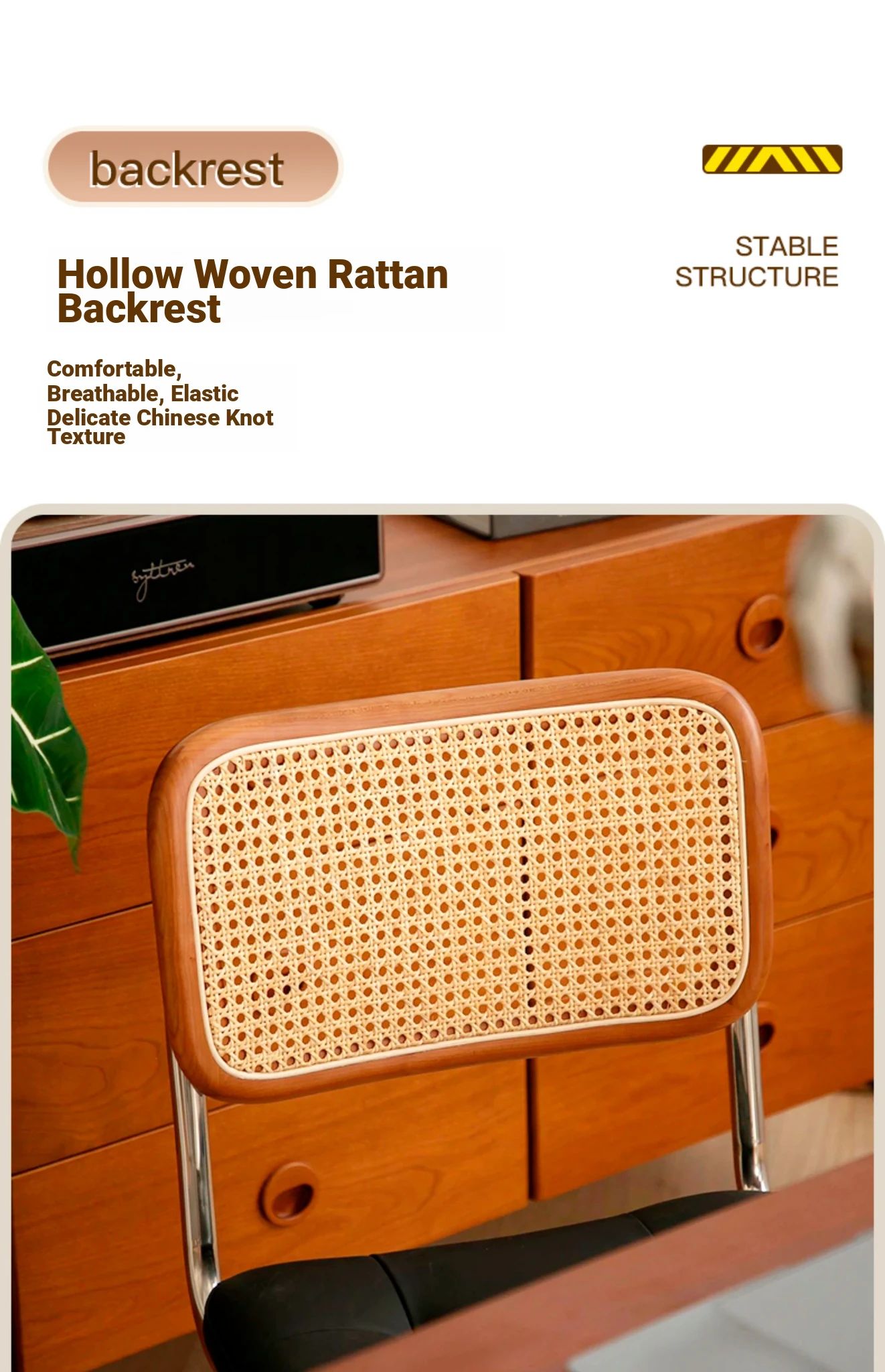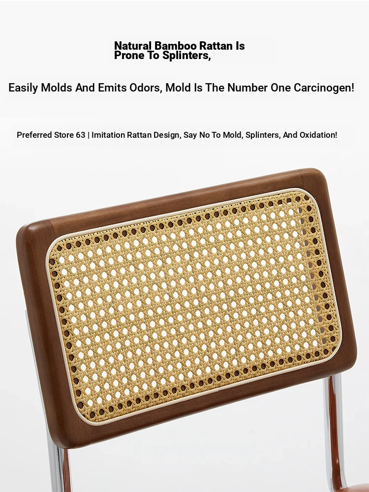 Vintage French-Style Rattan Dining Chair - Solid Wood Retro Dining Table Set with Backrest, Perfect for Home, Balcony, and Leisure Use - Trendy and Stylish!