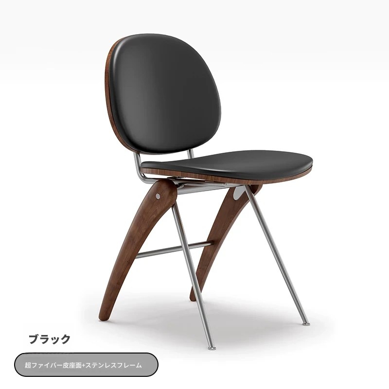 ブラック超ファイバー皮革-カーボンスチール+ホワイトアッシュレッグ