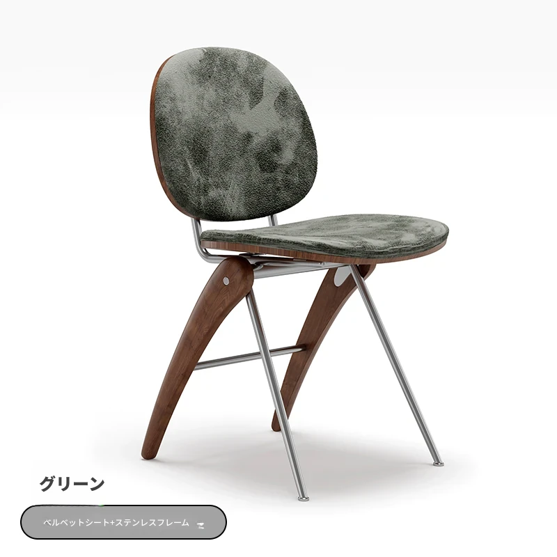グリーンクッション-カーボンスチール+ホワイトアッシュレッグ