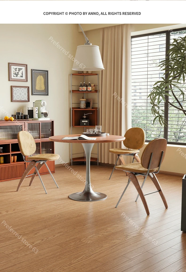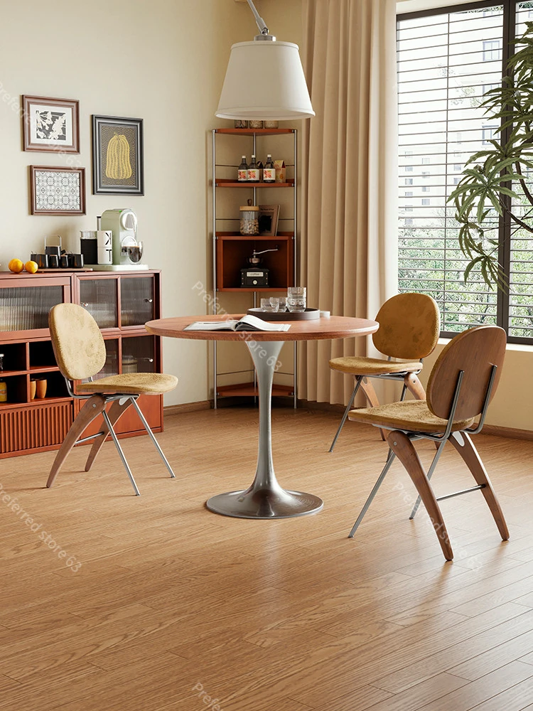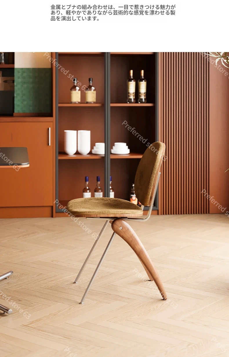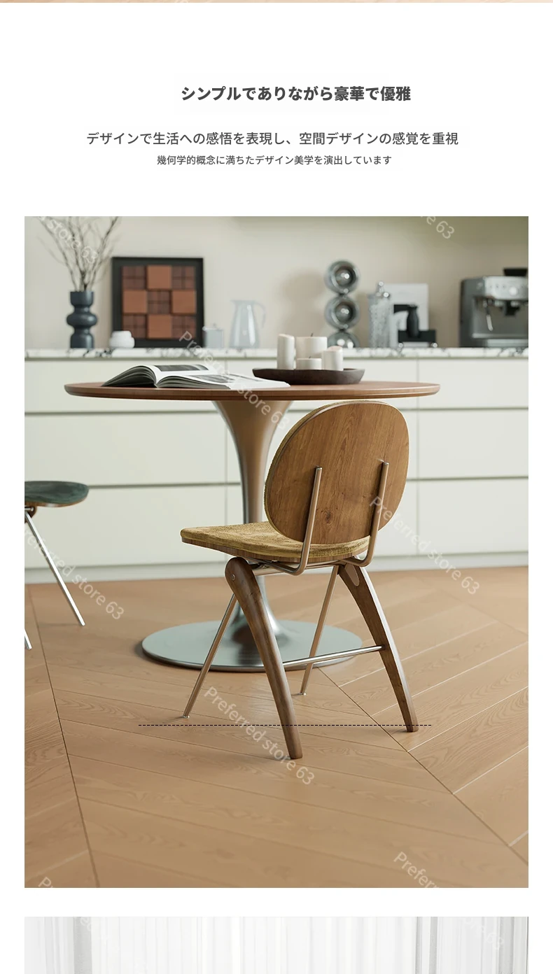 ヴィンテージ風の無垢材ダイニングチェア|ホワイトアッシュ製、背もたれ付きで快適|レトロなステンレス製のカフェチェアとしても最適|おしゃれな食卓を演出します!