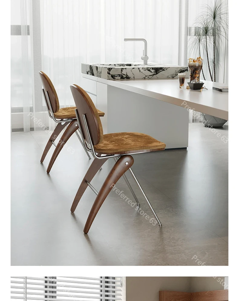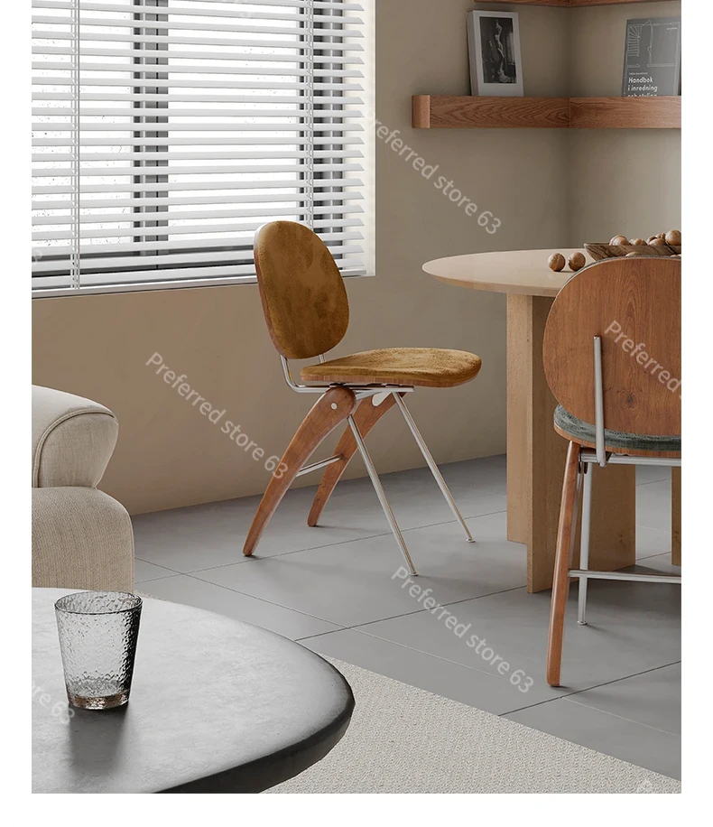 ブラウンクッション-ステンレス鋼+ホワイトアッシュレッグ