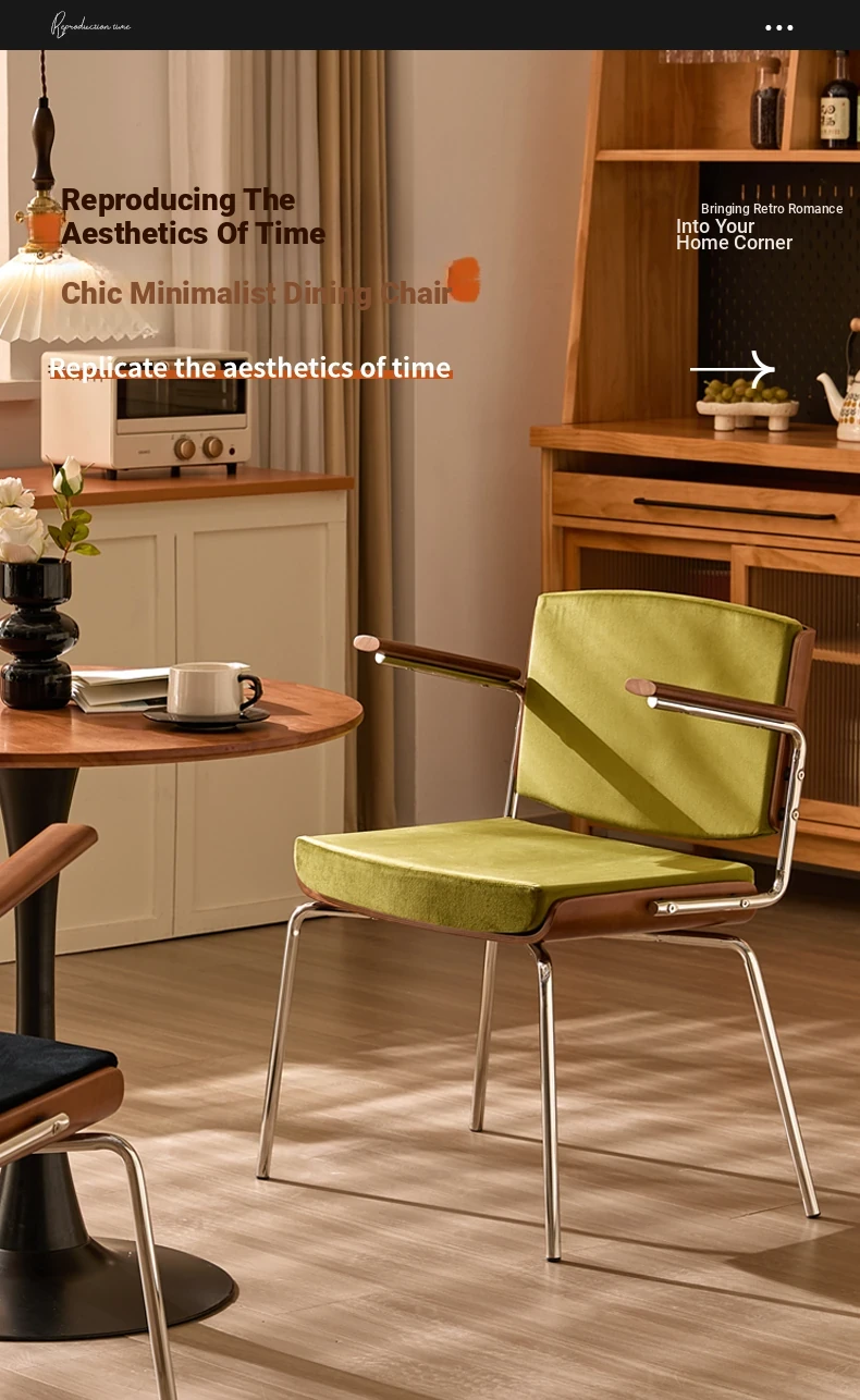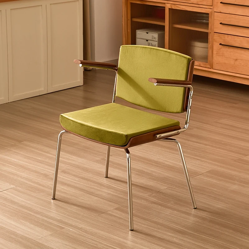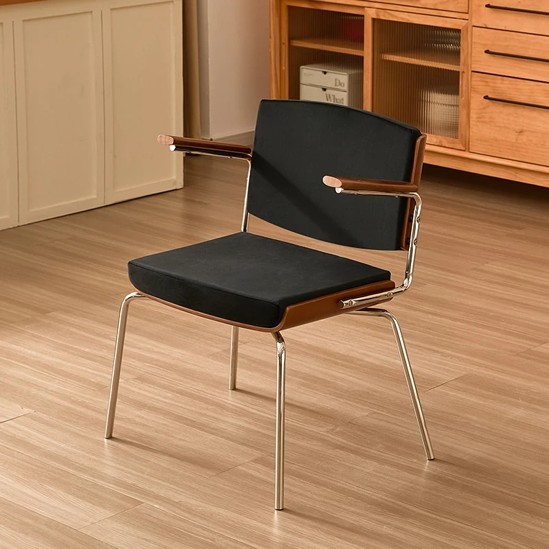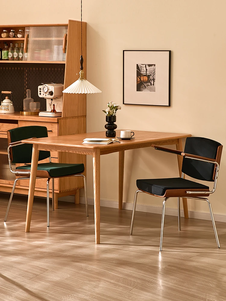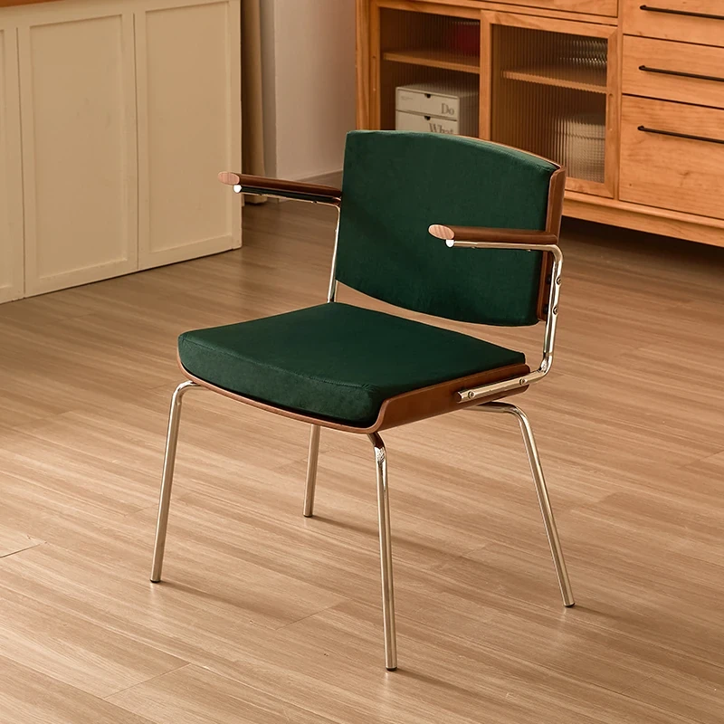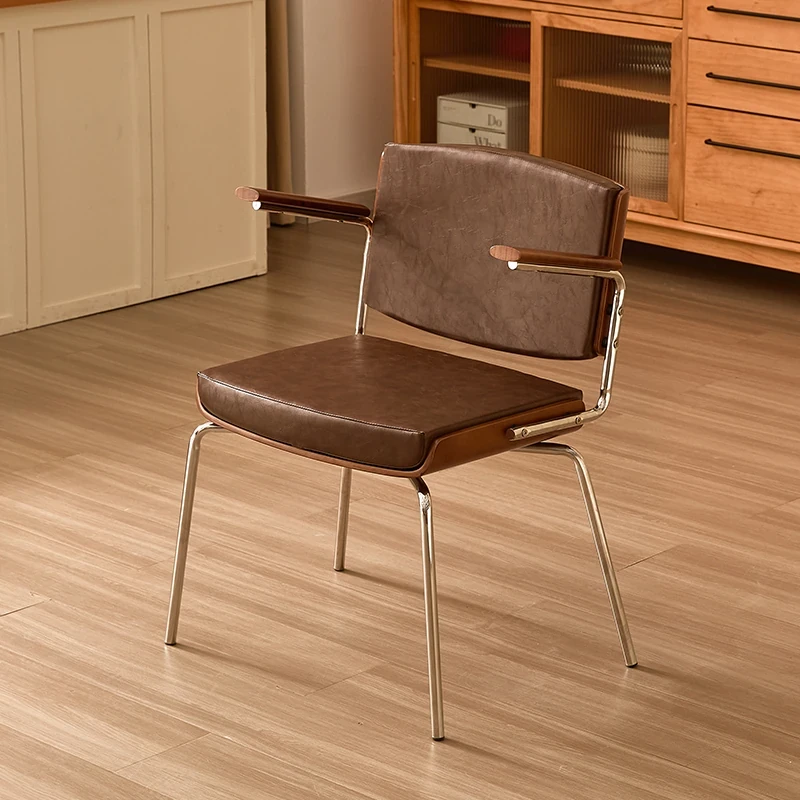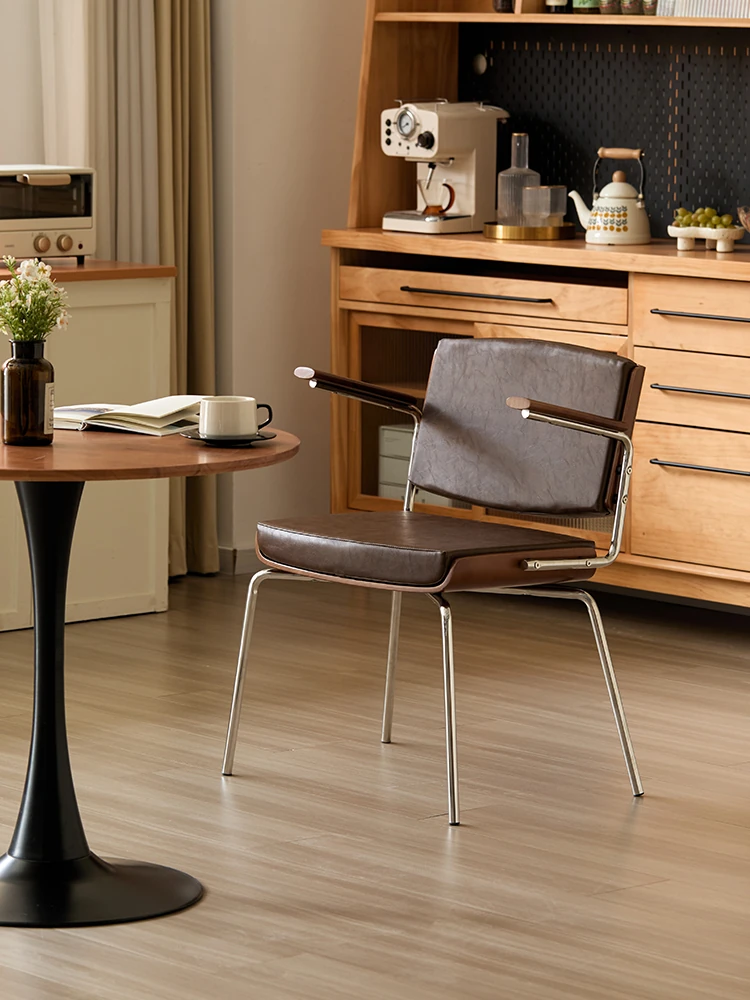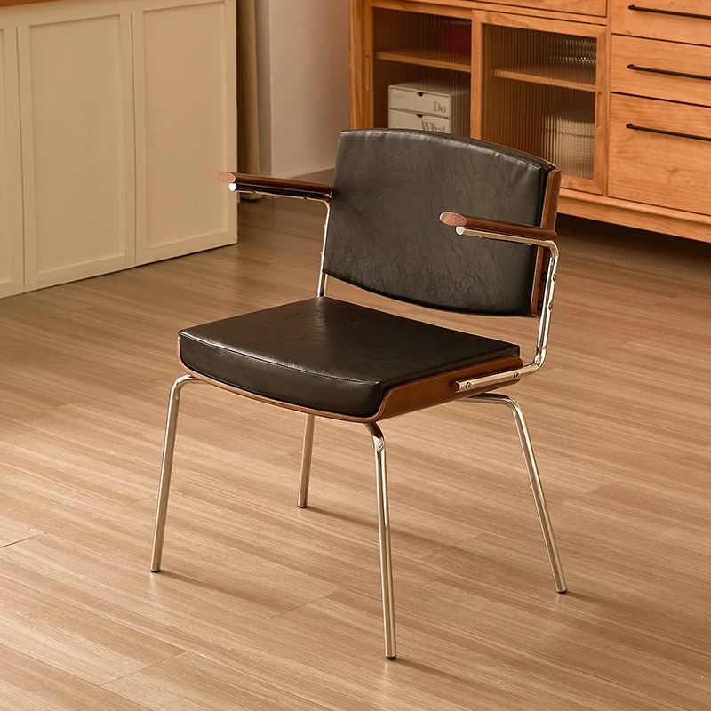 Vintage Solid Wood Dining Chair - Retro Home Backrest Chair for Dining Table, Balcony Leisure, Stainless Steel, Ideal for Study, Computer, and Makeup Use