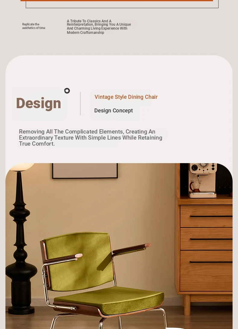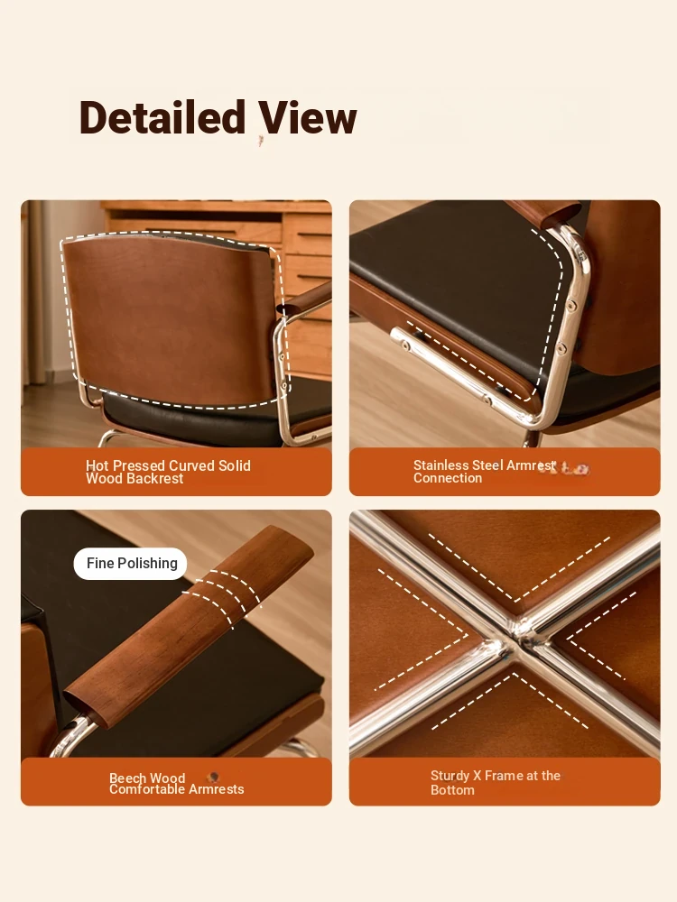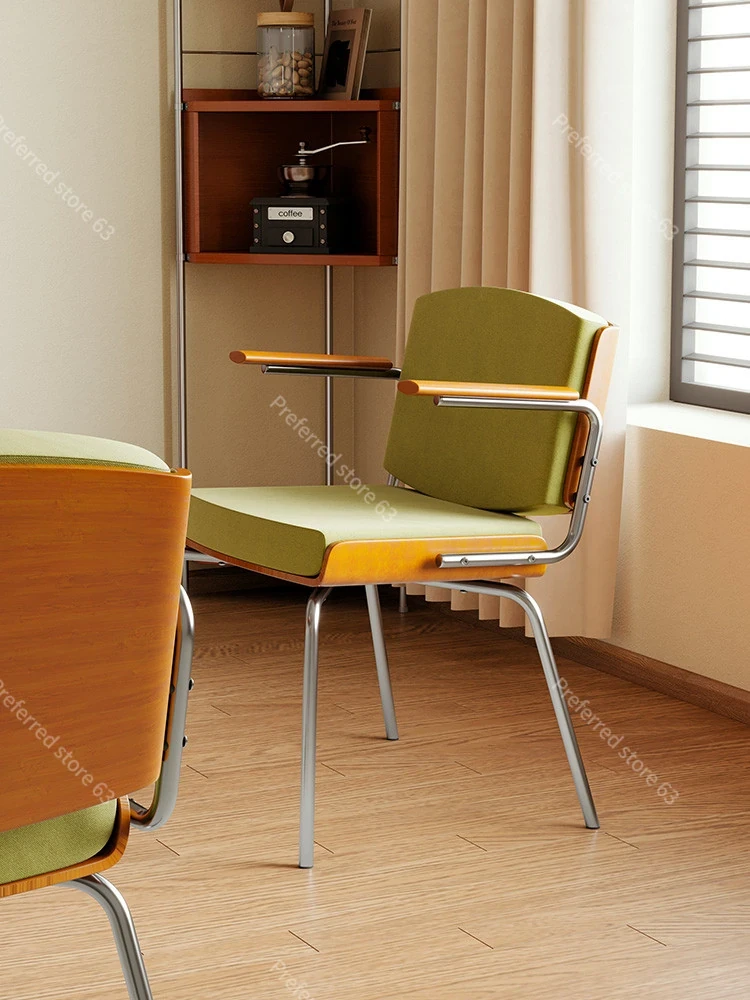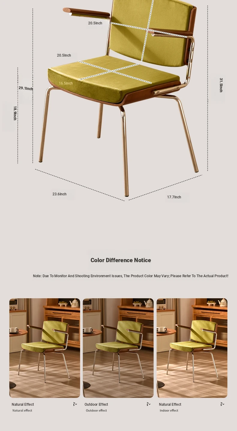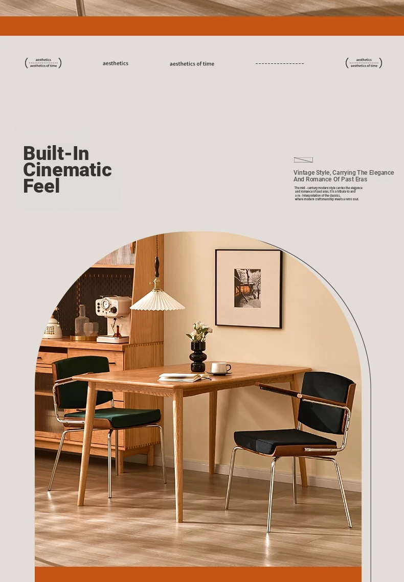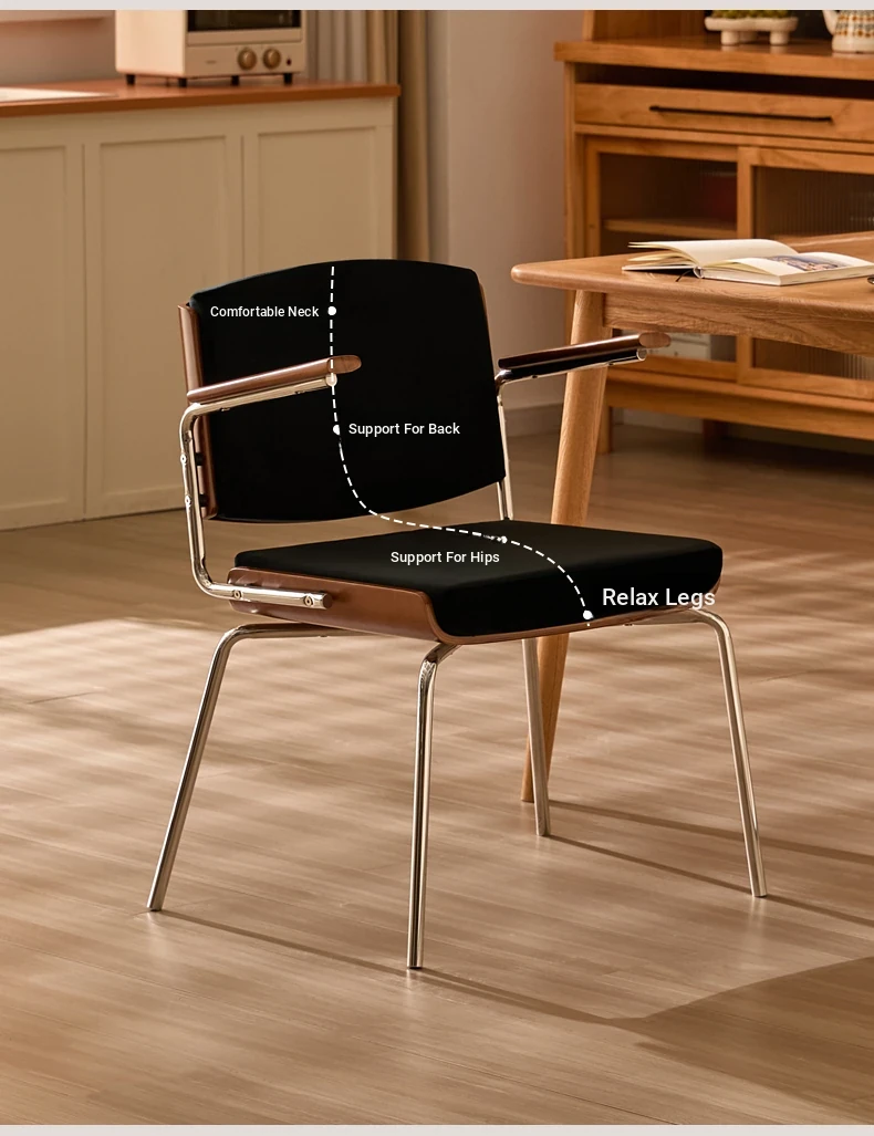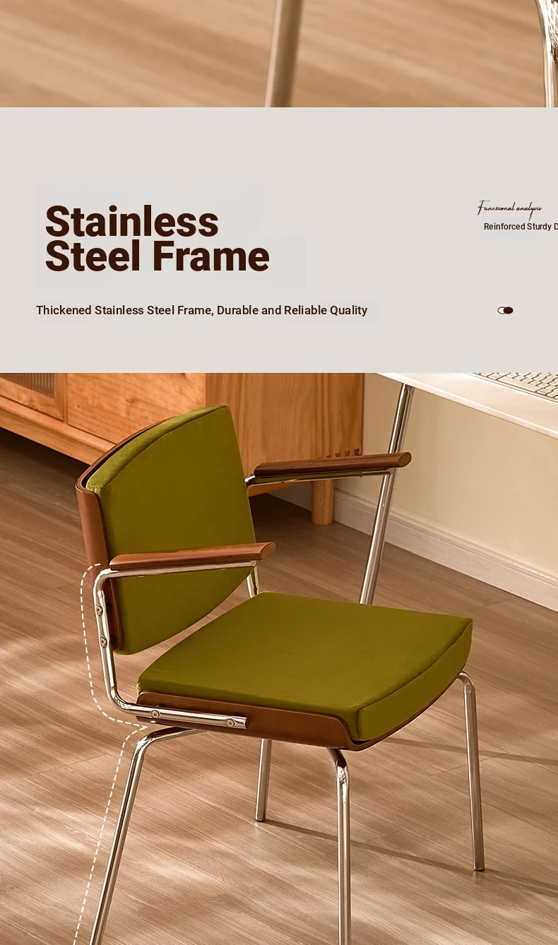Vintage Solid Wood Dining Chair - Retro Home Backrest Chair for Dining Table, Balcony Leisure, Stainless Steel, Ideal for Study, Computer, and Makeup Use